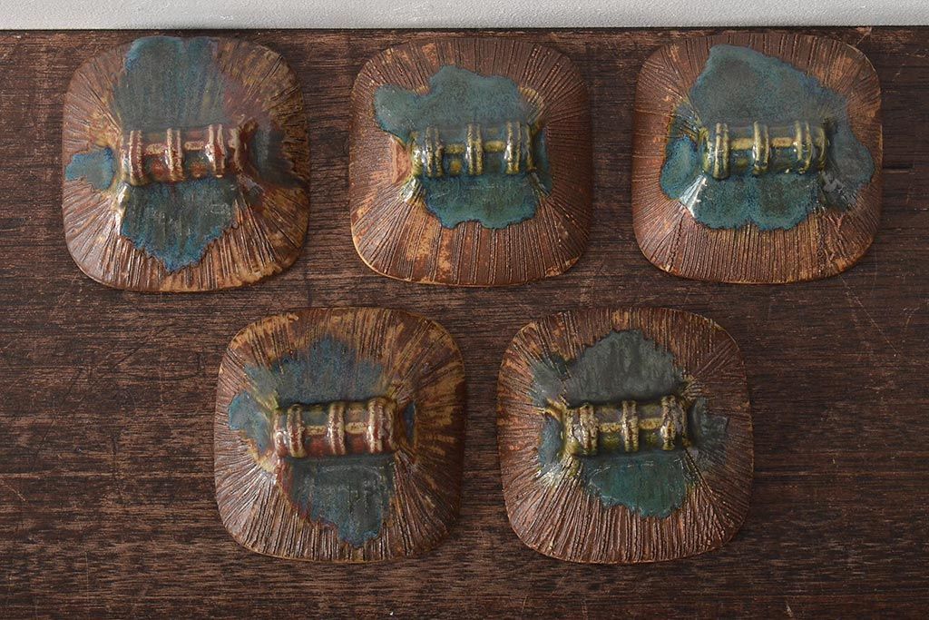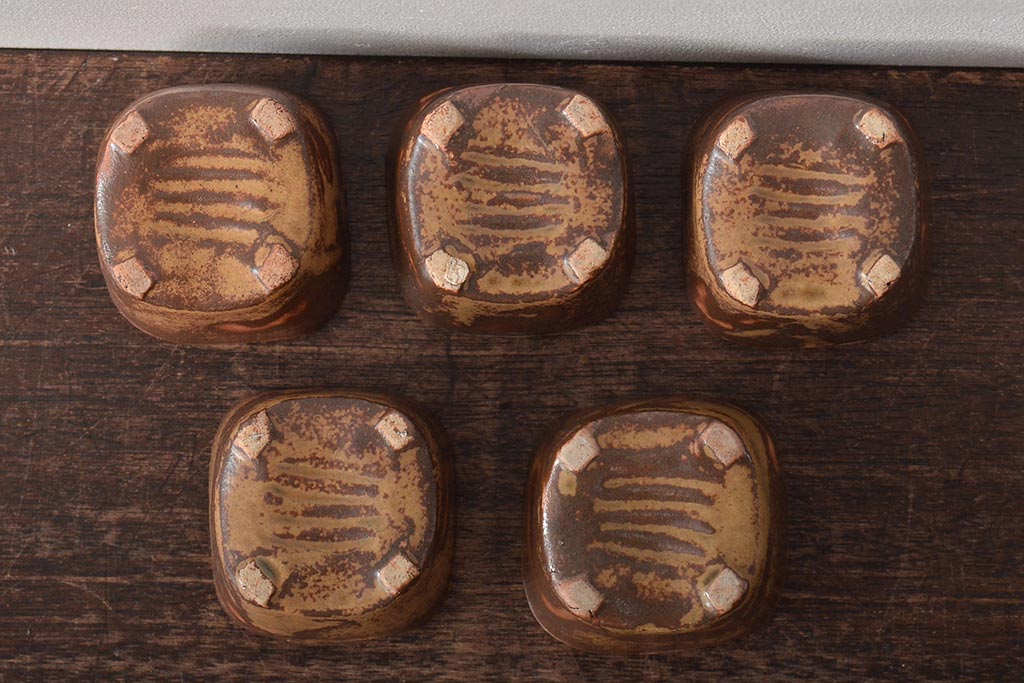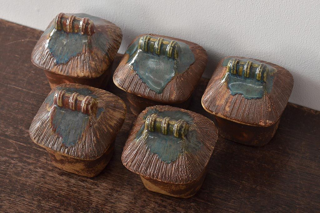 明治〜大正 古い美濃焼蓋物5客(織部向付)(R-044577)