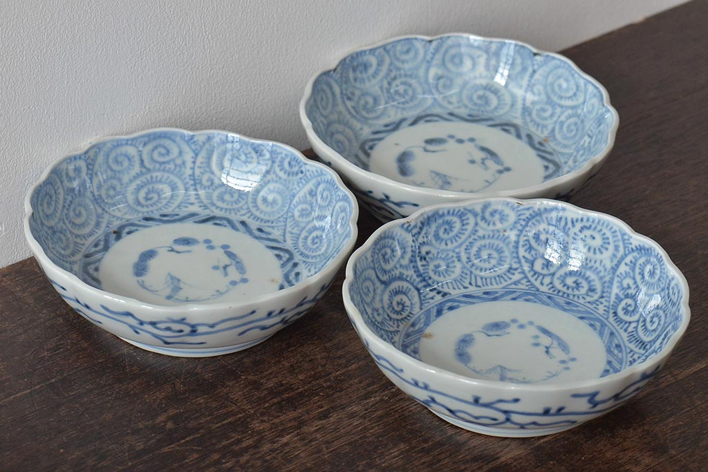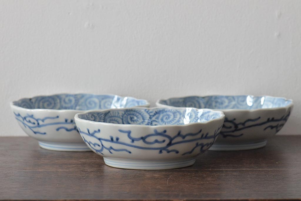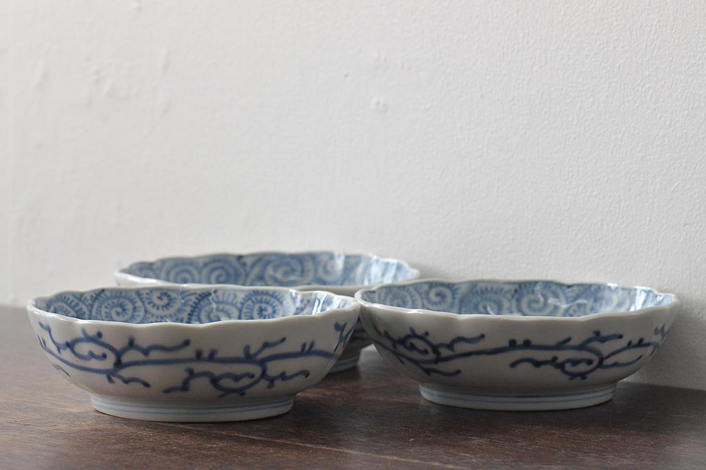 ラフジュ工房> 和食器・茶道具> 皿 > 江戸期 古伊万里 蛸唐草染付なます皿3客(R-044631)