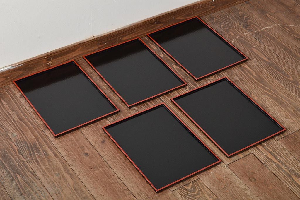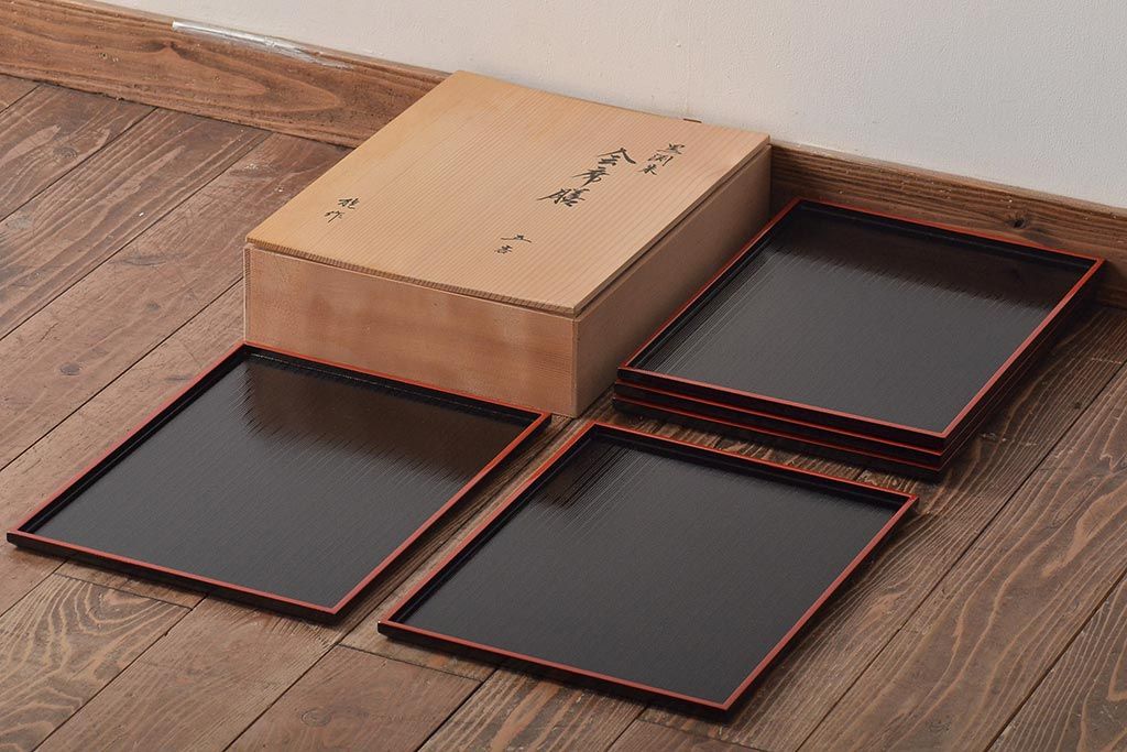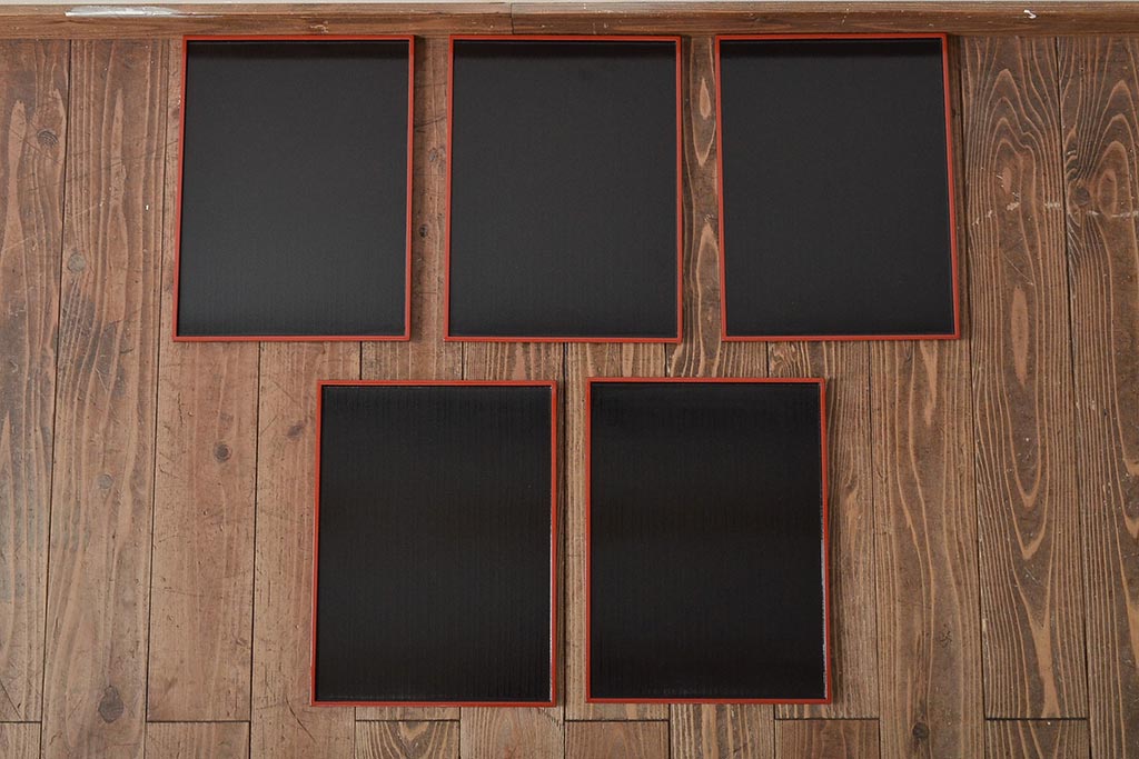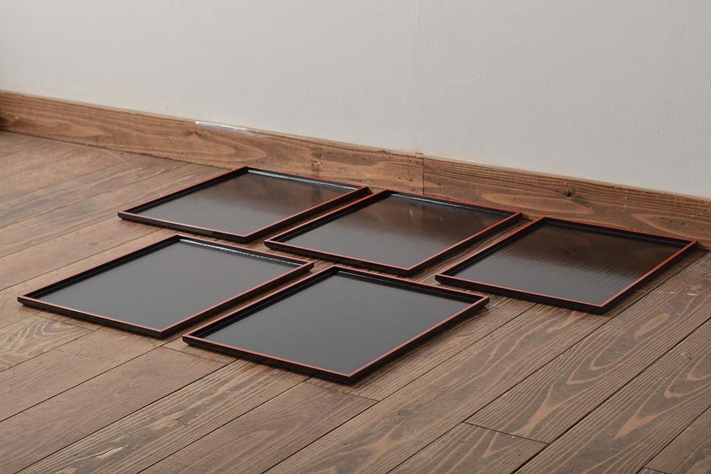 ラフジュ工房> 骨董・美術品> 骨董-漆器 > 能作 黒渕朱 会席膳5客(漆器、茶道具、盆)(R-044629)