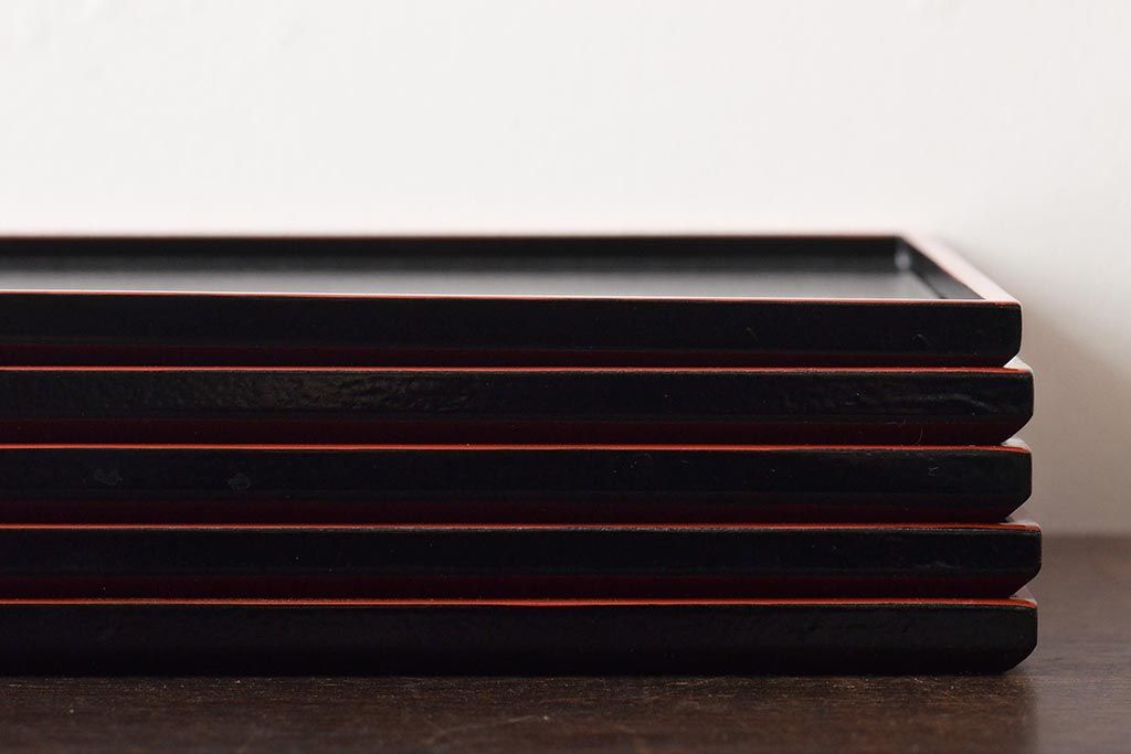 ラフジュ工房> 和食器・茶道具> お盆・お膳・お重 > 能作 黒渕朱 会席膳5客(漆器、茶道具、盆)(R-044629)