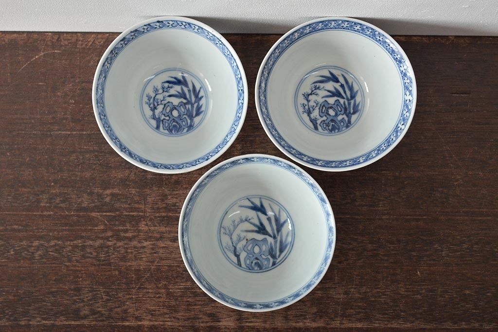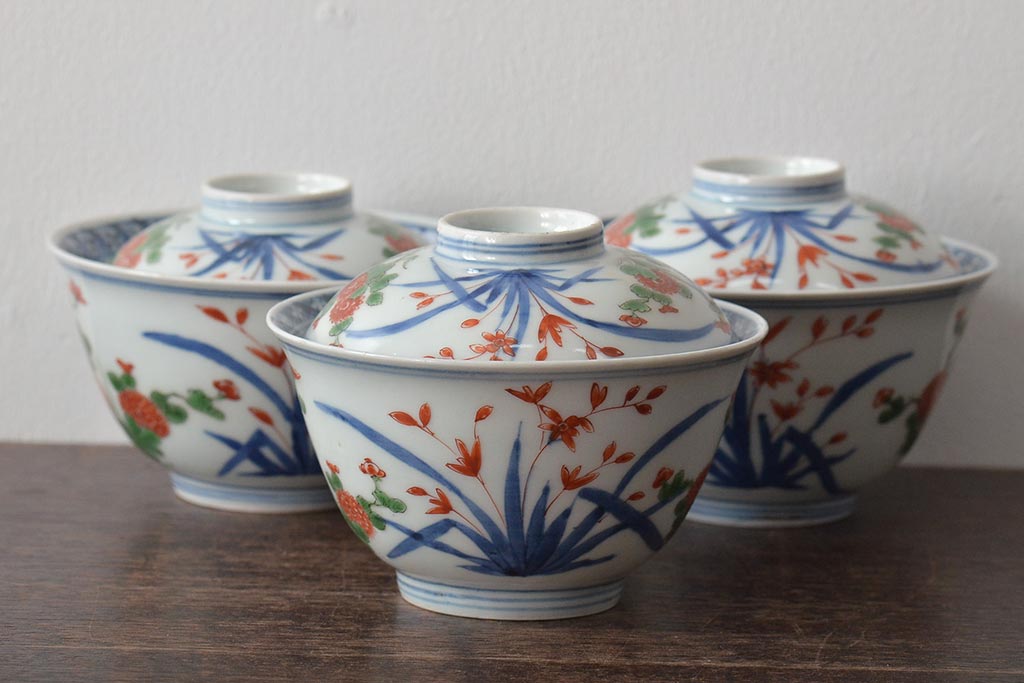 ラフジュ工房> 和食器・茶道具> お椀・茶碗 > 江戸期 古伊万里 大明年製 色絵染付 蓋茶碗3客(上手物古伊万里)(R-044632)