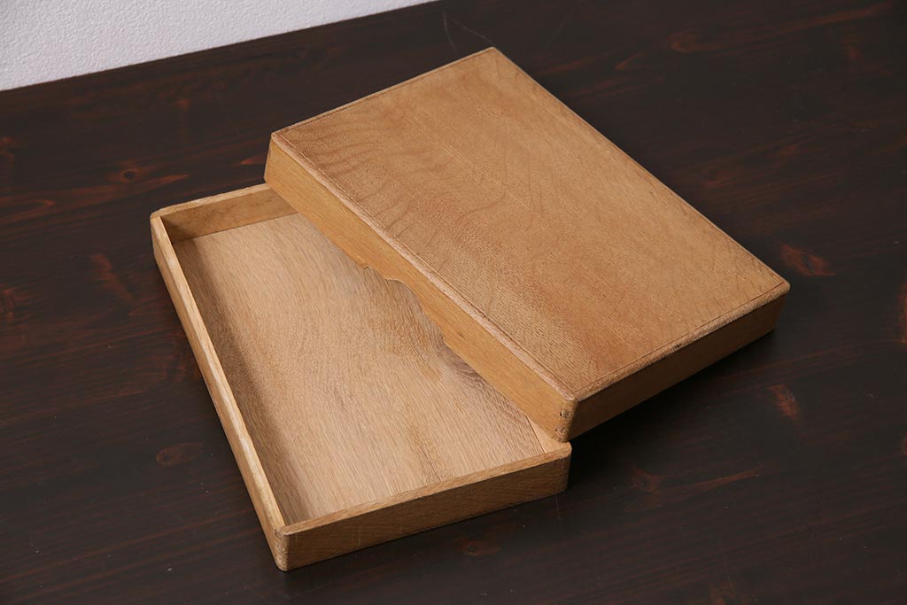 小物収納・トランク > アンティーク雑貨 昭和中期 ナラ材製のシンプルな文箱(木箱、収納箱、小物収納)(R-044751)