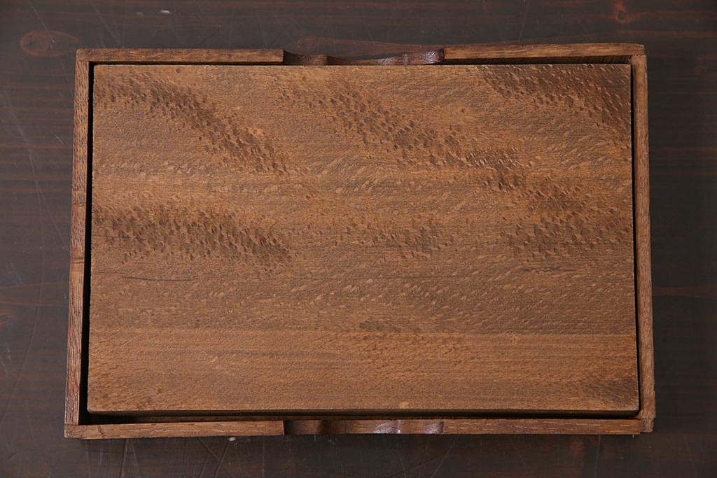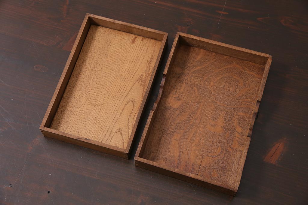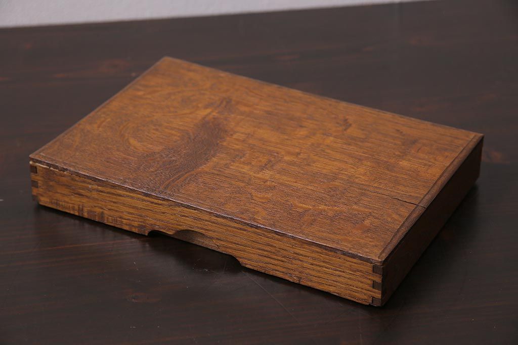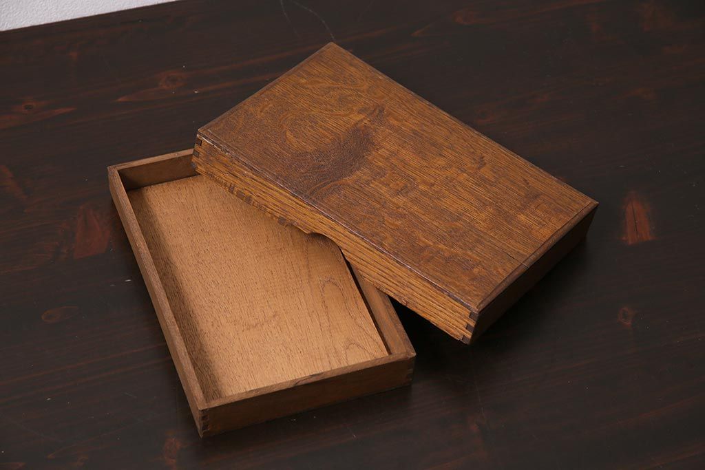小物収納・トランク> 木箱 > アンティーク雑貨 昭和中期 ナラ材製のレトロな文箱(木箱、収納箱、小物収納)(R-044752)