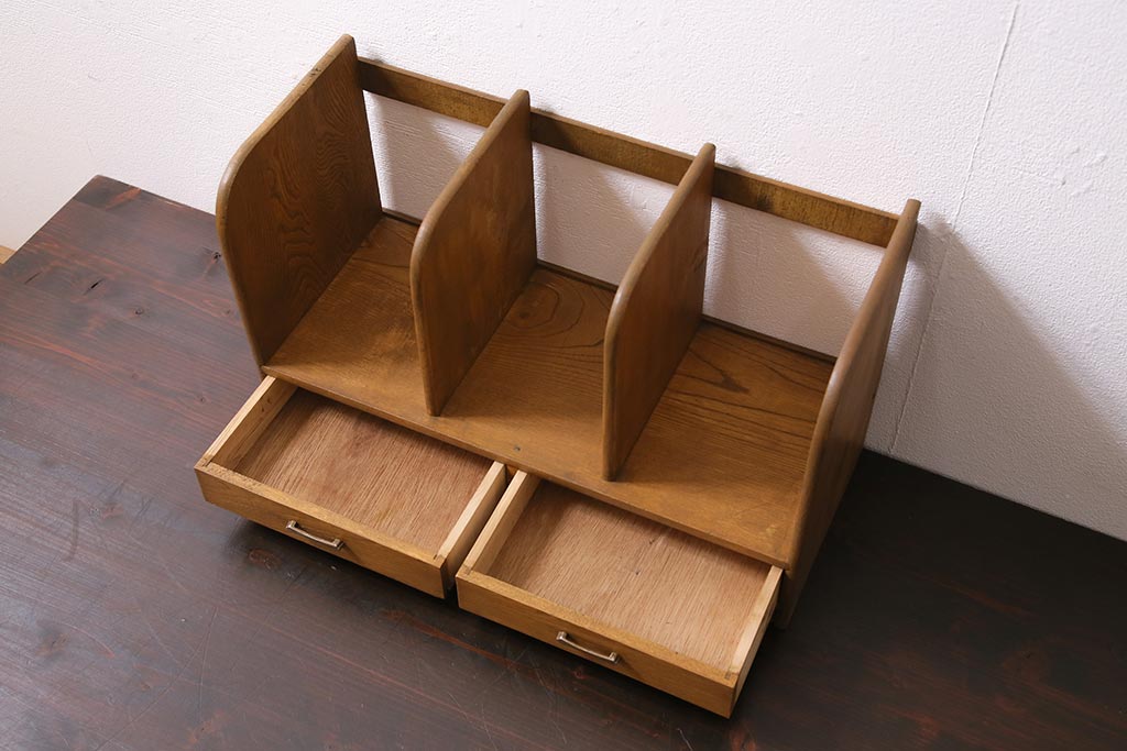 小物収納・トランク> 本立て > レトロ雑貨 昭和中期 素朴な味わいの引き出し付きブックスタンド(本立て、小物収納)(R-044749)