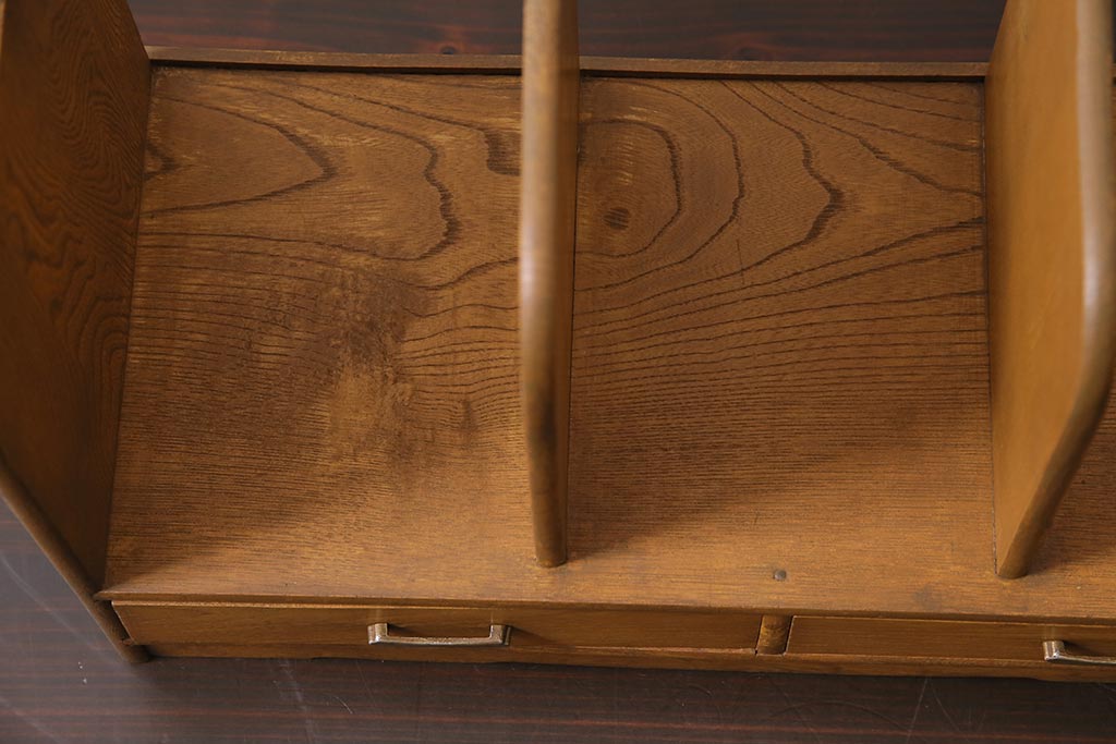 レトロ雑貨 昭和中期 素朴な味わいの引き出し付きブックスタンド(本立て、小物収納)(R-044749)