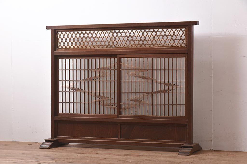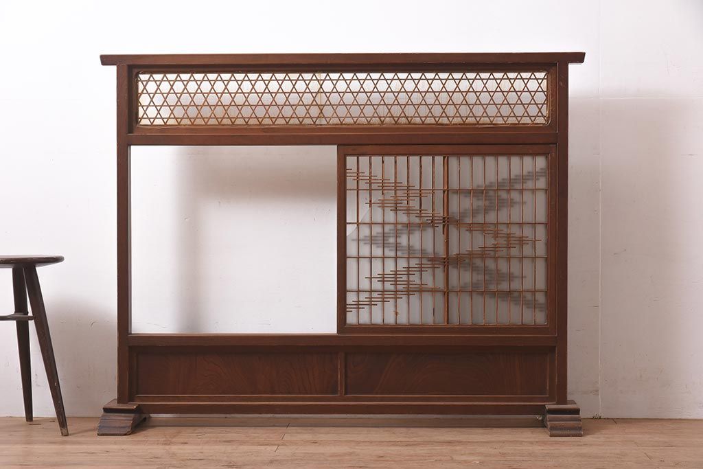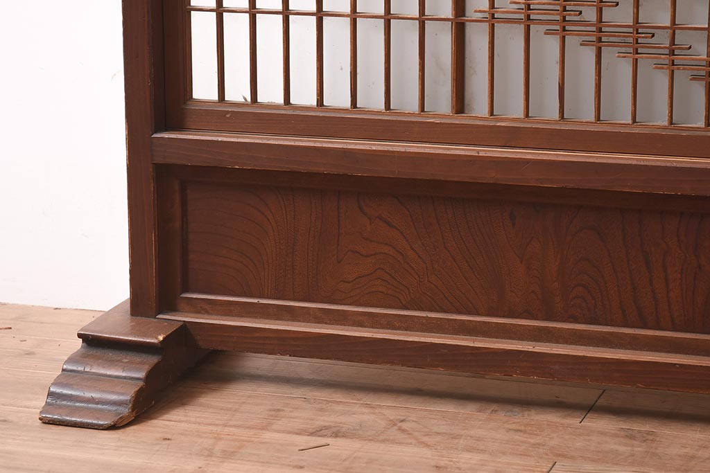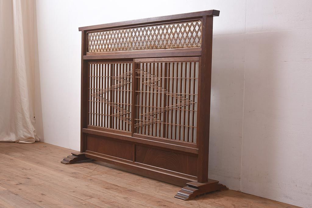 ラフジュ工房> 衝立・パーテーション > アンティーク建具 和製 昭和初期 上手物! 本体ヒノキ材・腰板ケヤキ材 美しい組子が目を引く引き戸付き衝立(つい立て、仕切り、パーテーション)(R-044581)