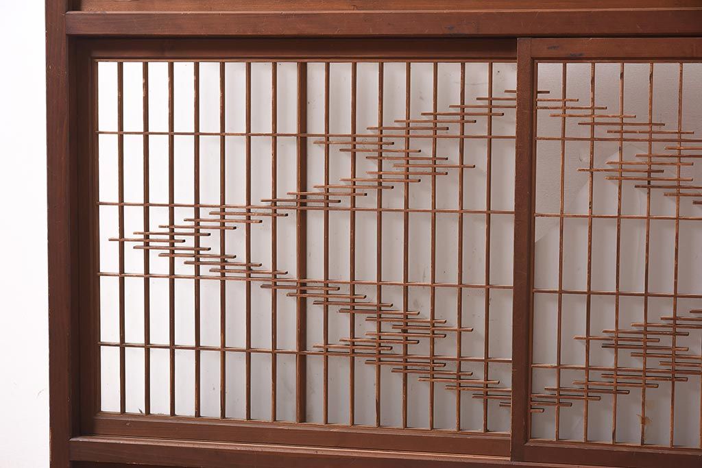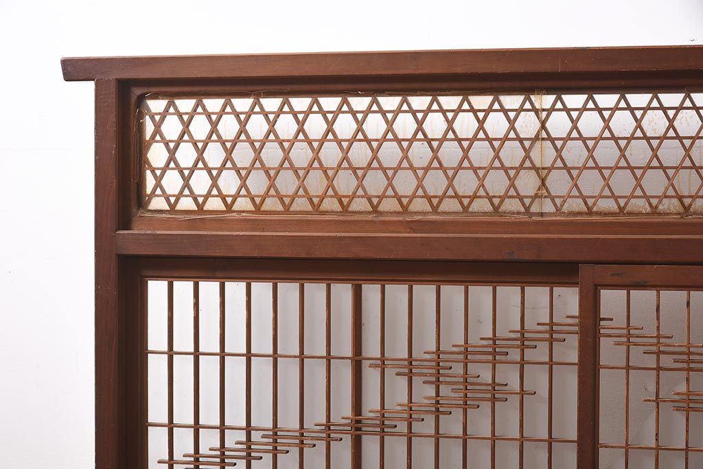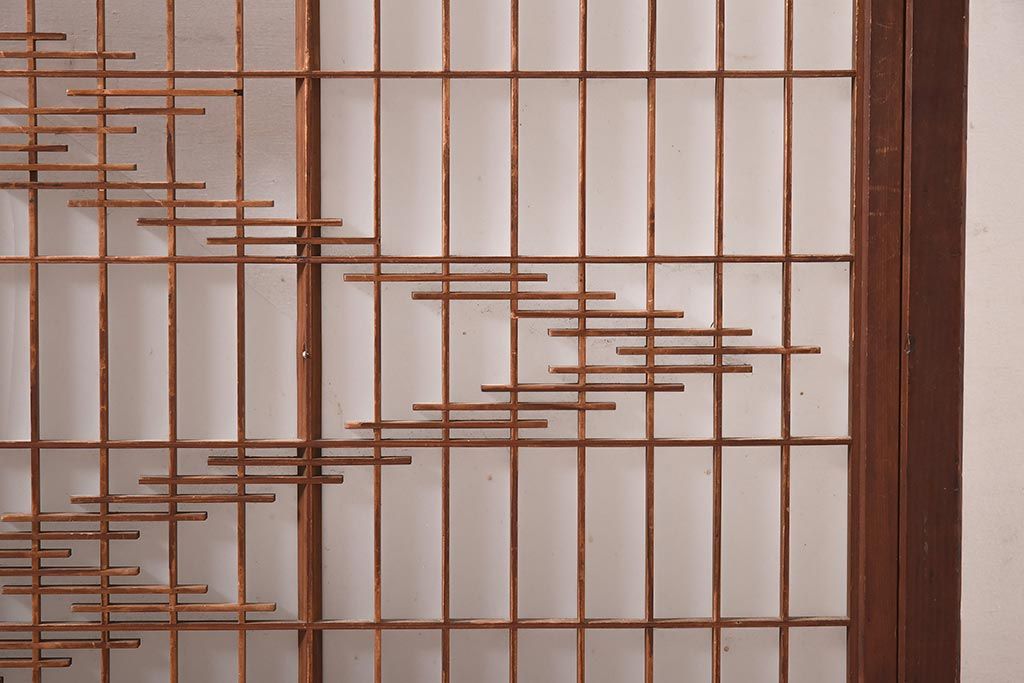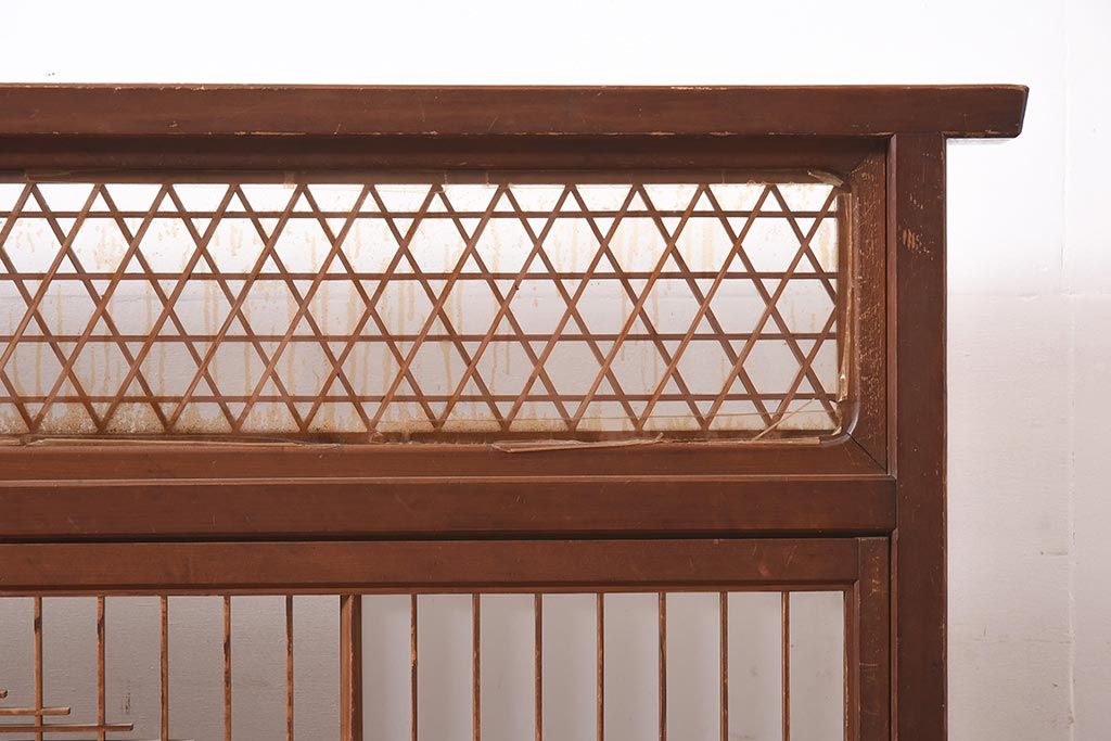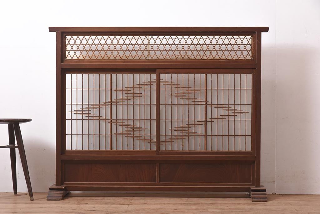 ラフジュ工房> 衝立・パーテーション > アンティーク建具 和製 昭和初期 上手物! 本体ヒノキ材・腰板ケヤキ材 美しい組子が目を引く引き戸付き衝立(つい立て、仕切り、パーテーション)(R-044581)