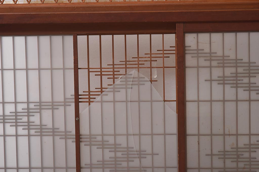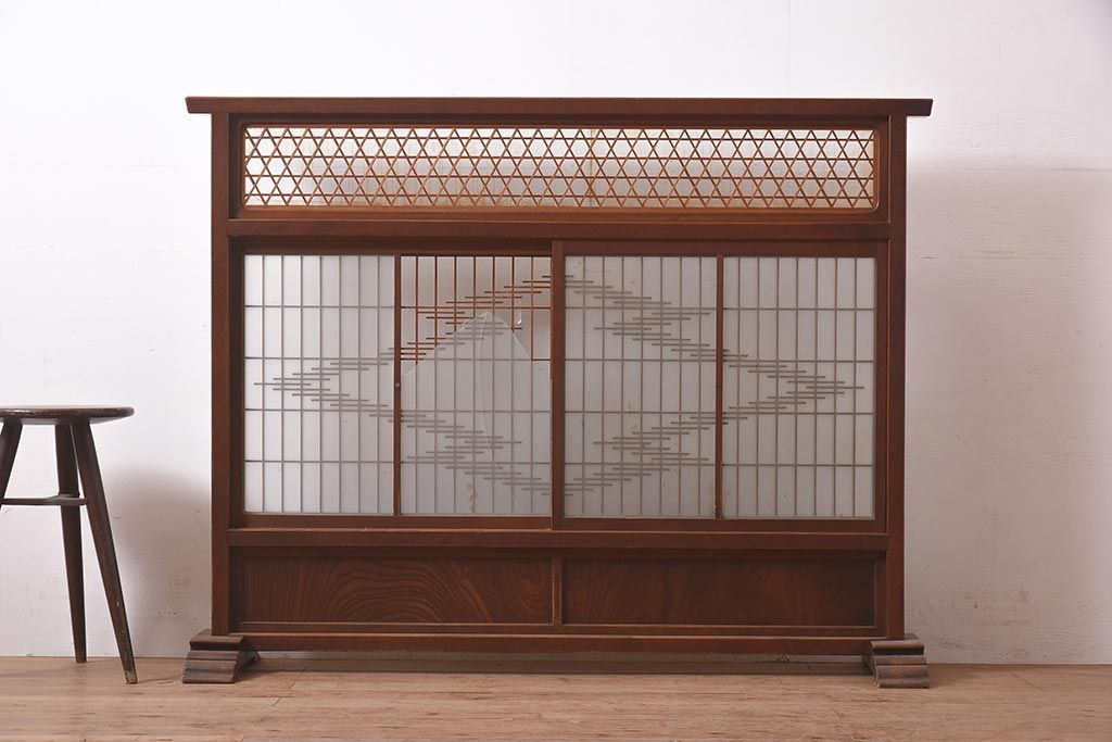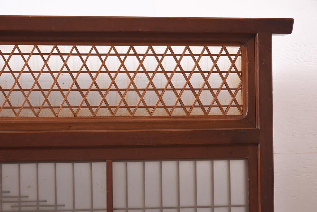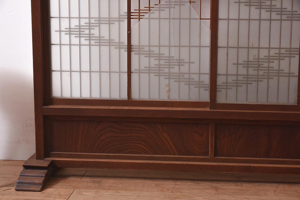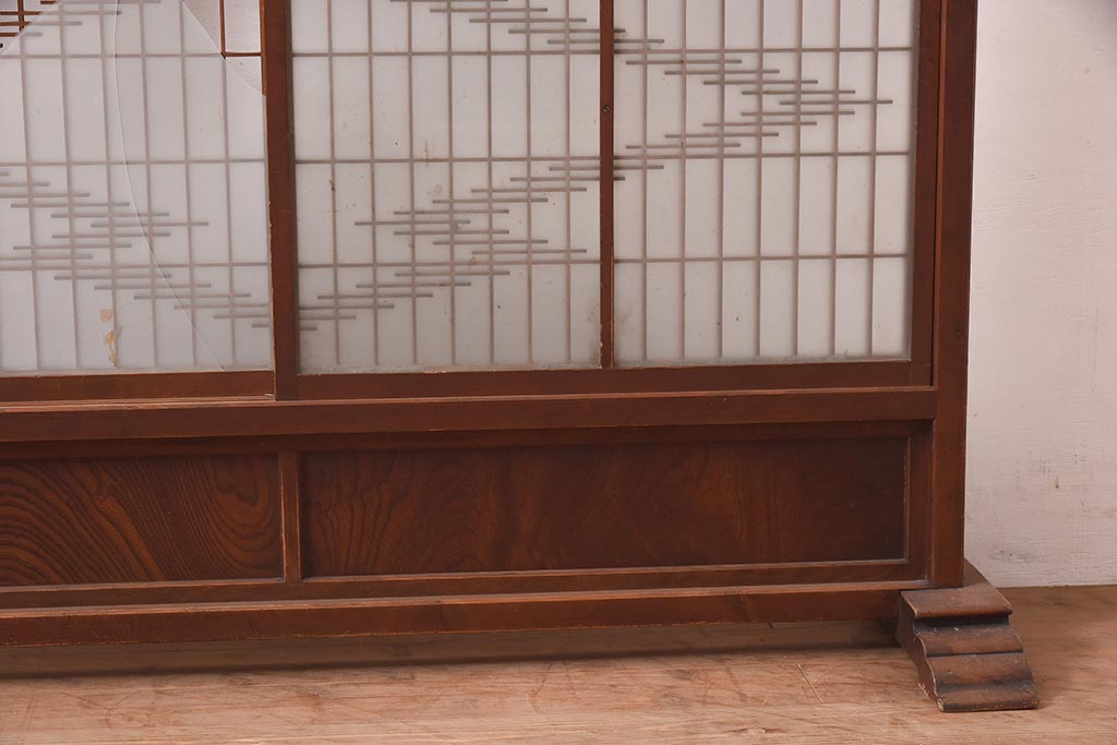 アンティーク建具 和製 昭和初期 上手物! 本体ヒノキ材・腰板ケヤキ材 美しい組子が目を引く引き戸付き衝立(つい立て、仕切り、パーテーション)(R-044581)