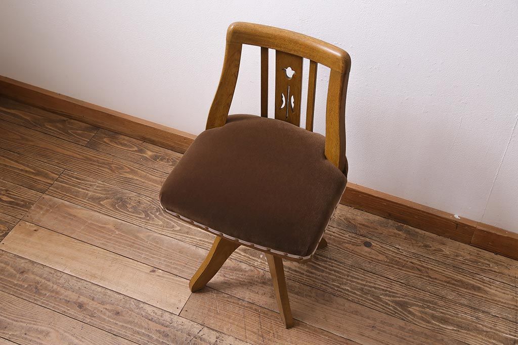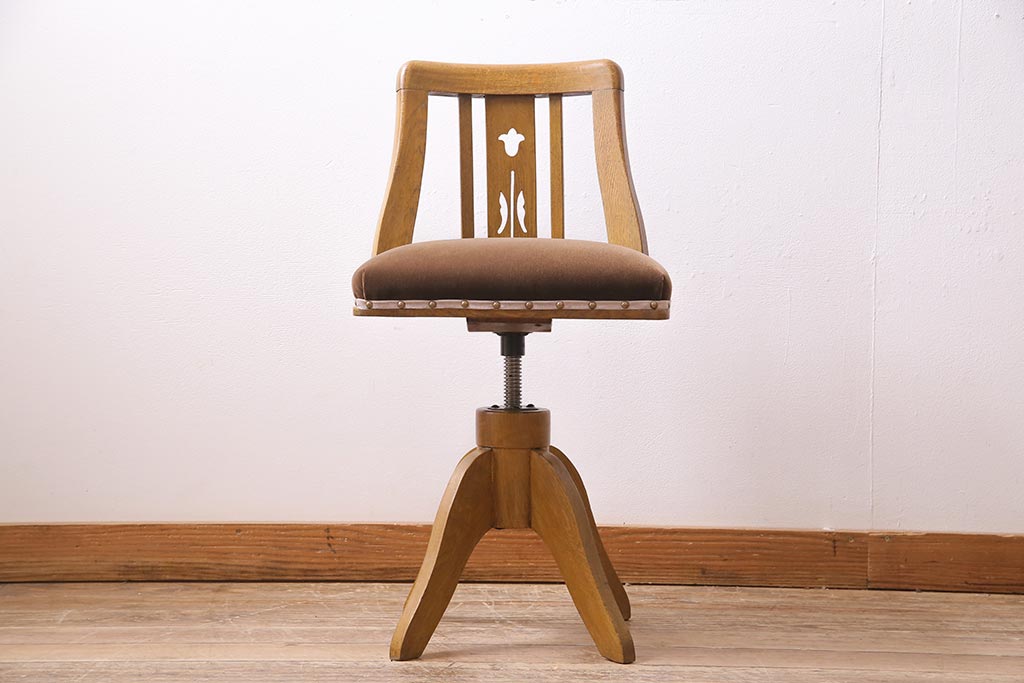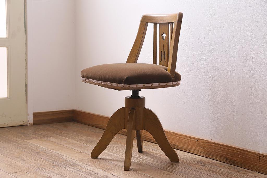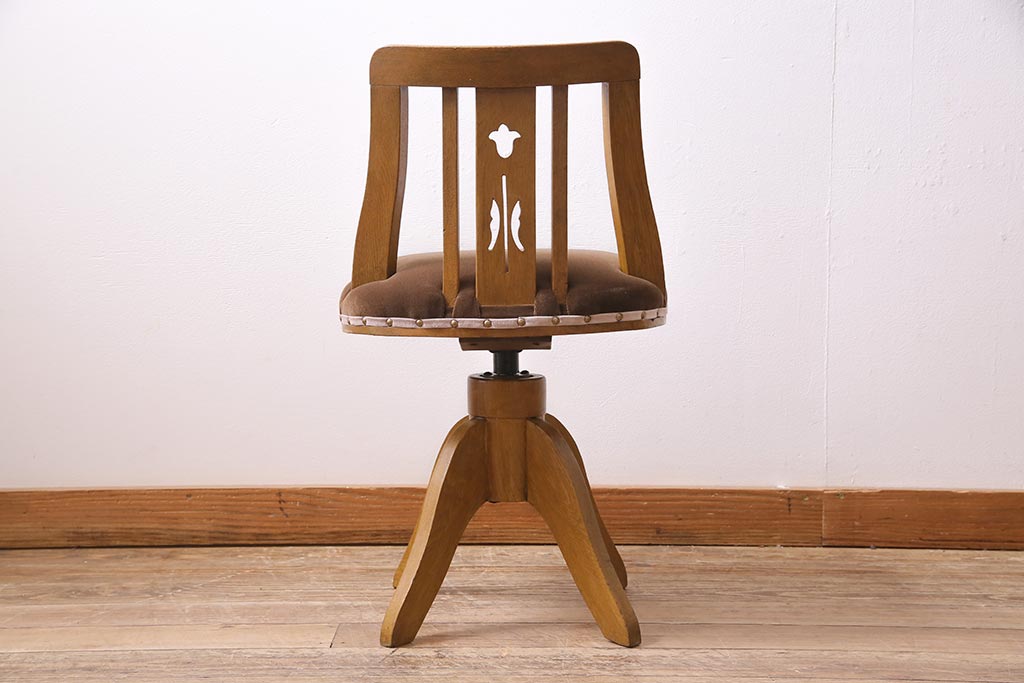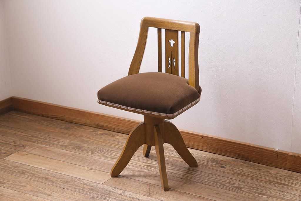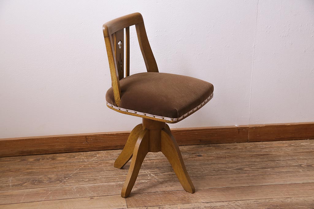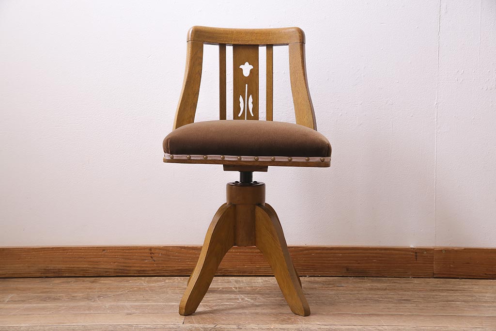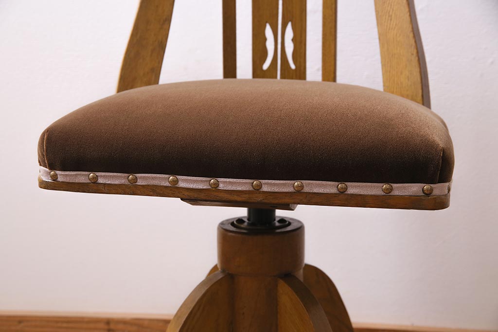 アンティーク家具 昭和中期 ナラ材 柔らかな雰囲気でかわいらしいドクターチェア(回転椅子)(R-044876)