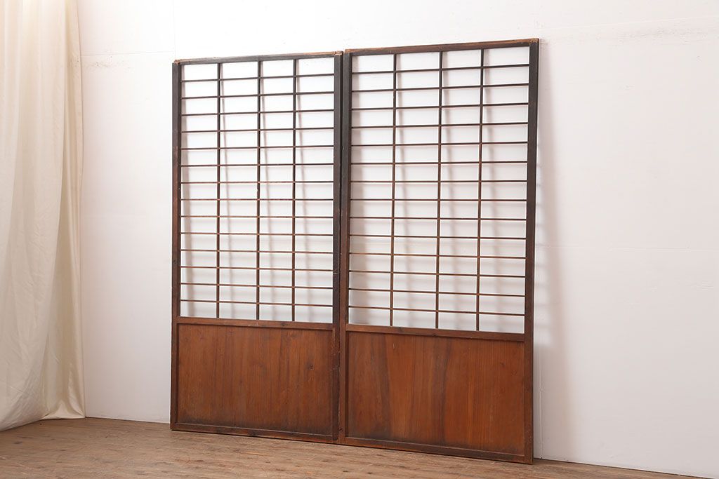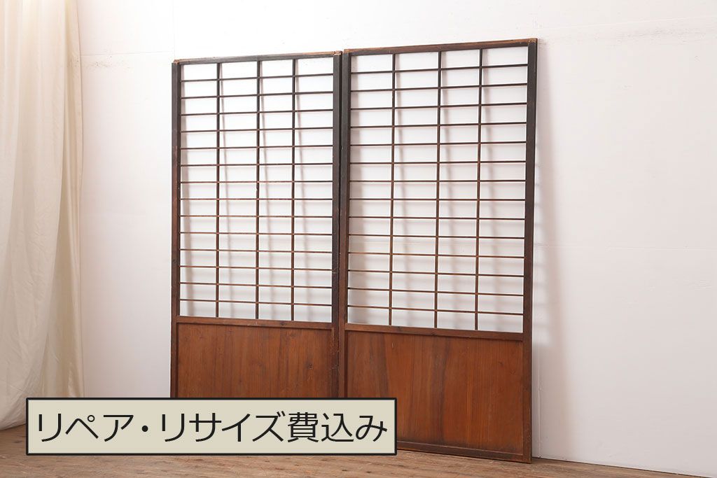 アンティーク建具 シンプルで取り入れやすい障子戸2枚セット(引き戸、建具)(R-044925)