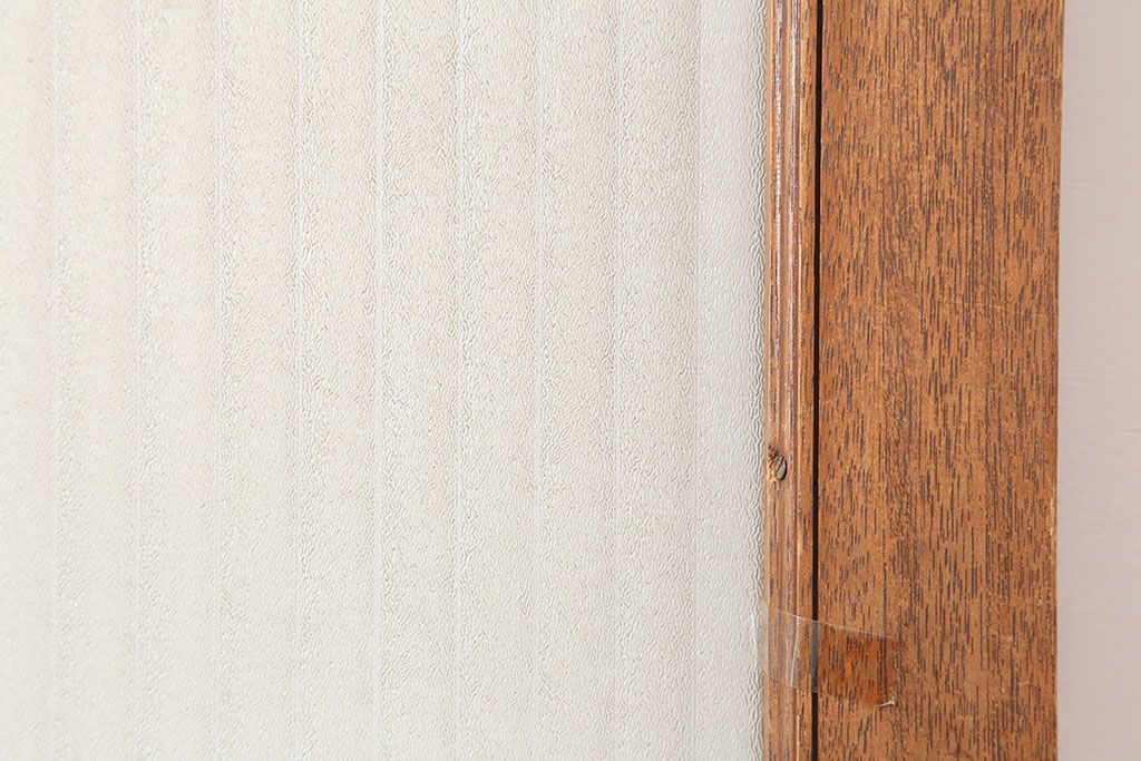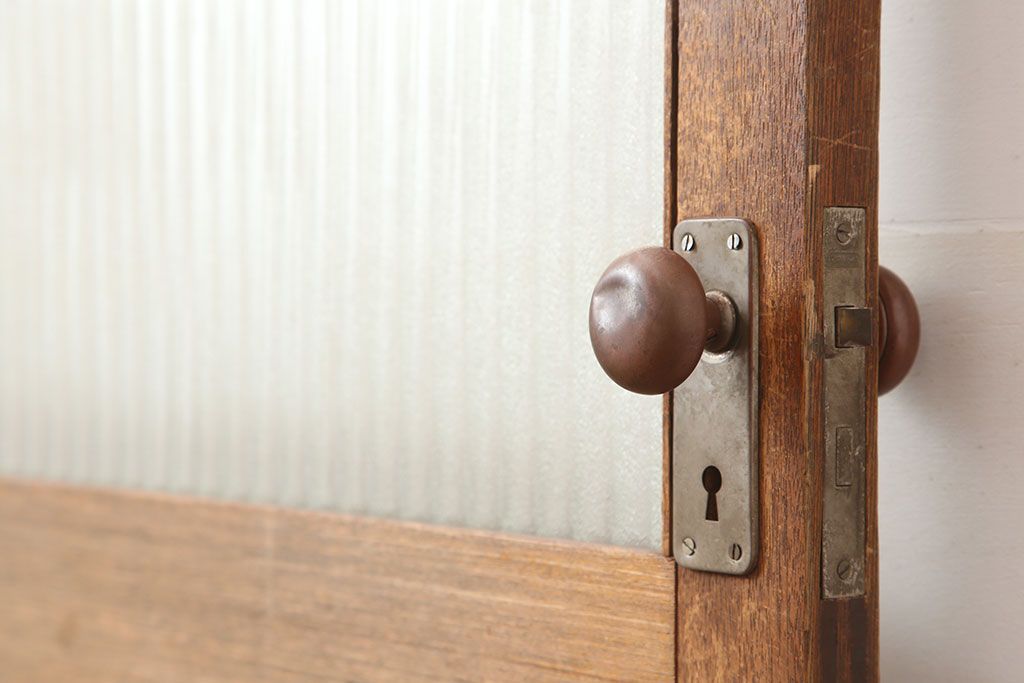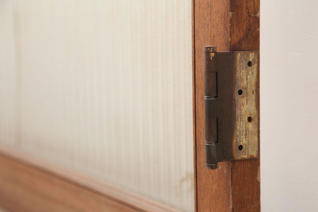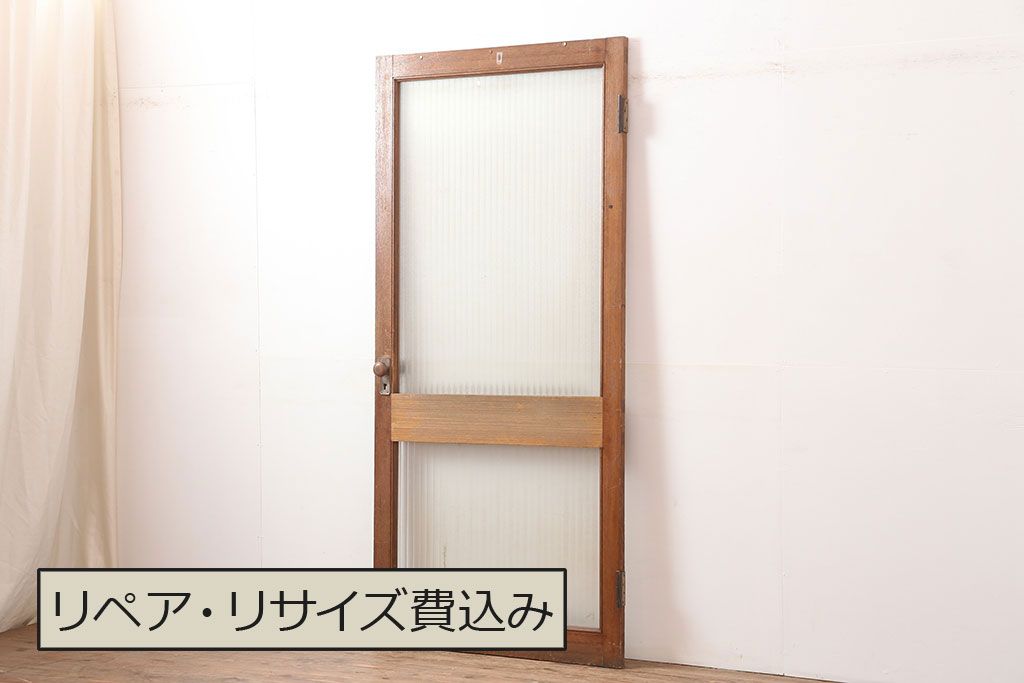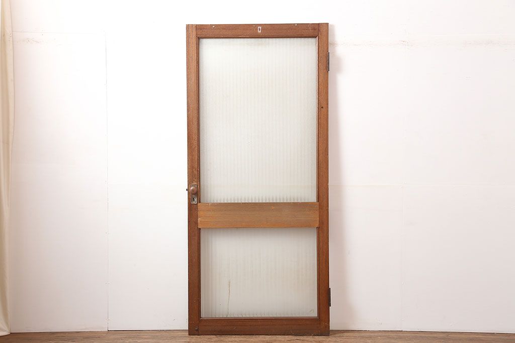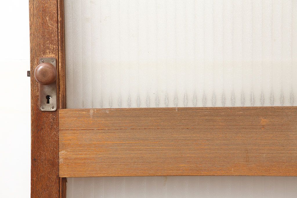 アンティーク建具 昭和中期 銀モールガラス入り 昭和レトロなガラス扉(木製ドア)(R-044936)