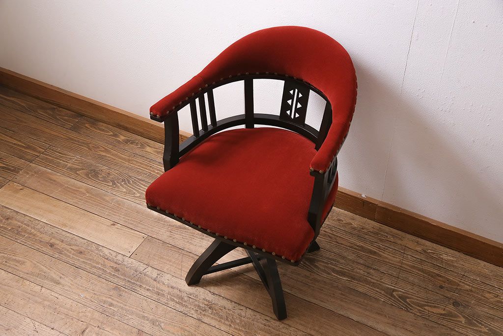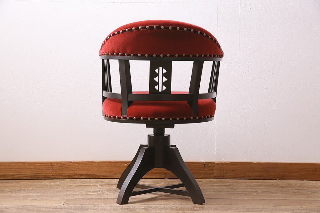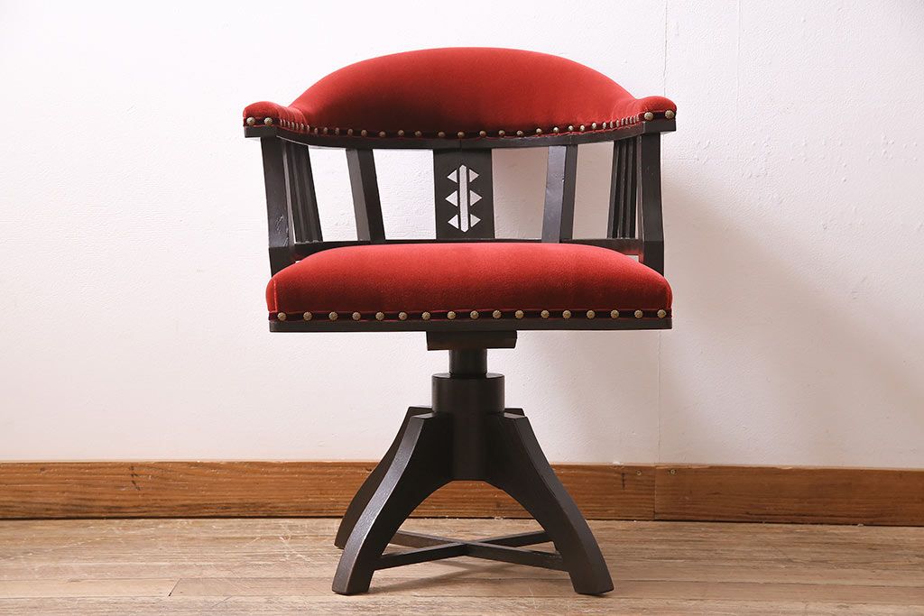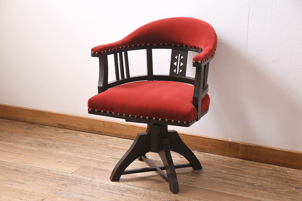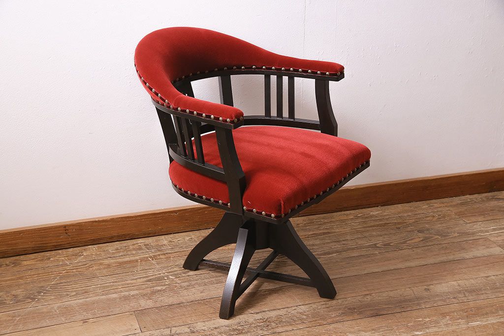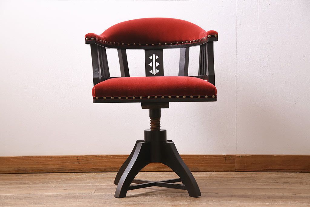 和製アンティーク 大正昭和初期 ナラ材 レトロ 大正ロマンな回転チェア(椅子、アームチェア、ドクターチェア)(R-044781)