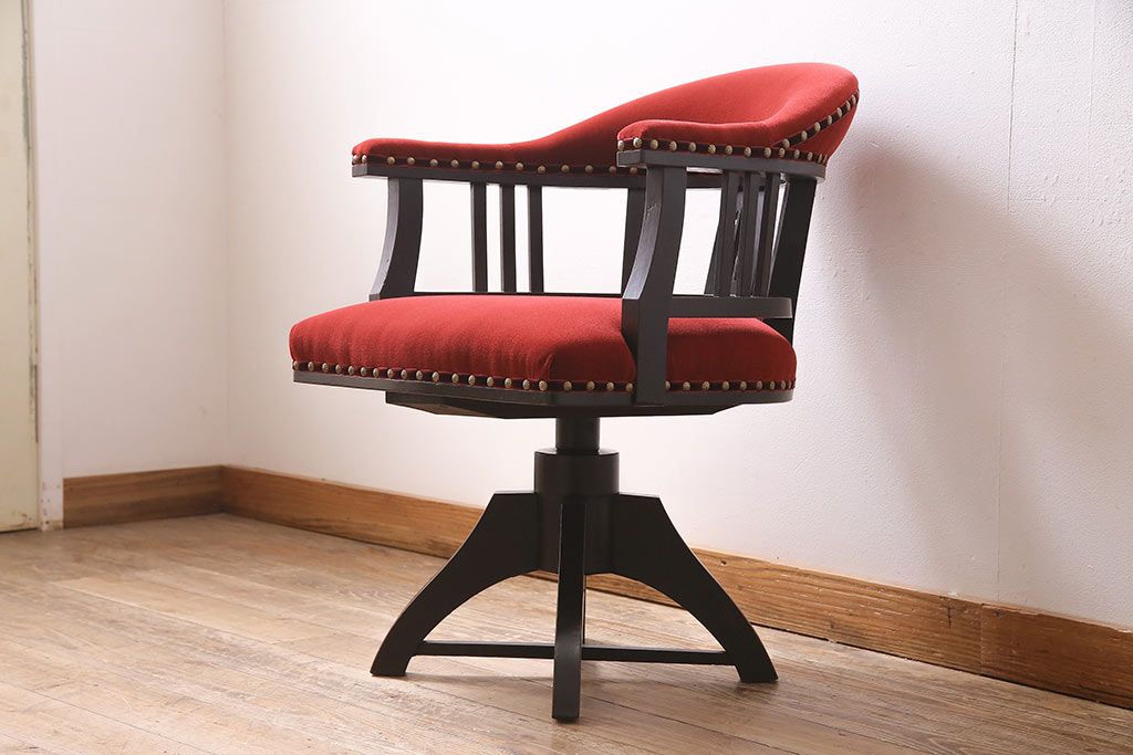 和製アンティーク 大正昭和初期 ナラ材 レトロ 大正ロマンな回転チェア(椅子、アームチェア、ドクターチェア)(R-044781)です。