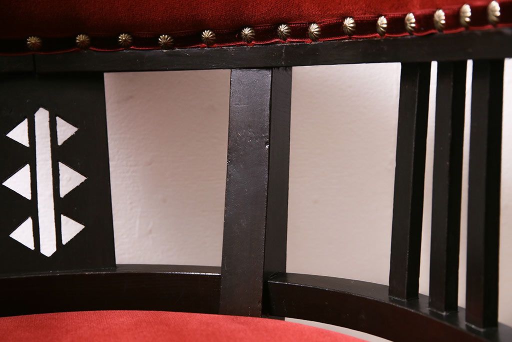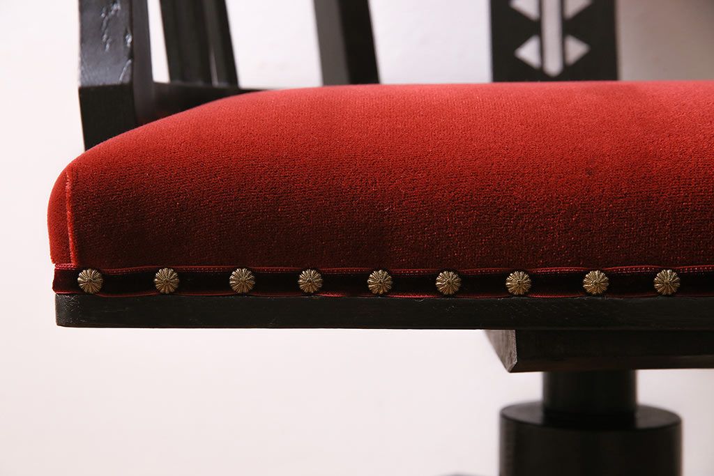 座面生地とクッション(座面内スポンジ)は当店にて張り替えておりますので、しっかりとしております。