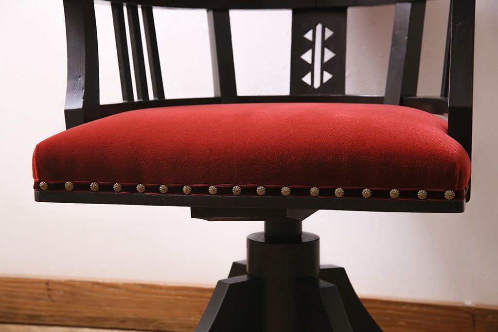 椅子・ベンチ> アームチェア > 和製アンティーク 大正昭和初期 ナラ材 レトロ 大正ロマンな回転チェア(椅子、アームチェア、ドクターチェア)(R-044781)