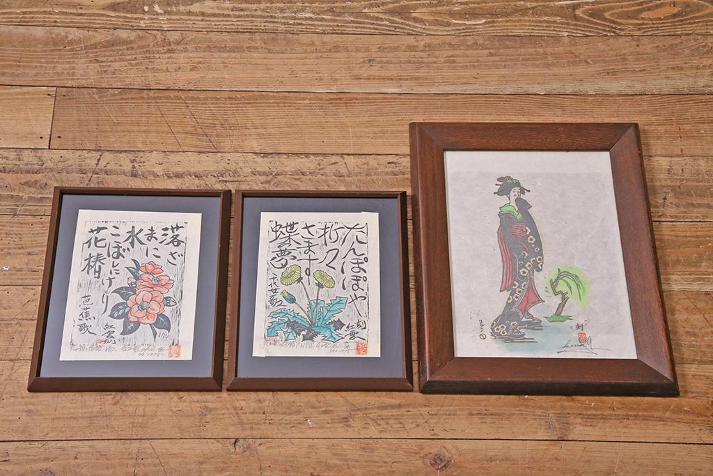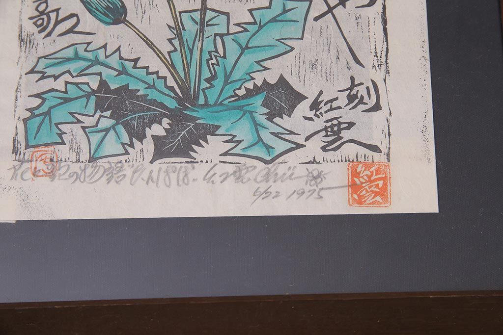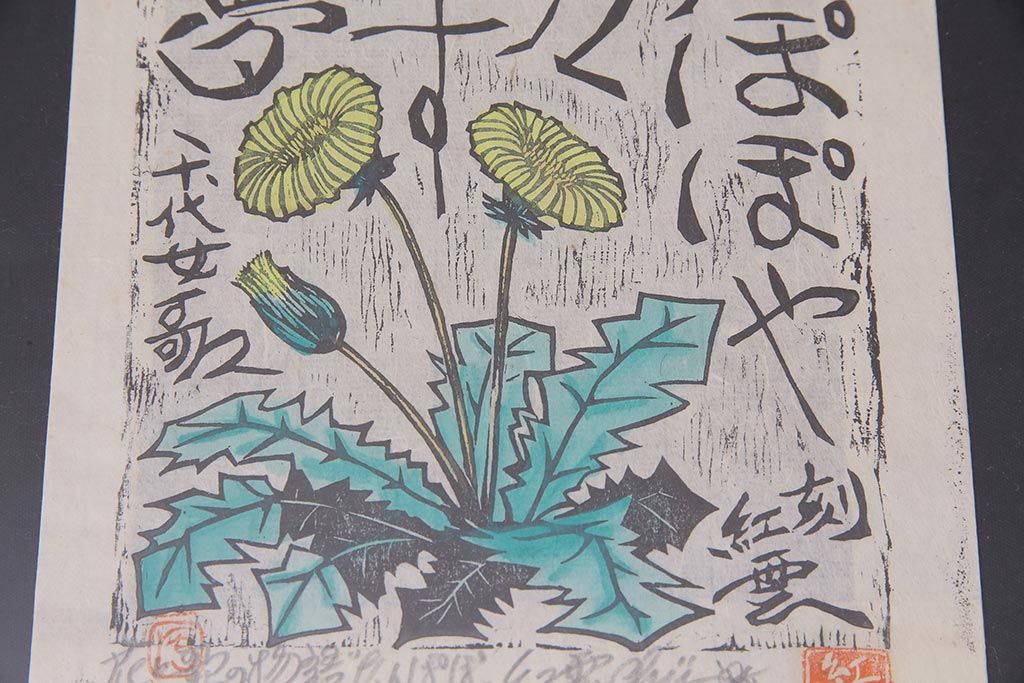ラフジュ工房> 骨董・美術品> 日本画・洋画 > 地井紅雲 椿 たんぽぽ 功雲 木版画3枚セット(R-044107)