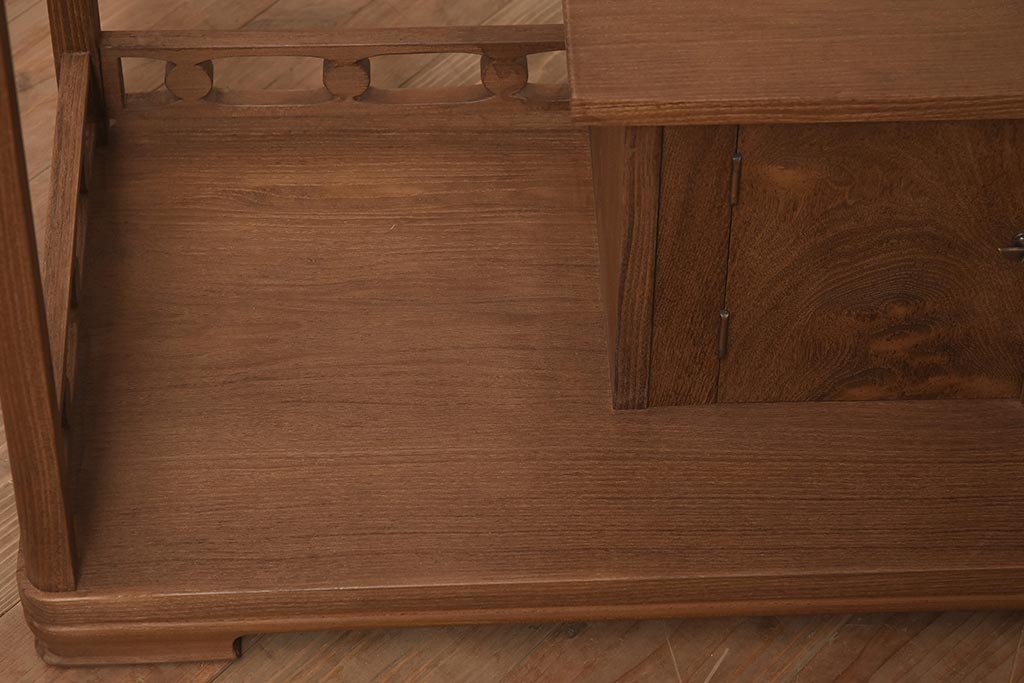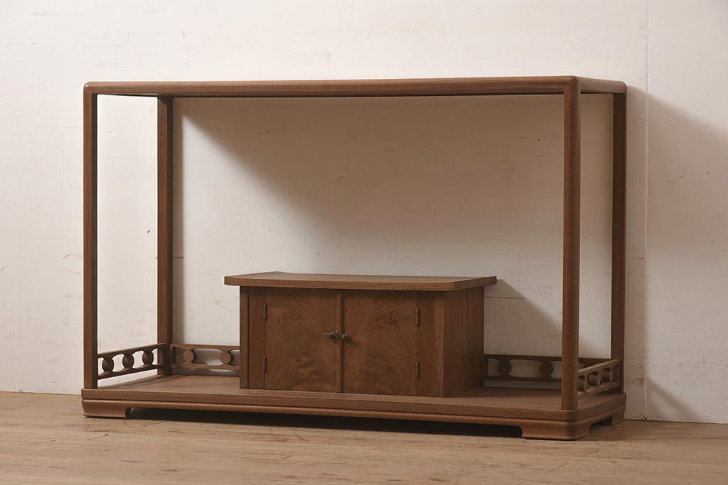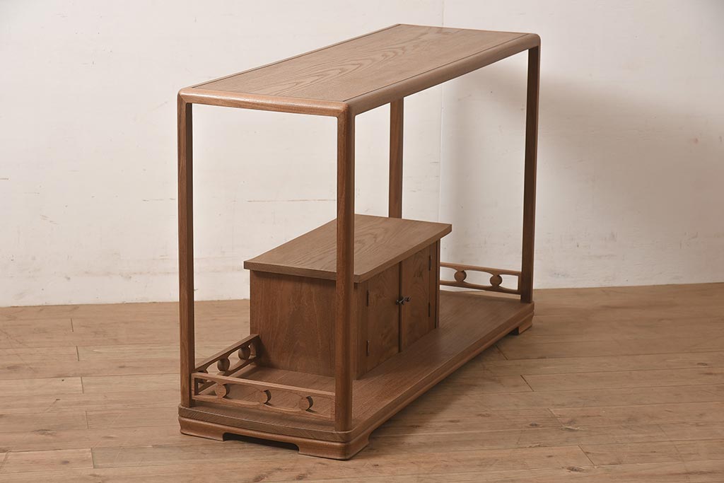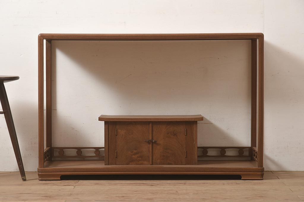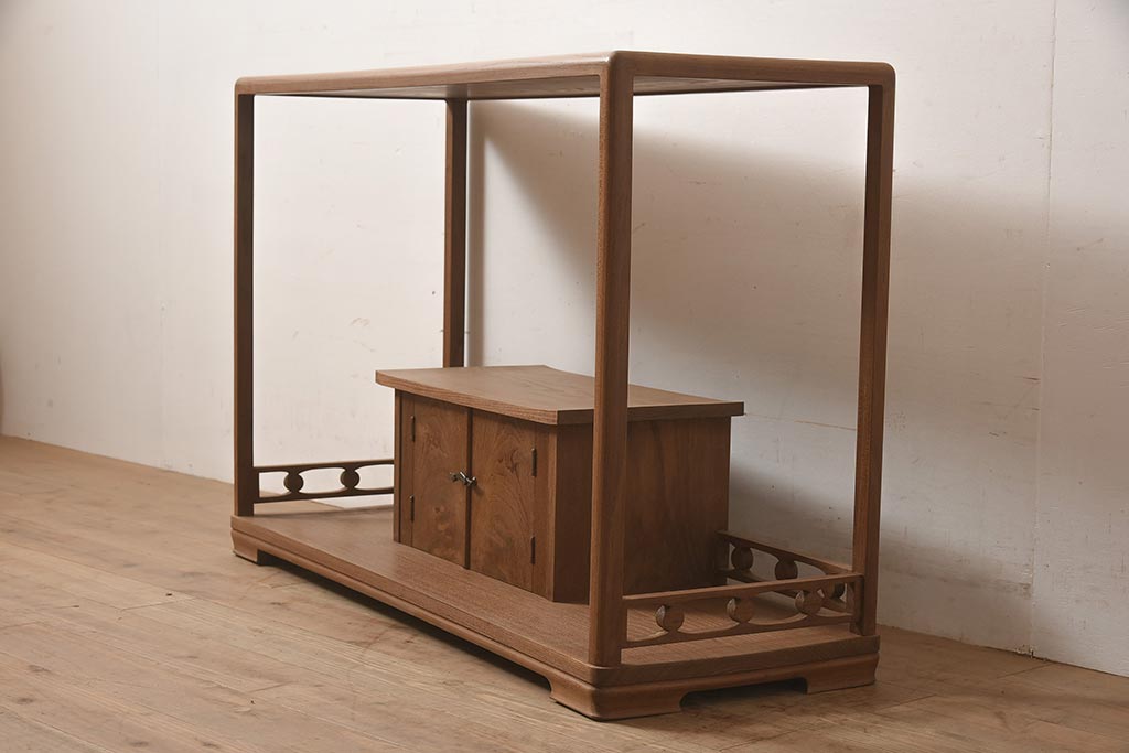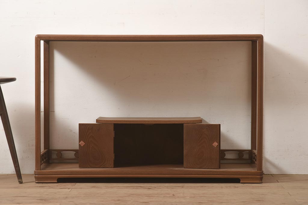 透かし彫りや中央に戸棚が付いたデザインが個性的で、