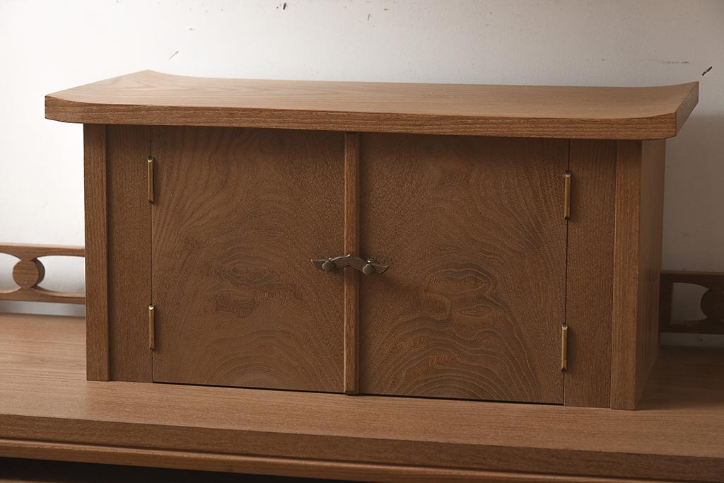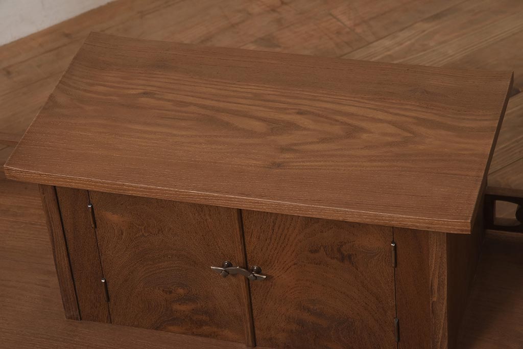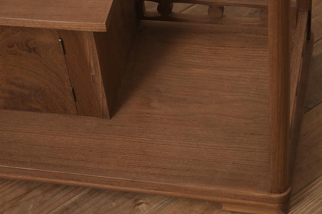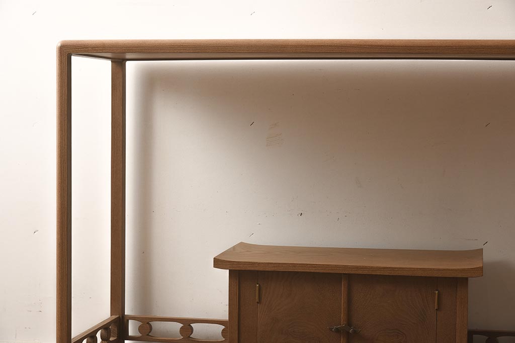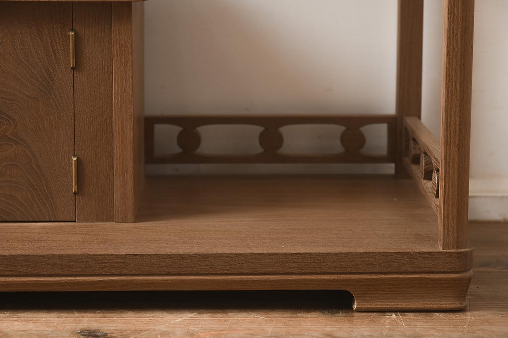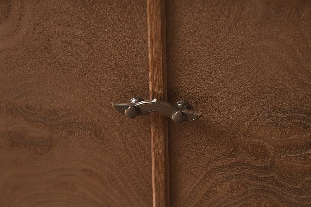 透かし彫りや中央に戸棚が付いたデザインが個性的で、
