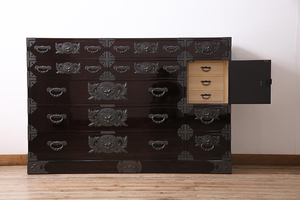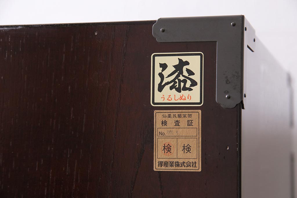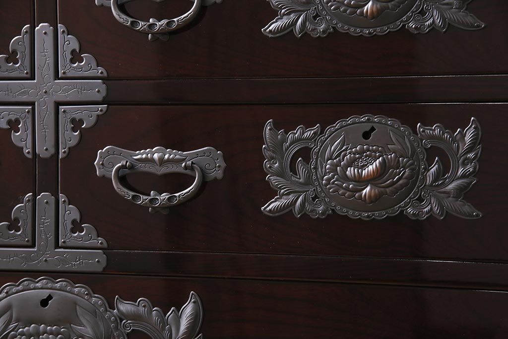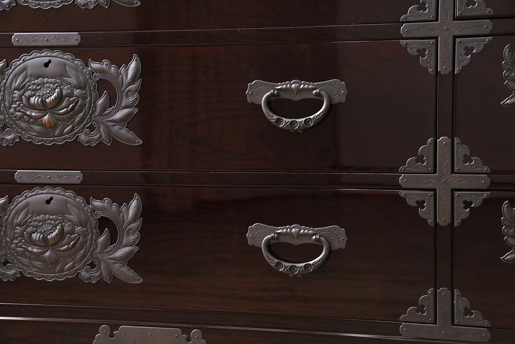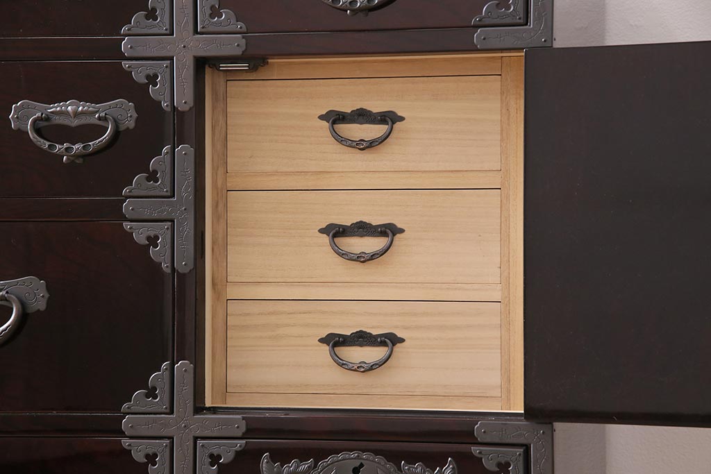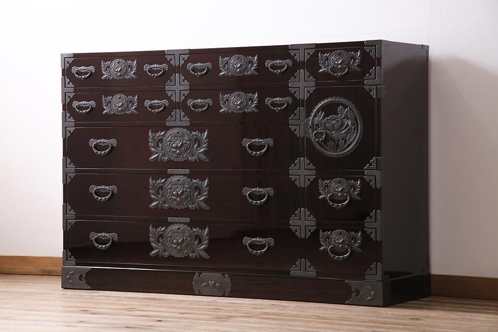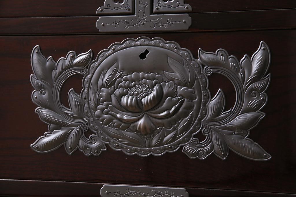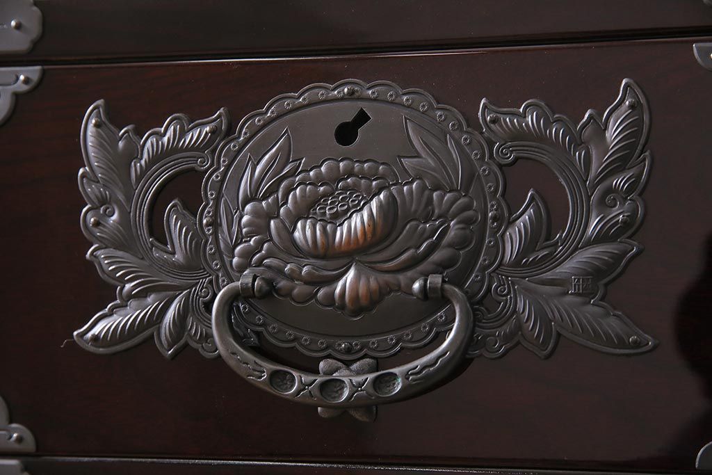 和箪笥 > 中古 仙台民芸箪笥(仙台箪笥) 欅産業 木地呂塗りと牡丹金具が美しい衣装箪笥(整理箪笥、引き出し)(定価約115万円)(R-043835)
