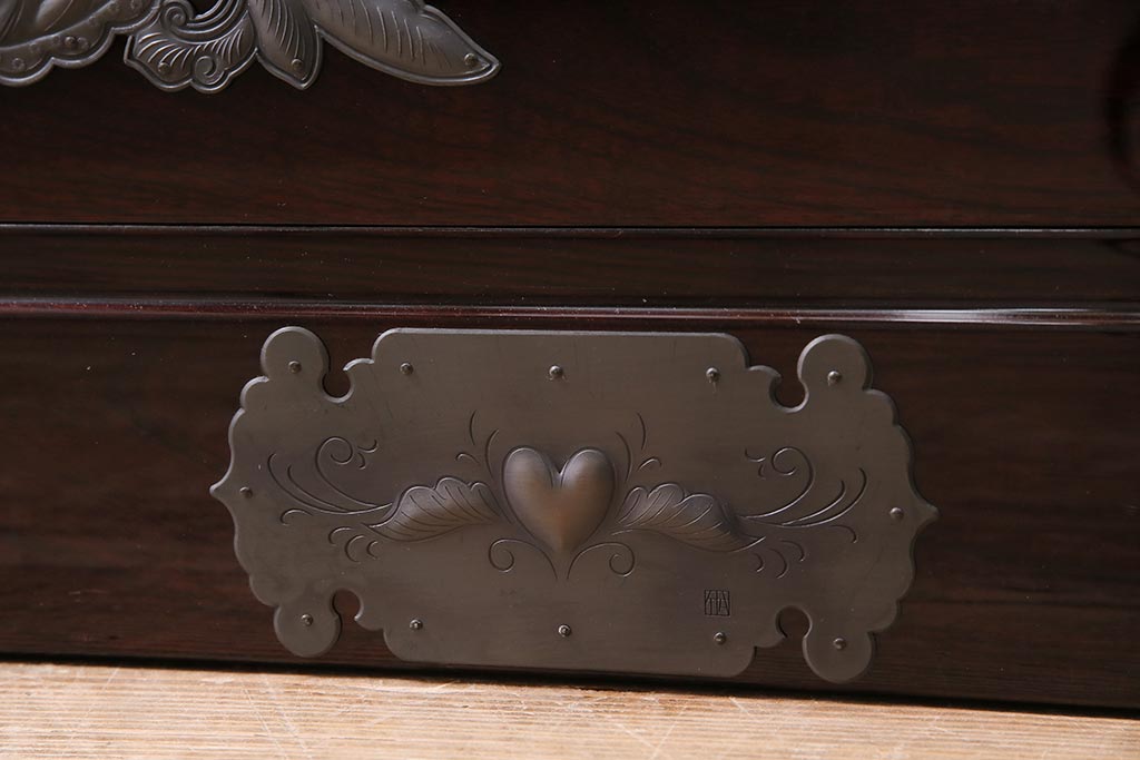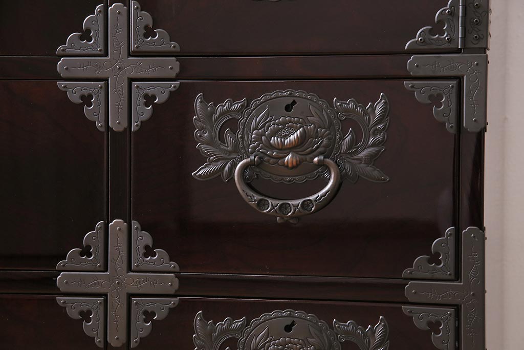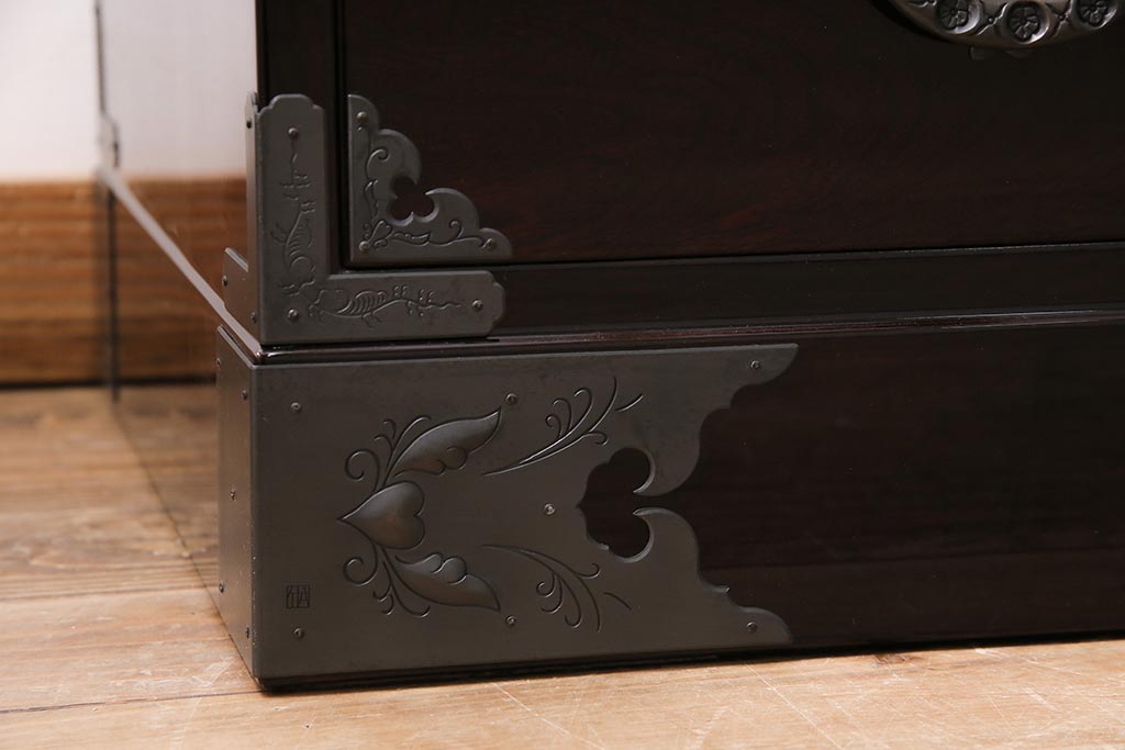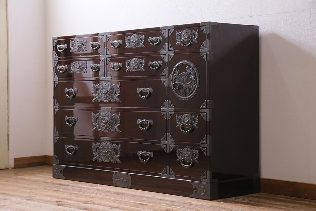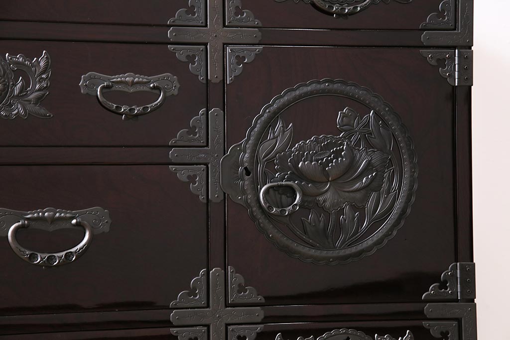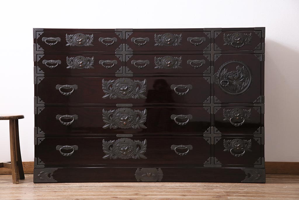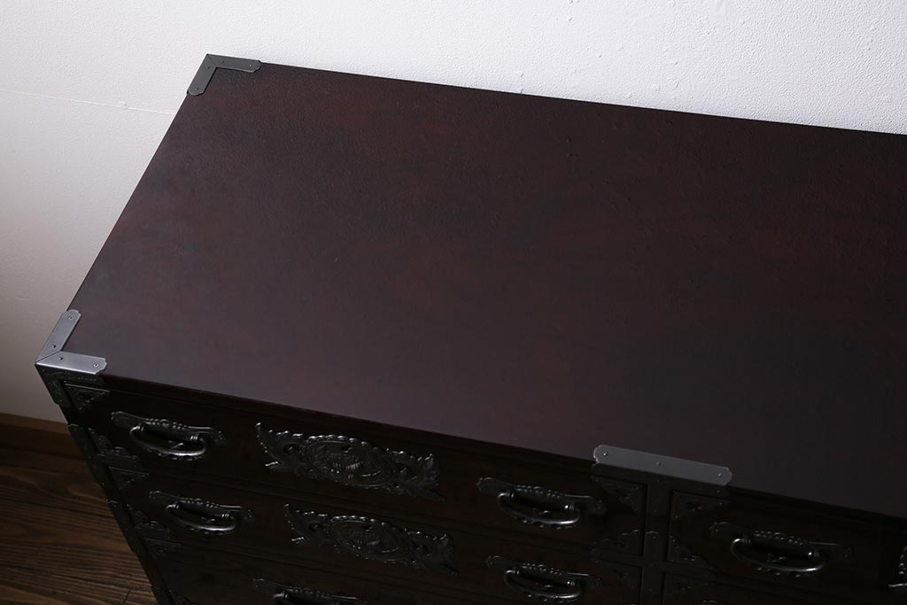 和箪笥 > 中古 仙台民芸箪笥(仙台箪笥) 欅産業 木地呂塗りと牡丹金具が美しい衣装箪笥(整理箪笥、引き出し)(定価約115万円)(R-043835)