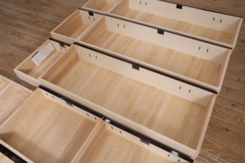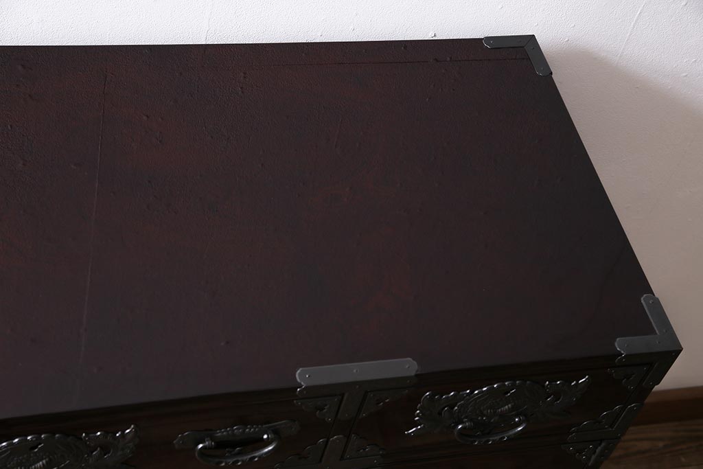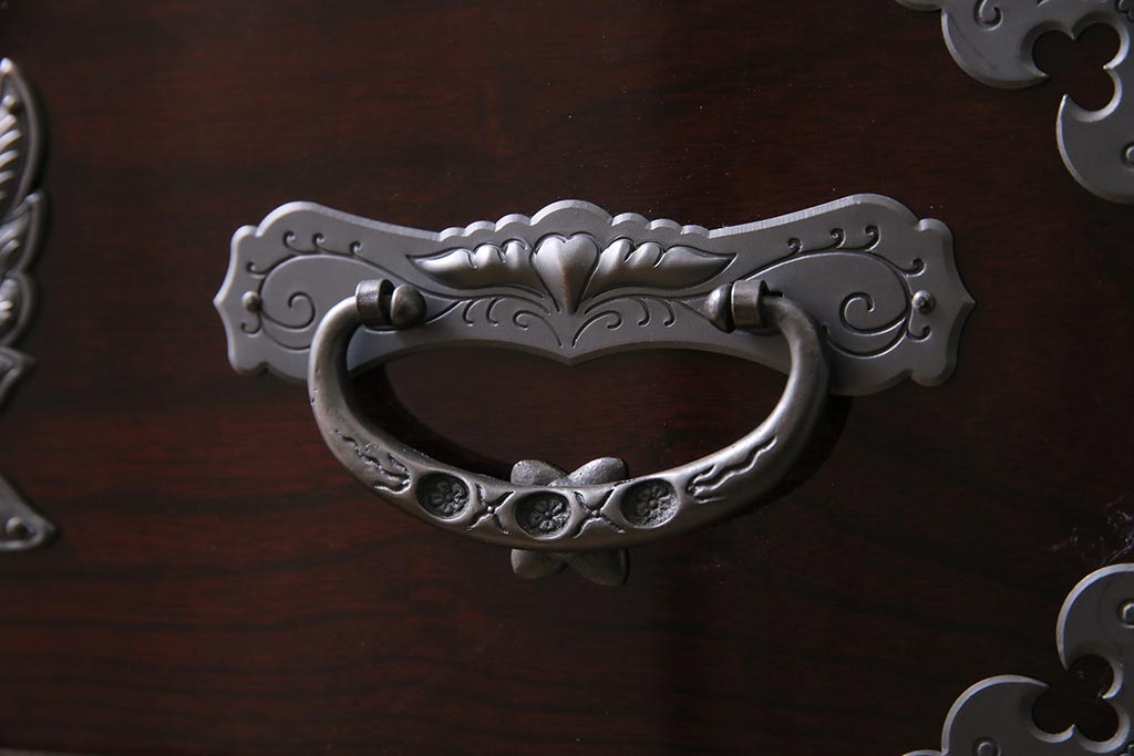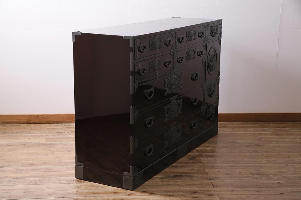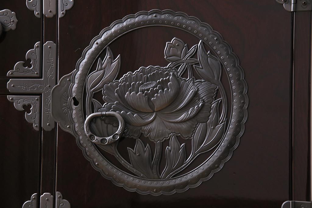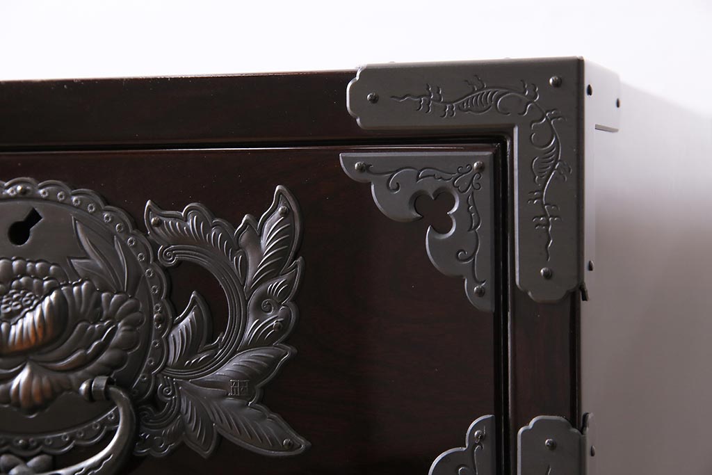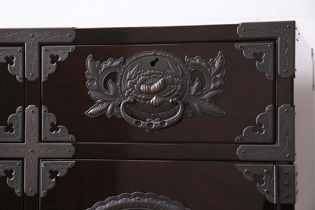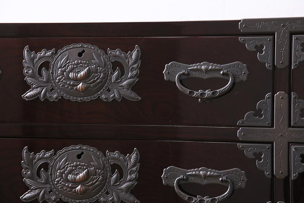 和箪笥 > 中古 仙台民芸箪笥(仙台箪笥) 欅産業 木地呂塗りと牡丹金具が美しい衣装箪笥(整理箪笥、引き出し)(定価約115万円)(R-043835)