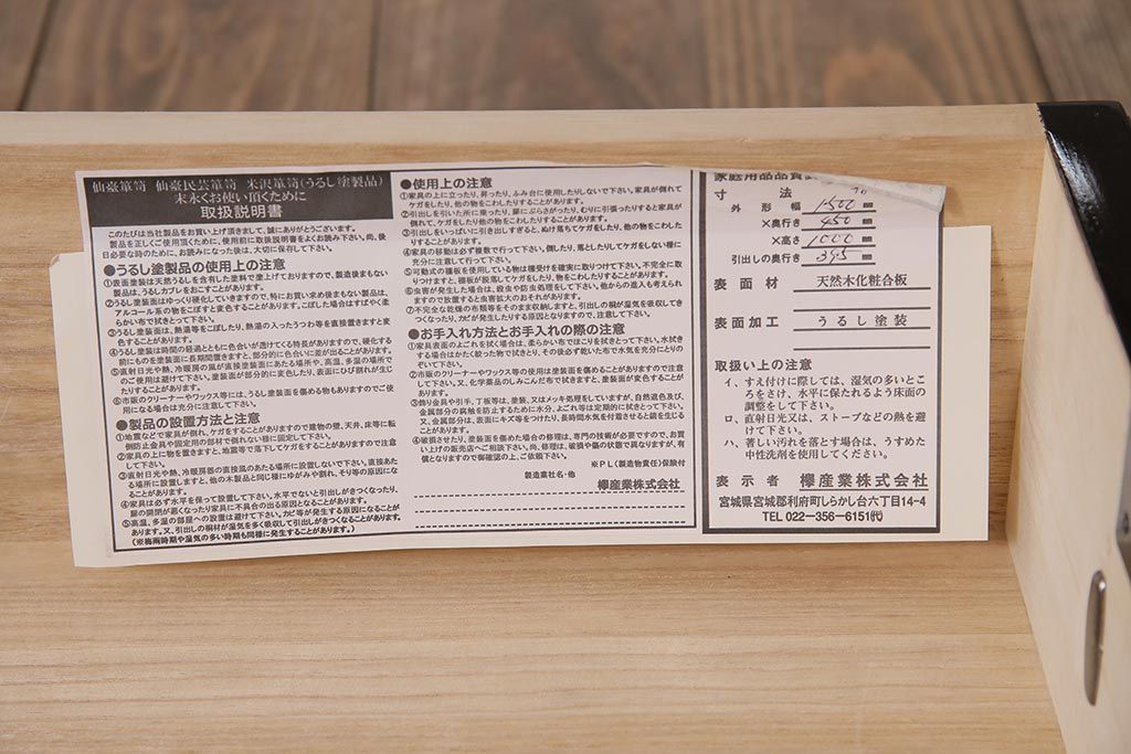 民芸家具 > 中古 仙台民芸箪笥(仙台箪笥) 欅産業 木地呂塗りと牡丹金具が美しい衣装箪笥(整理箪笥、引き出し)(定価約115万円)(R-043835)