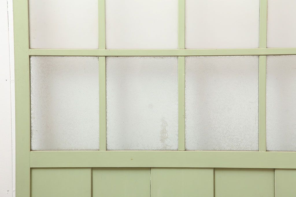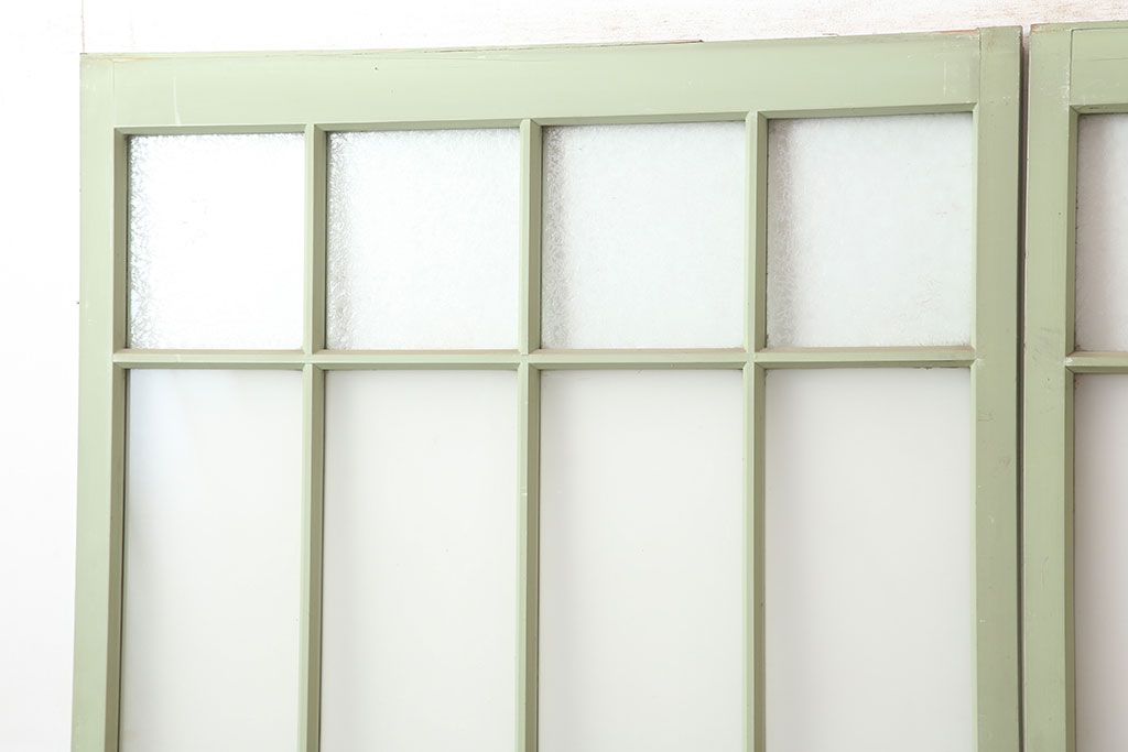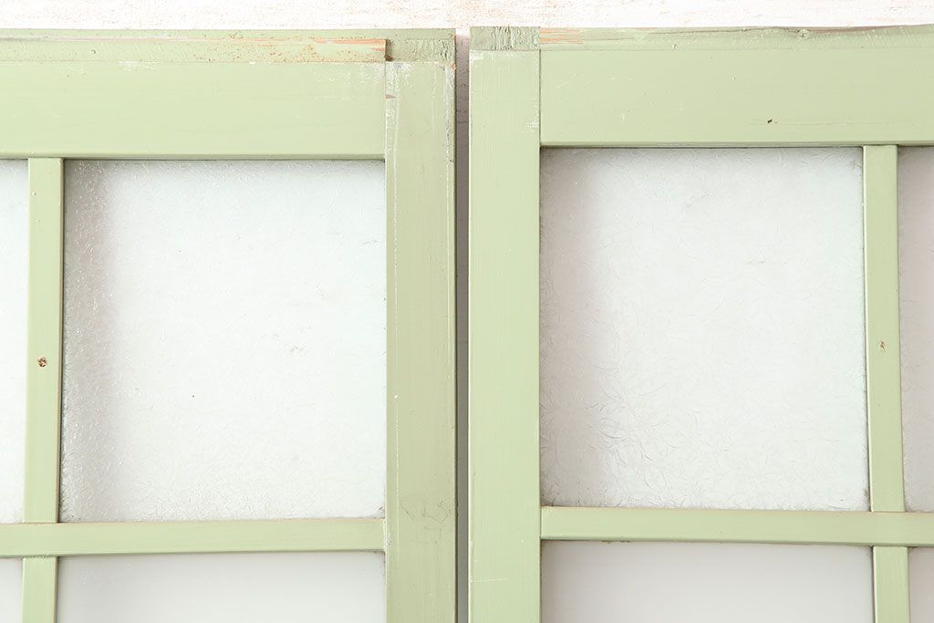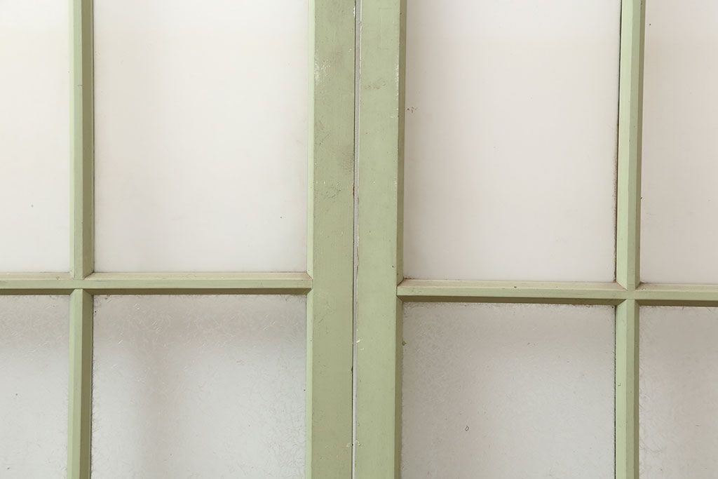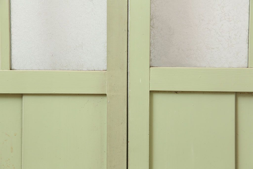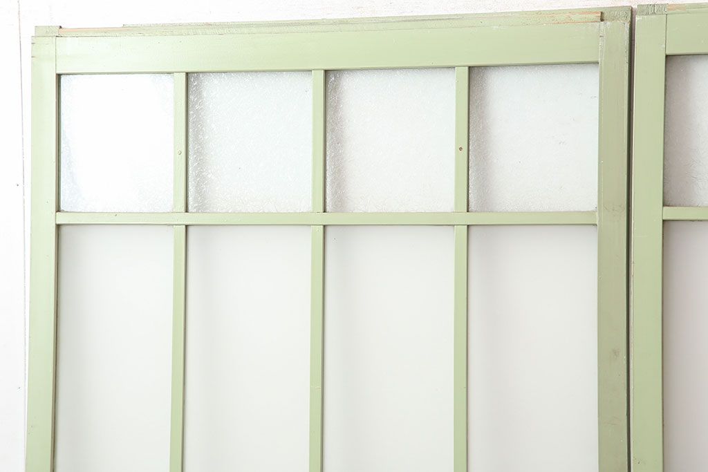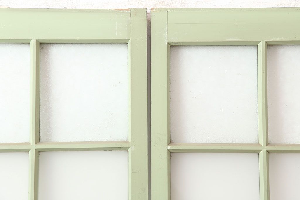 ドア・建具> ガラス戸 > アンティーク建具 昭和中期 結霜・すりガラス入り 淡い色合いのペイントがおしゃれなガラス戸2枚セット(引き戸)(R-044983)