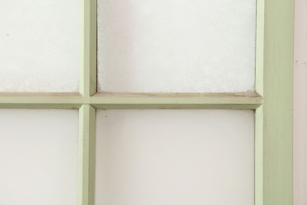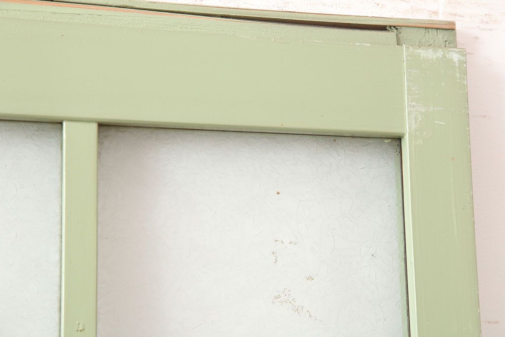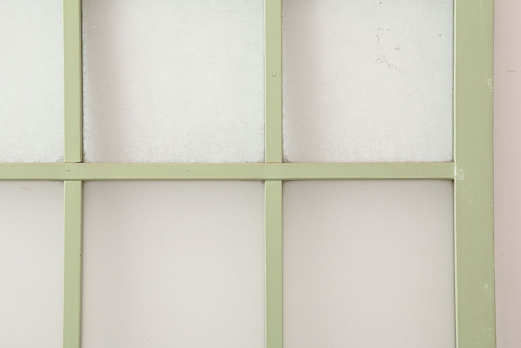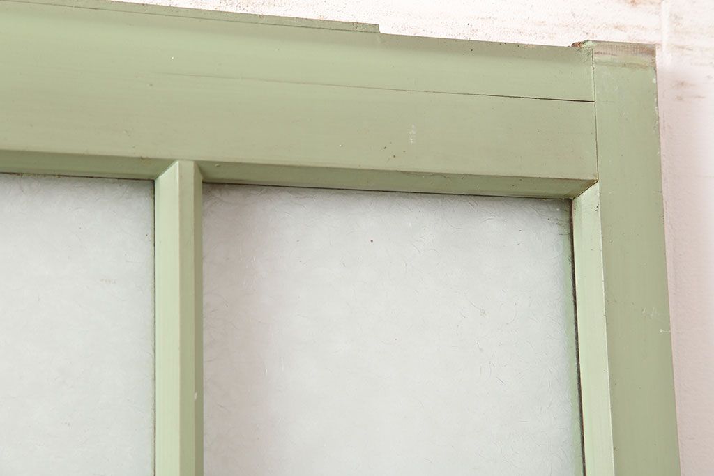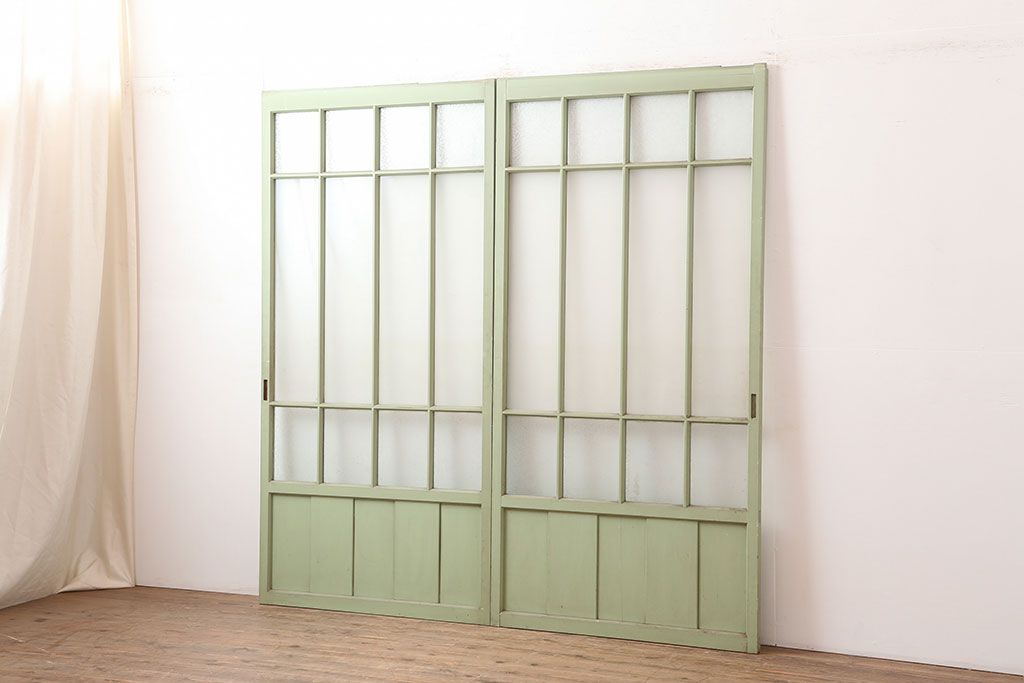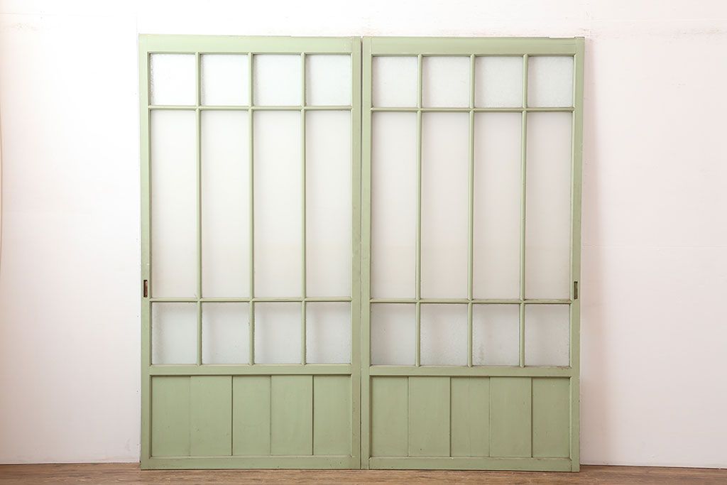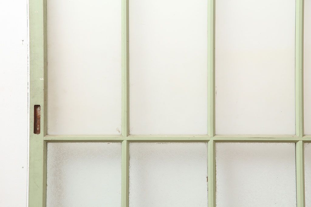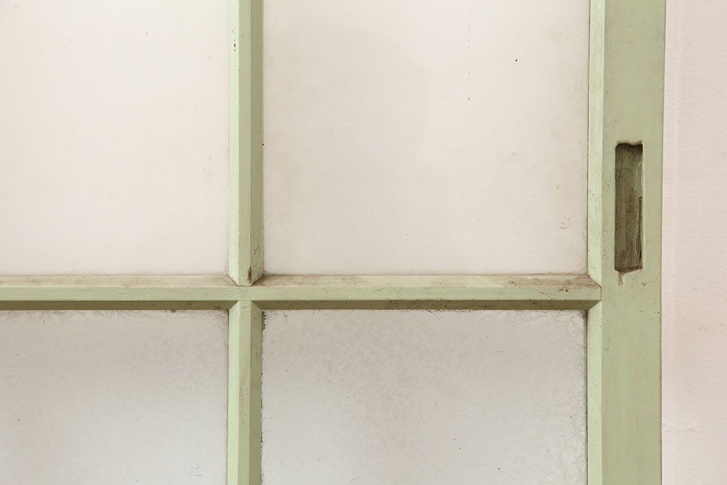 ドア・建具> ガラス戸 > アンティーク建具 昭和中期 結霜・すりガラス入り 淡い色合いのペイントがおしゃれなガラス戸2枚セット(引き戸)(R-044983)