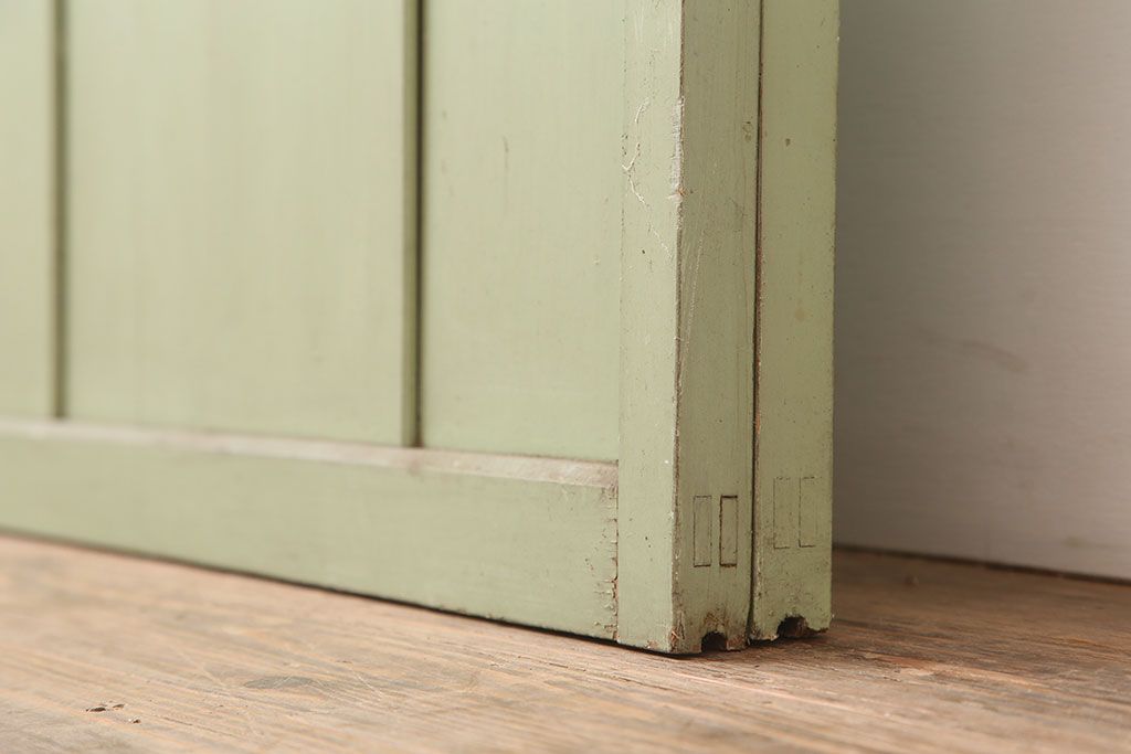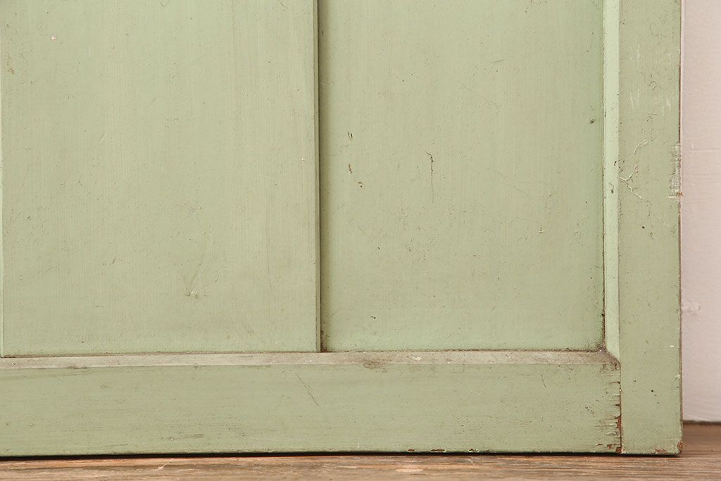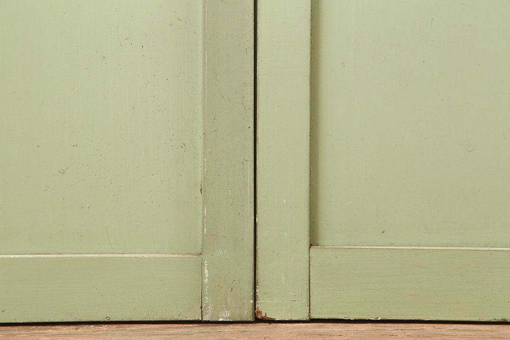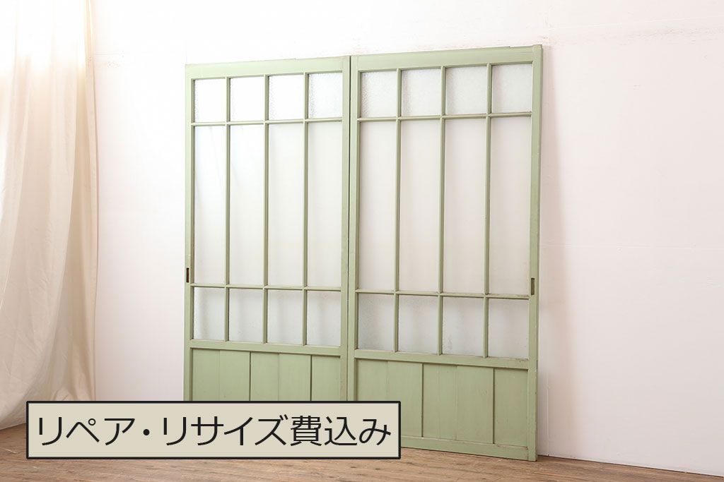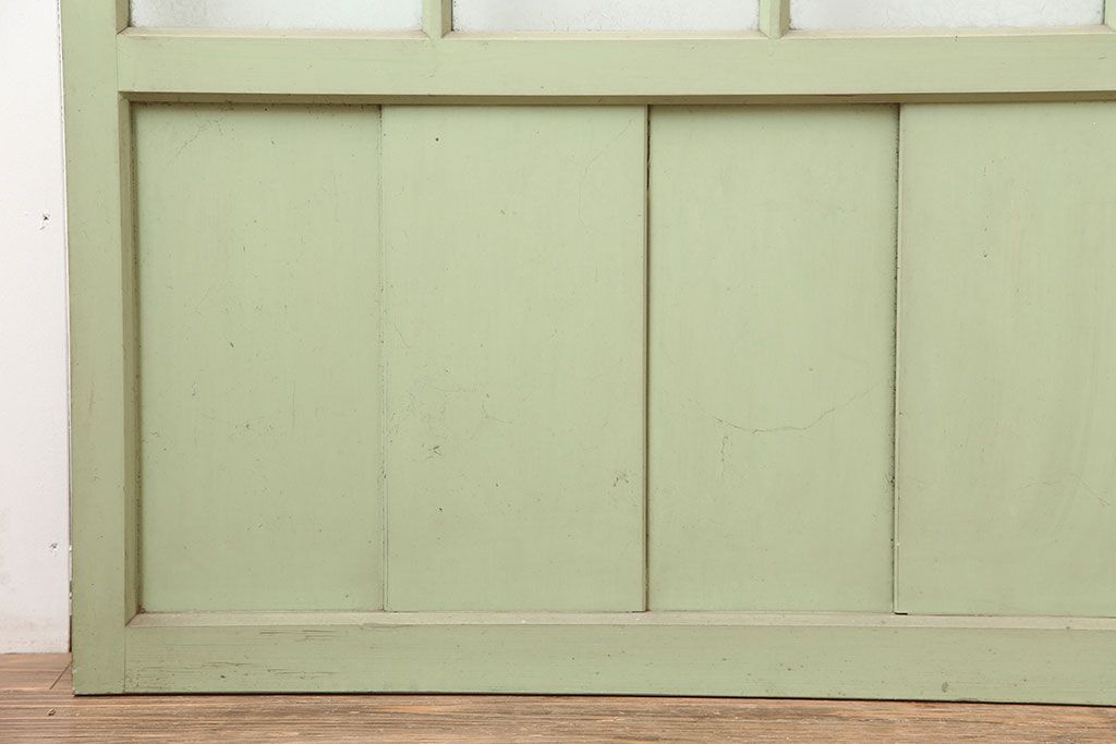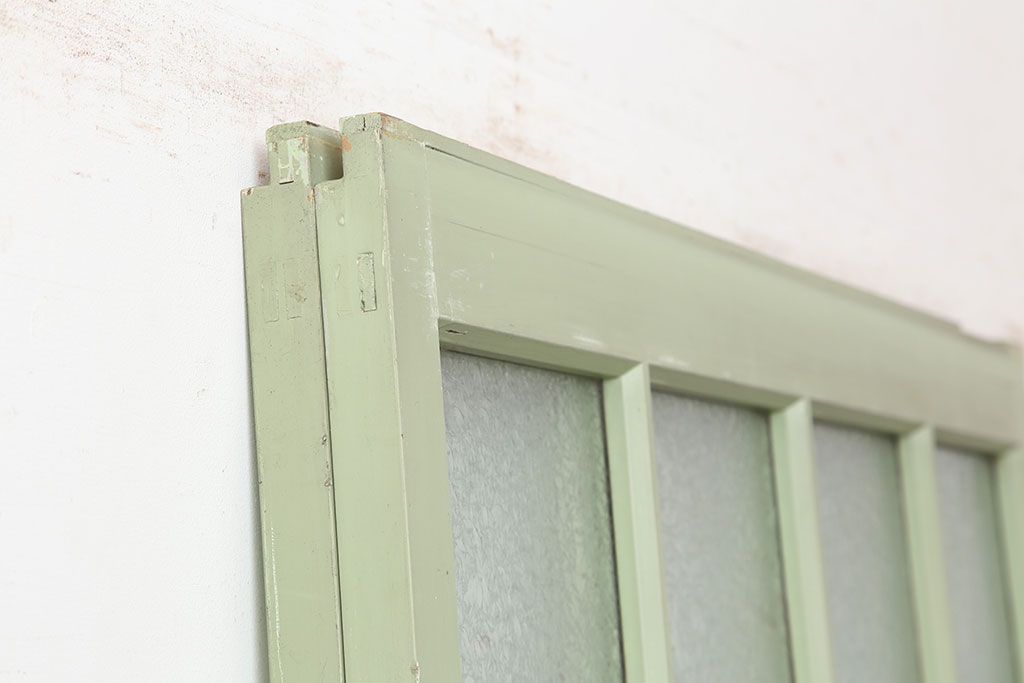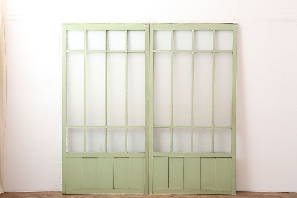 ドア・建具> ガラス戸 > アンティーク建具 昭和中期 結霜・すりガラス入り 淡い色合いのペイントがおしゃれなガラス戸2枚セット(引き戸)(R-044983)