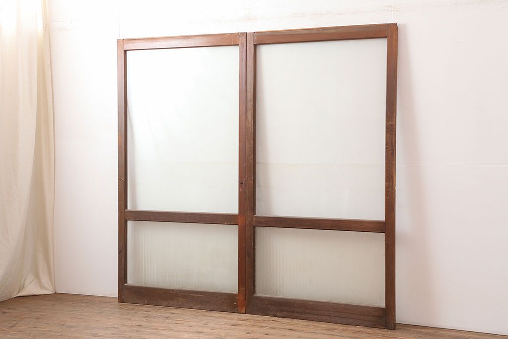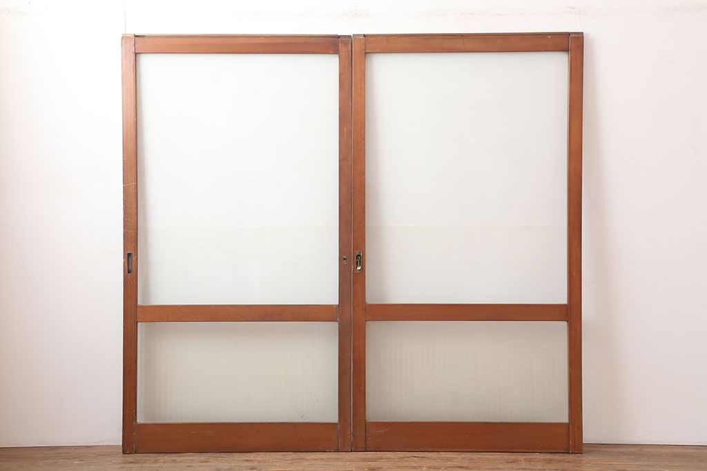 ラフジュ工房> ドア・建具> 引き戸 > アンティーク建具 昭和中期 クリアガラス・銀モールガラス レトロな雰囲気が素敵なガラス戸2枚セット(引き戸)(R-044986)