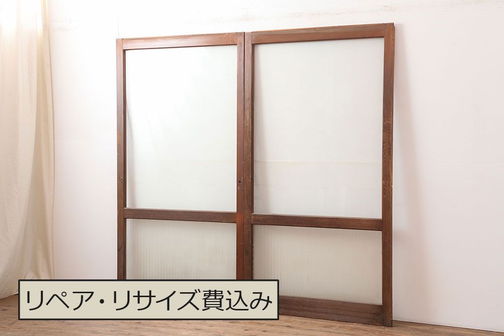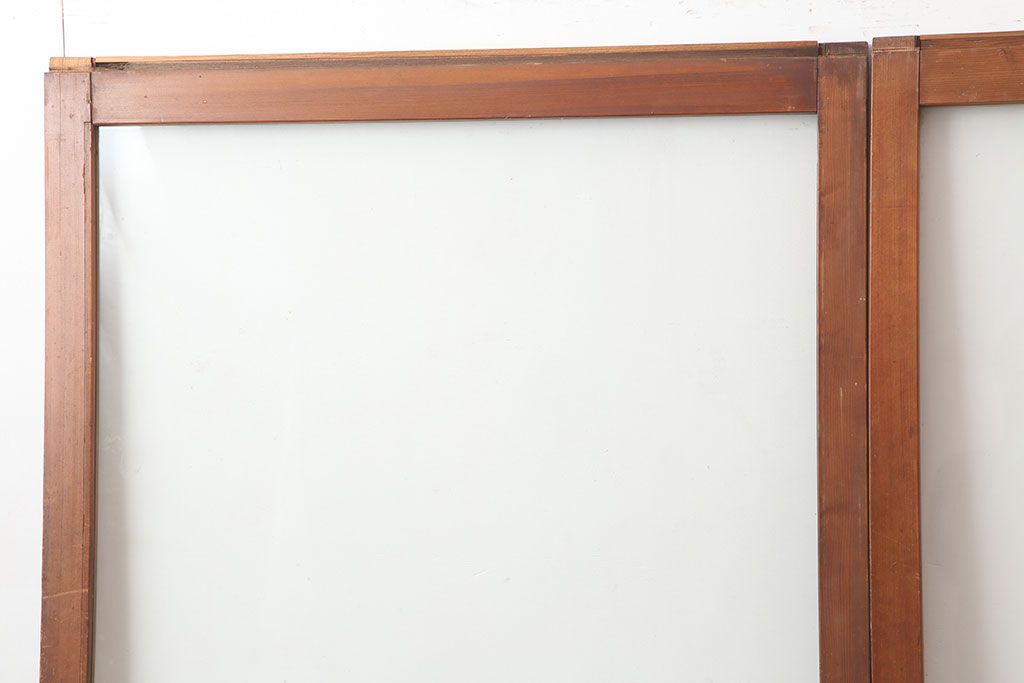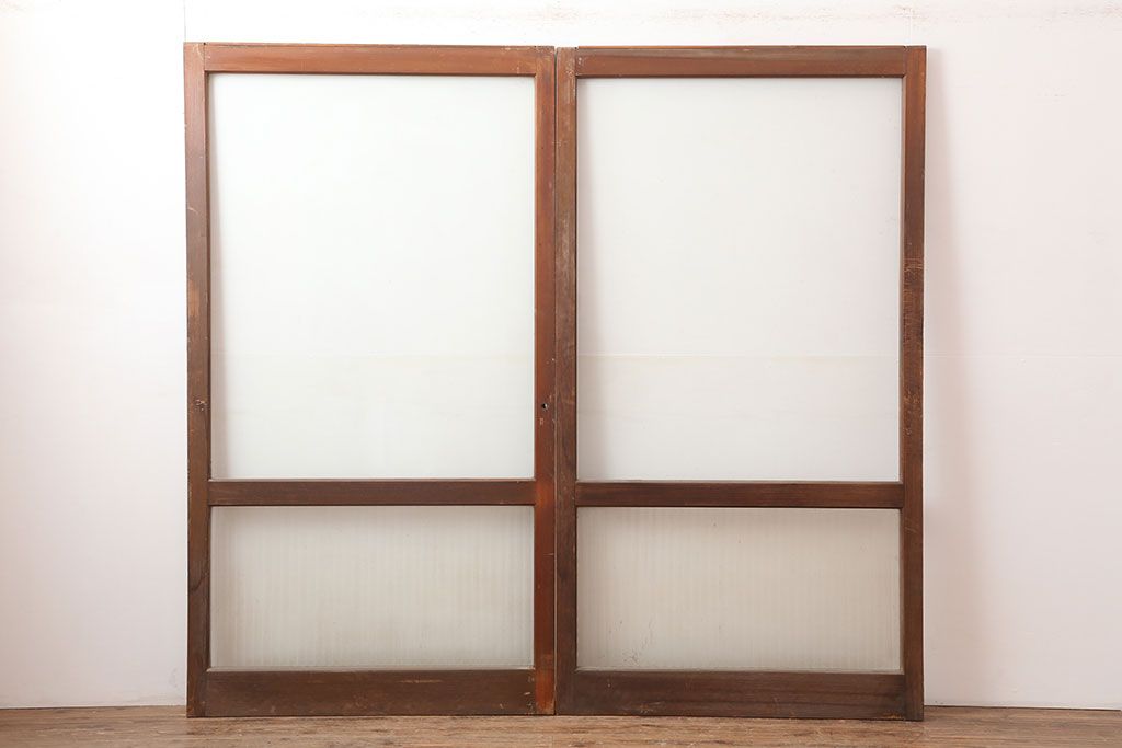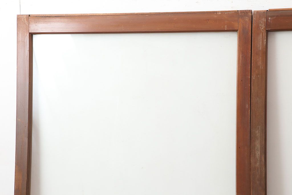 アンティーク建具 昭和中期 クリアガラス・銀モールガラス レトロな雰囲気が素敵なガラス戸2枚セット(引き戸)(R-044986)