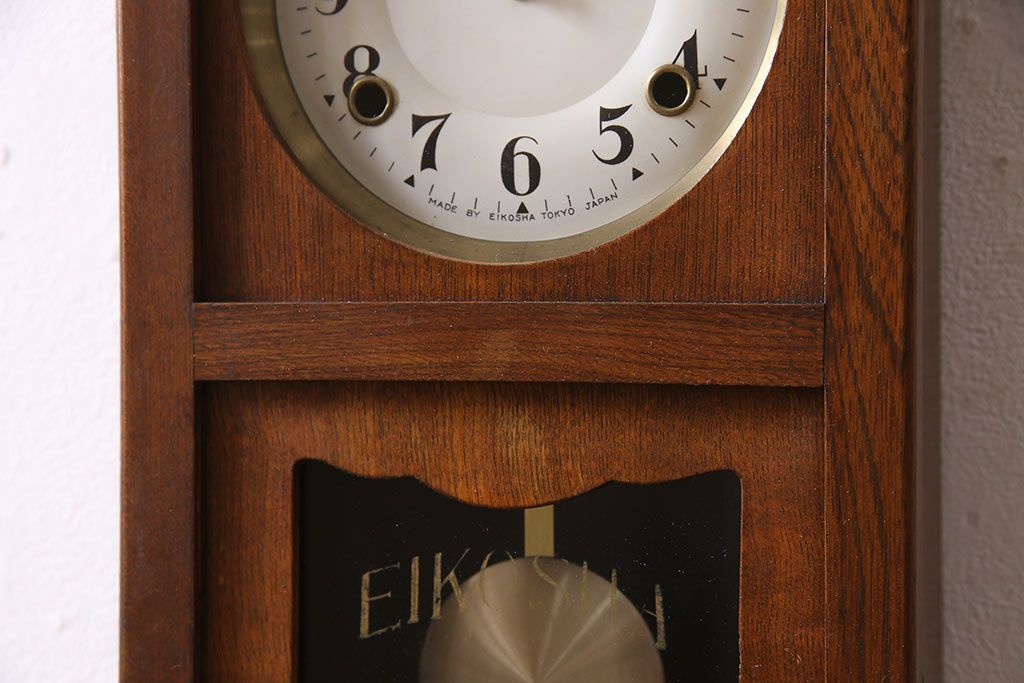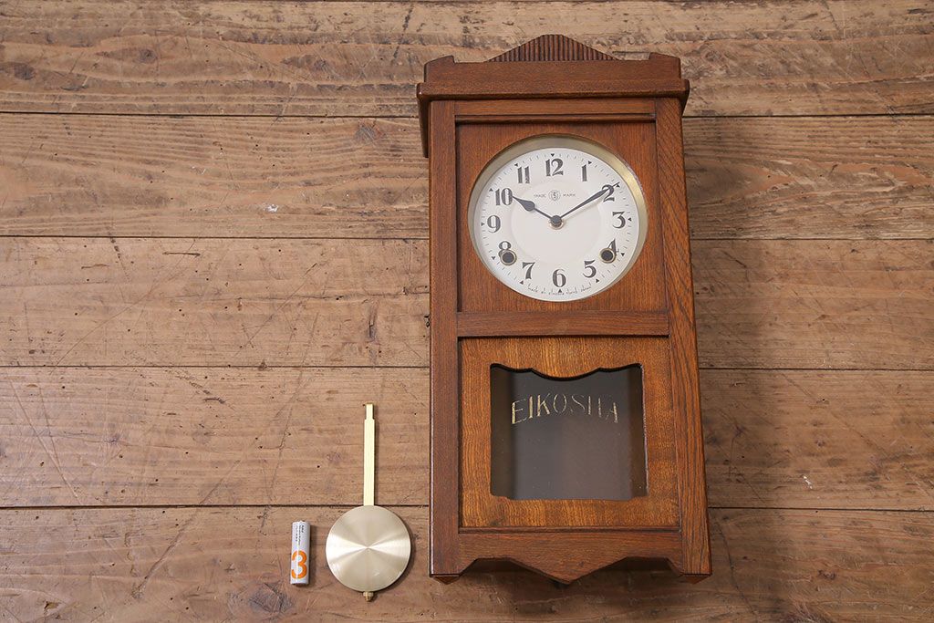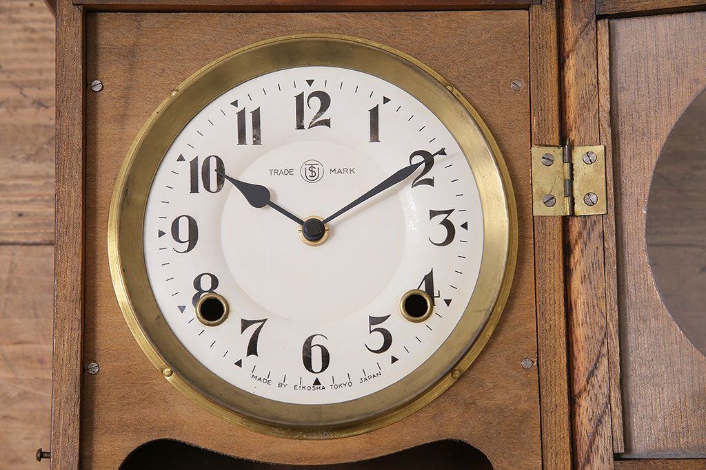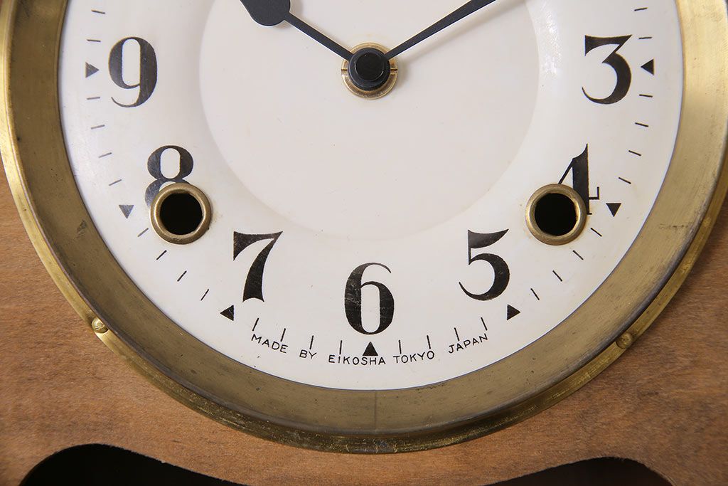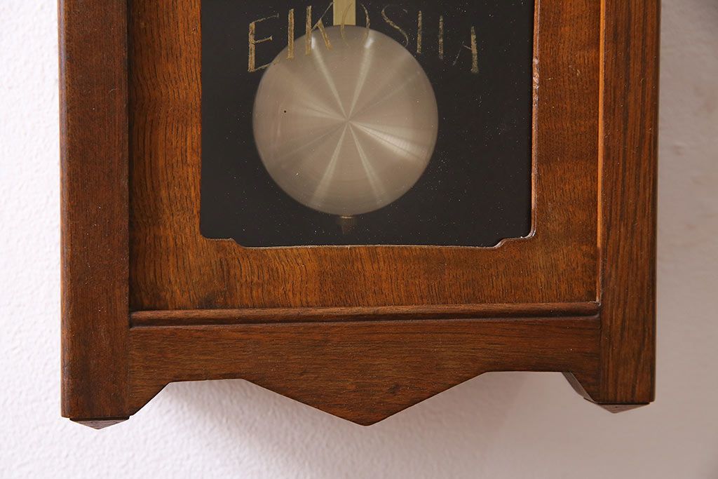 時計> 掛け時計 > アンティーク時計 昭和初期 EIKOSHA(鶴巻時計店英工舎) 電池式 木の温もり感じる宮型掛時計(柱時計、振り子時計)(R-044817)