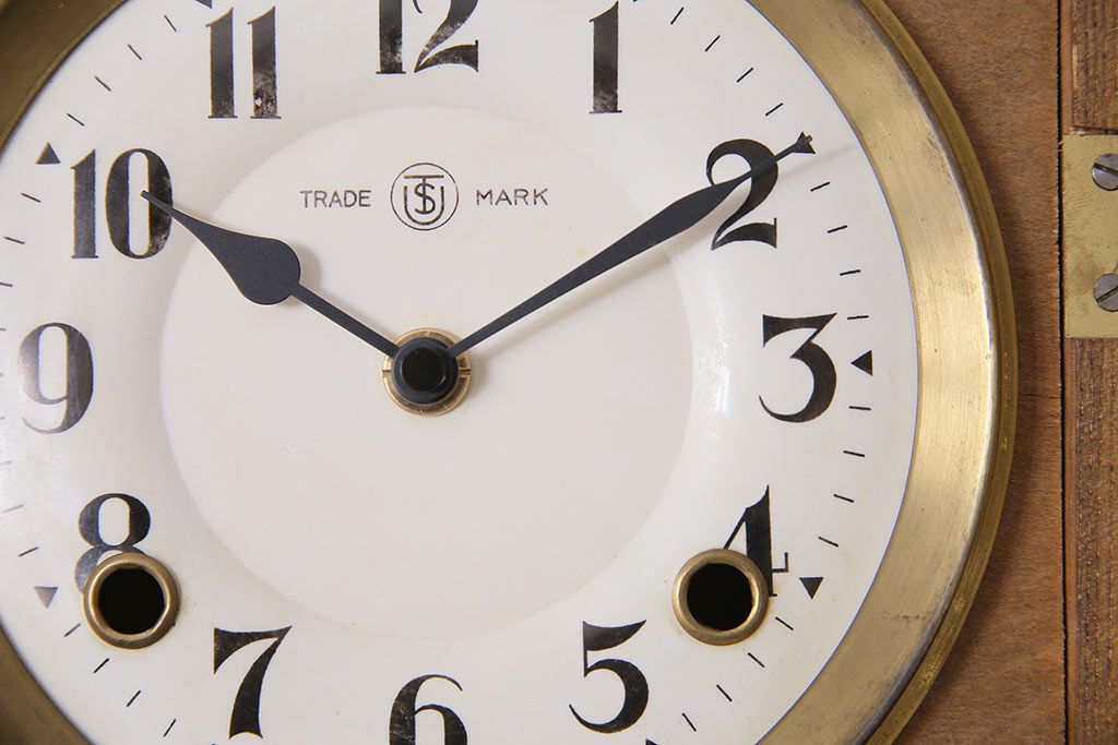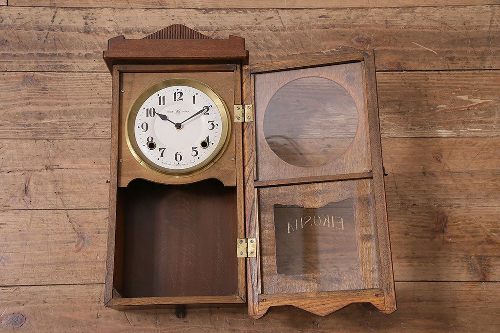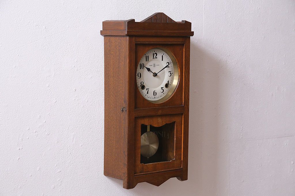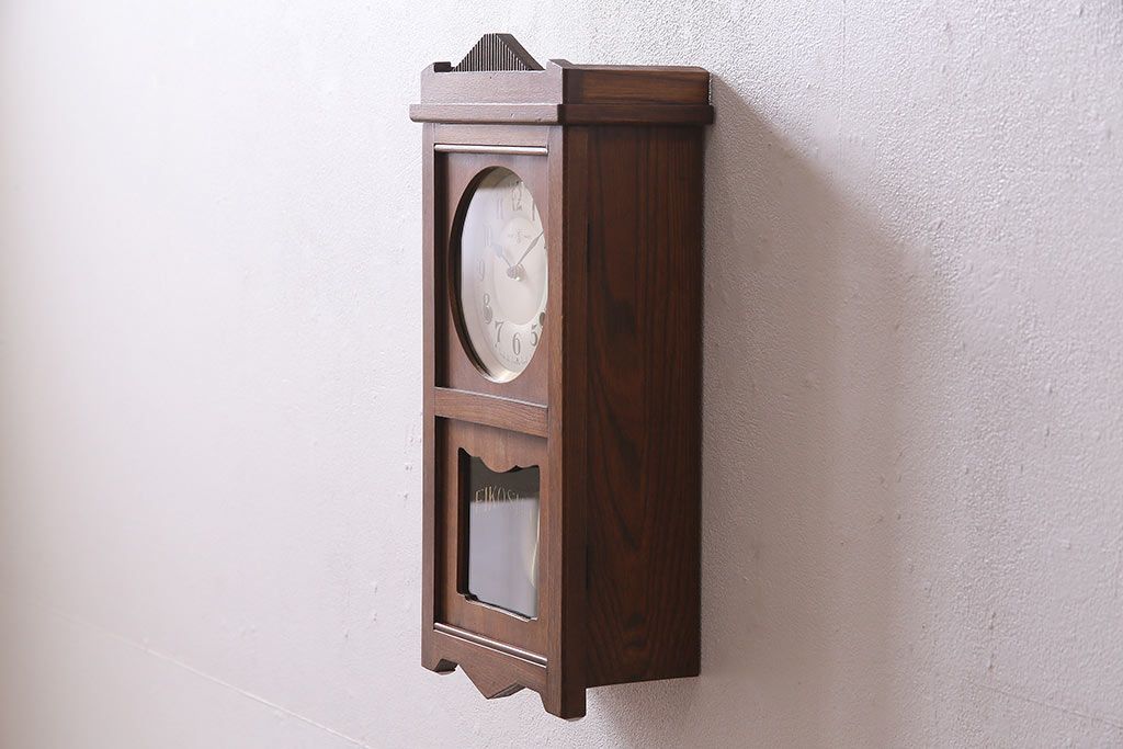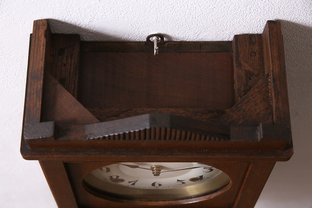 時計> 掛け時計 > アンティーク時計 昭和初期 EIKOSHA(鶴巻時計店英工舎) 電池式 木の温もり感じる宮型掛時計(柱時計、振り子時計)(R-044817)