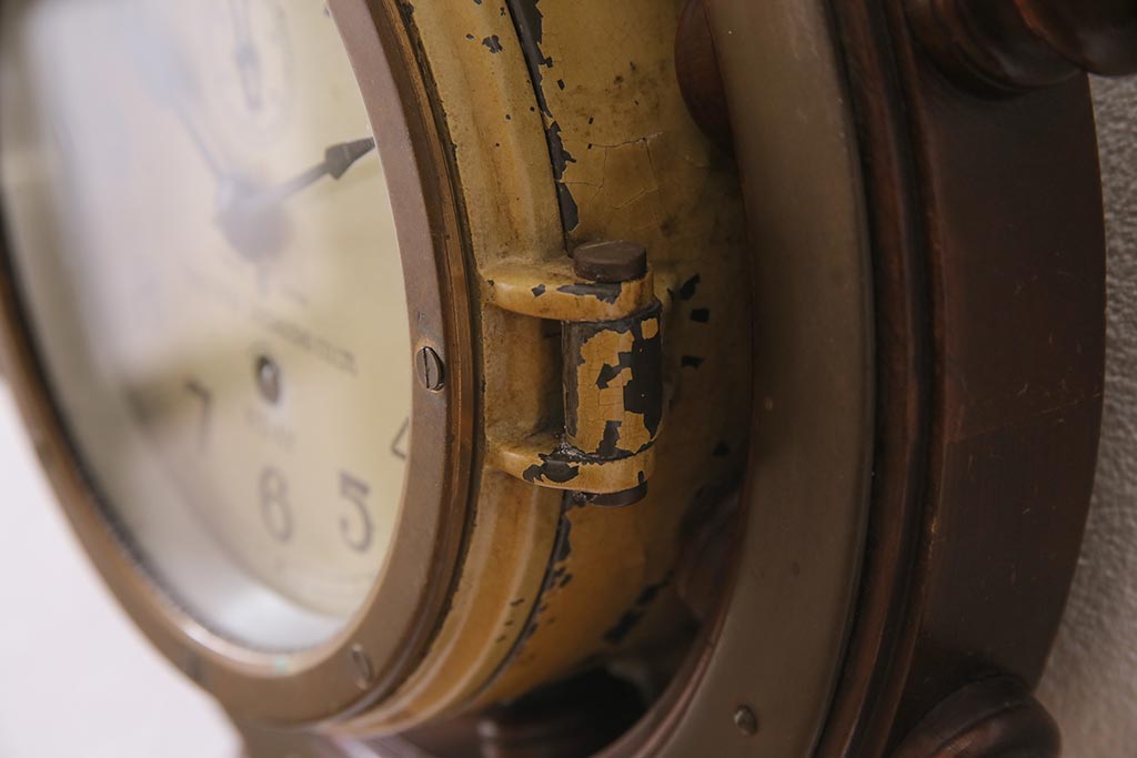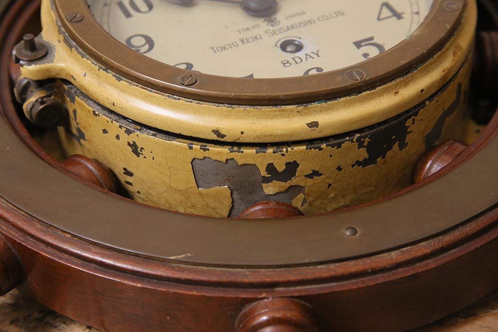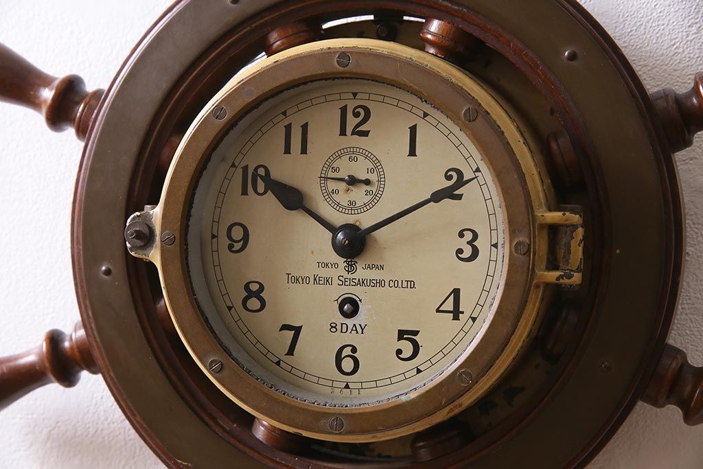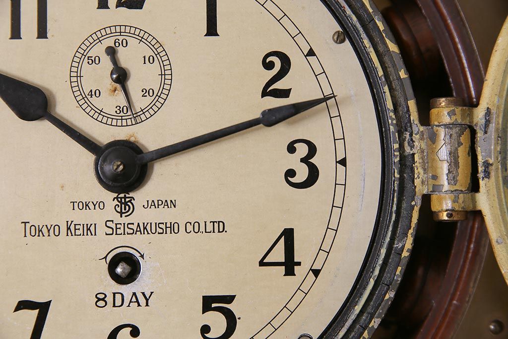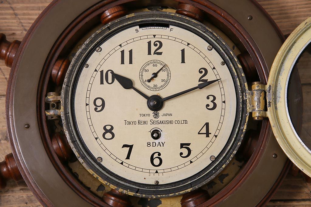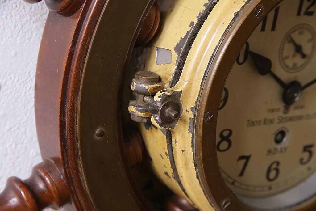 時計> 掛け時計 > アンティーク雑貨 大正昭和初期 東京計器製作所 ゼンマイ式 ラットの意匠がお洒落な船時計(船舶時計、テンプ式)(R-044550)