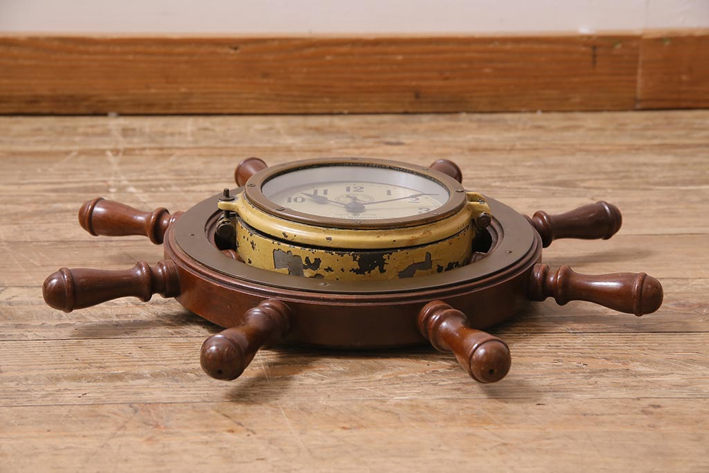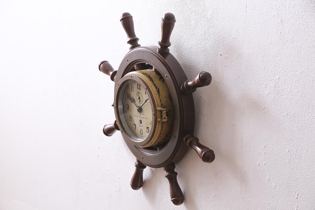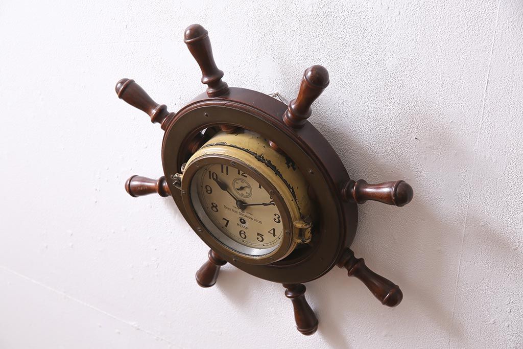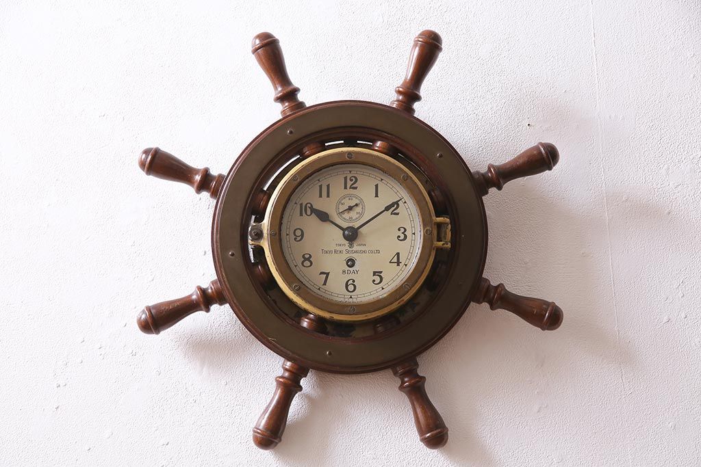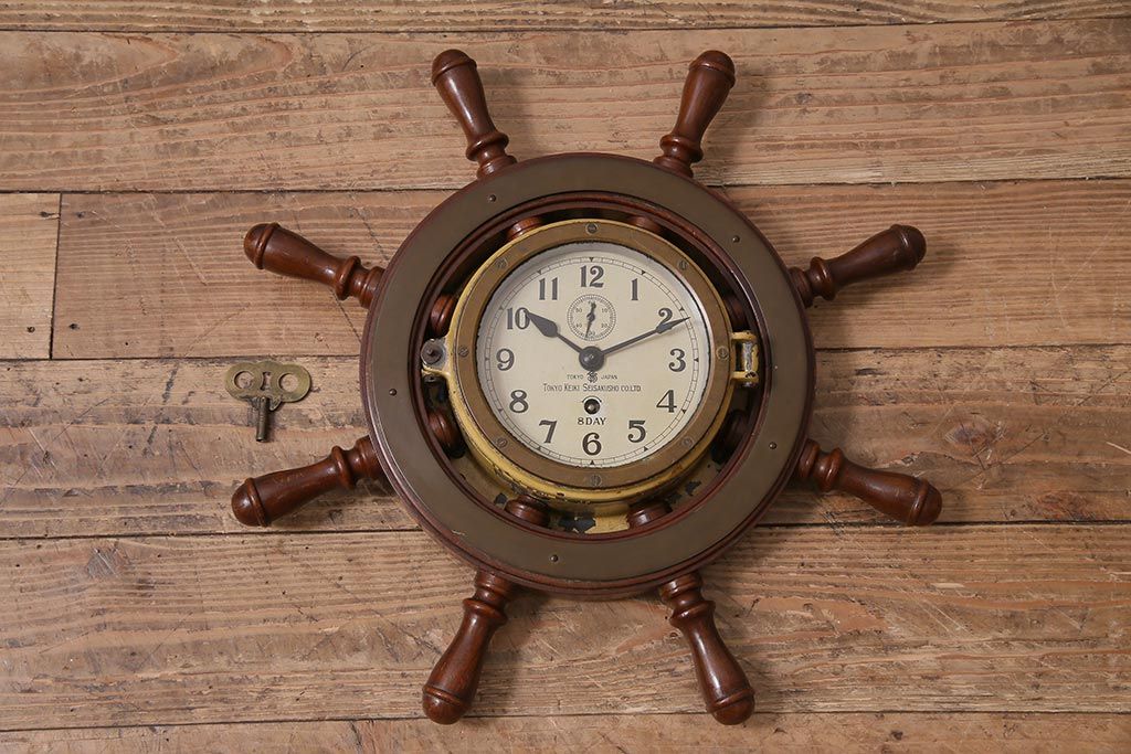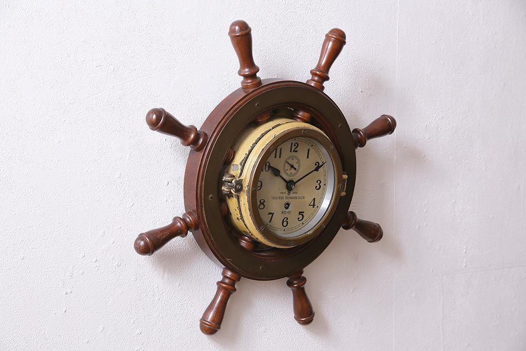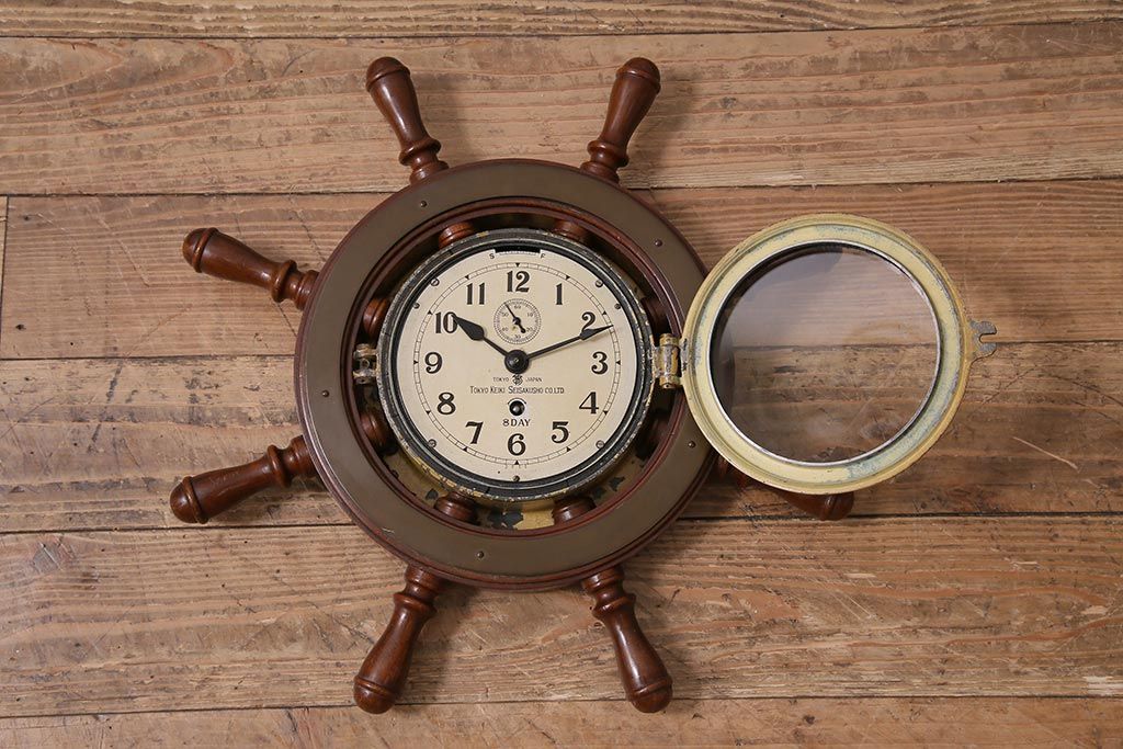 時計> 掛け時計 > アンティーク雑貨 大正昭和初期 東京計器製作所 ゼンマイ式 ラットの意匠がお洒落な船時計(船舶時計、テンプ式)(R-044550)
