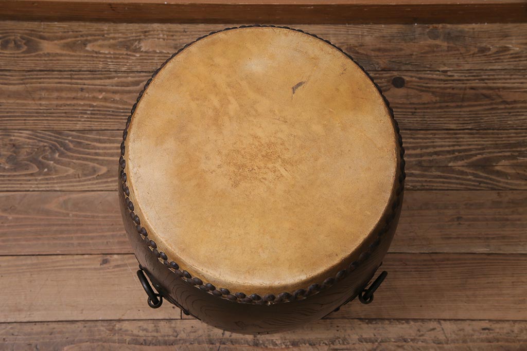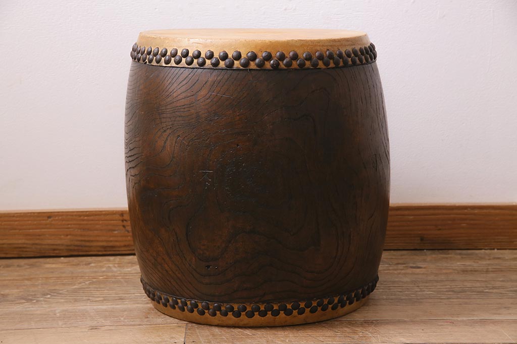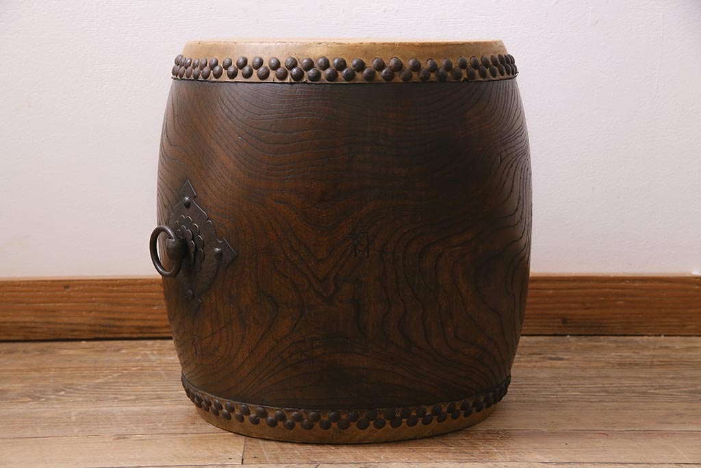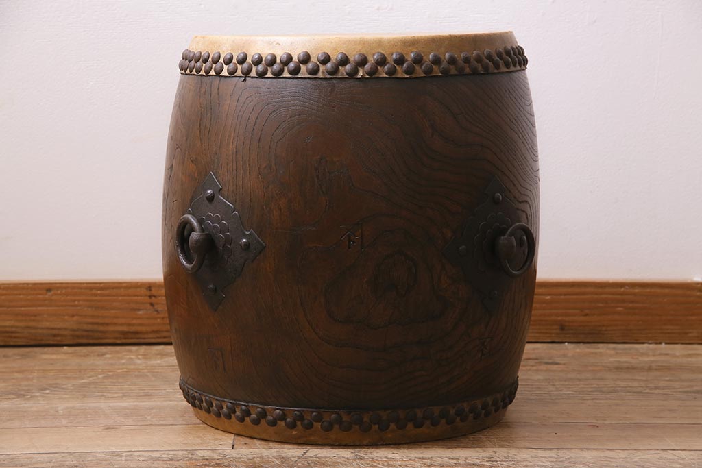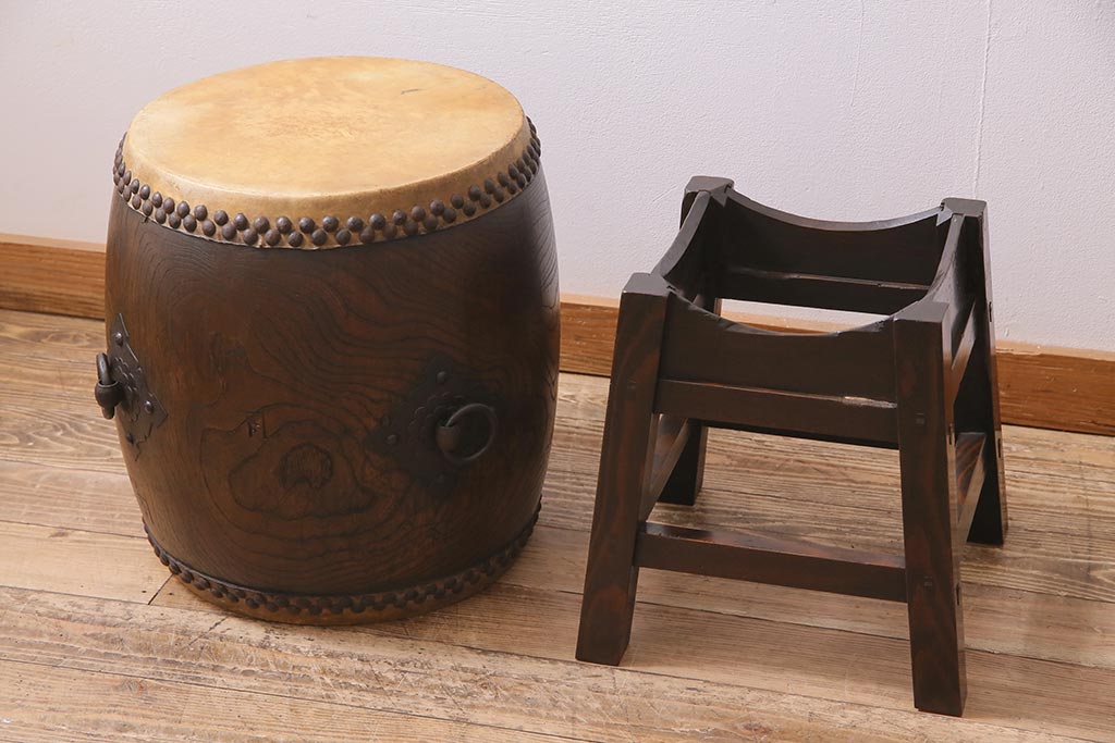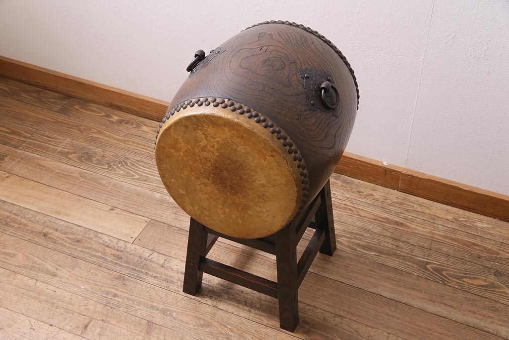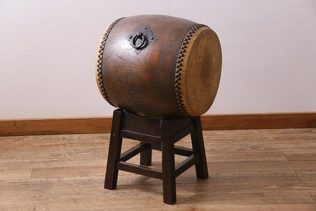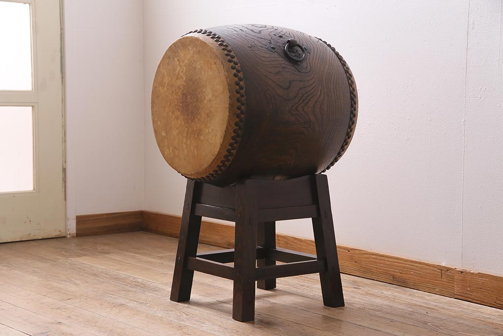 ラフジュ工房> 骨董・美術品 > 明治大正期 欅(ケヤキ)材 古い刳り貫き和太鼓 台付き(くり貫き長胴太鼓、和楽器)(R-044683)