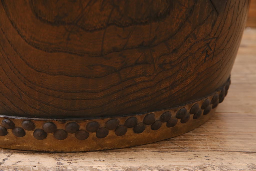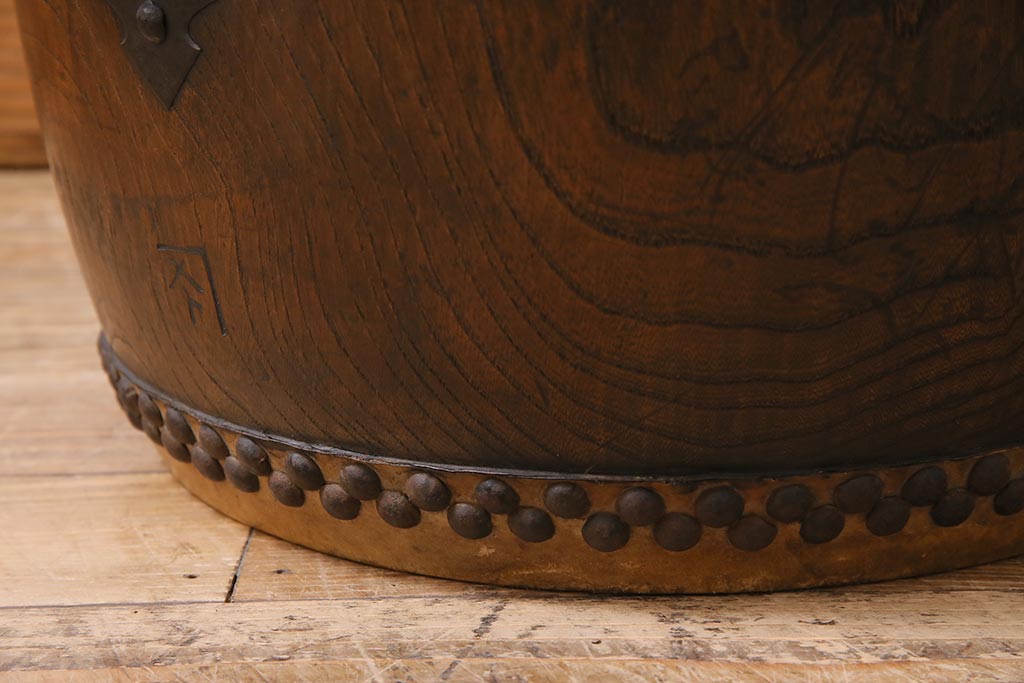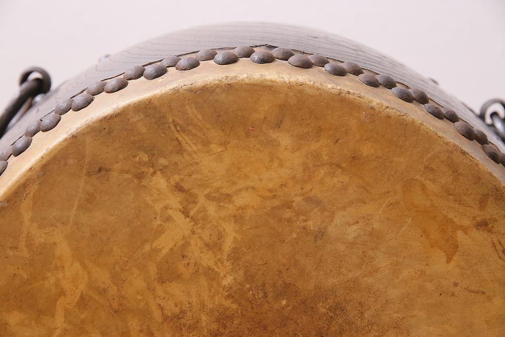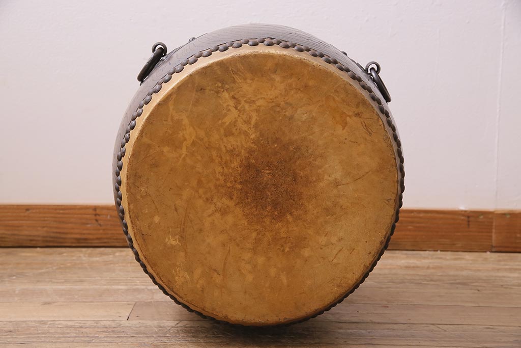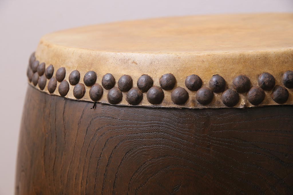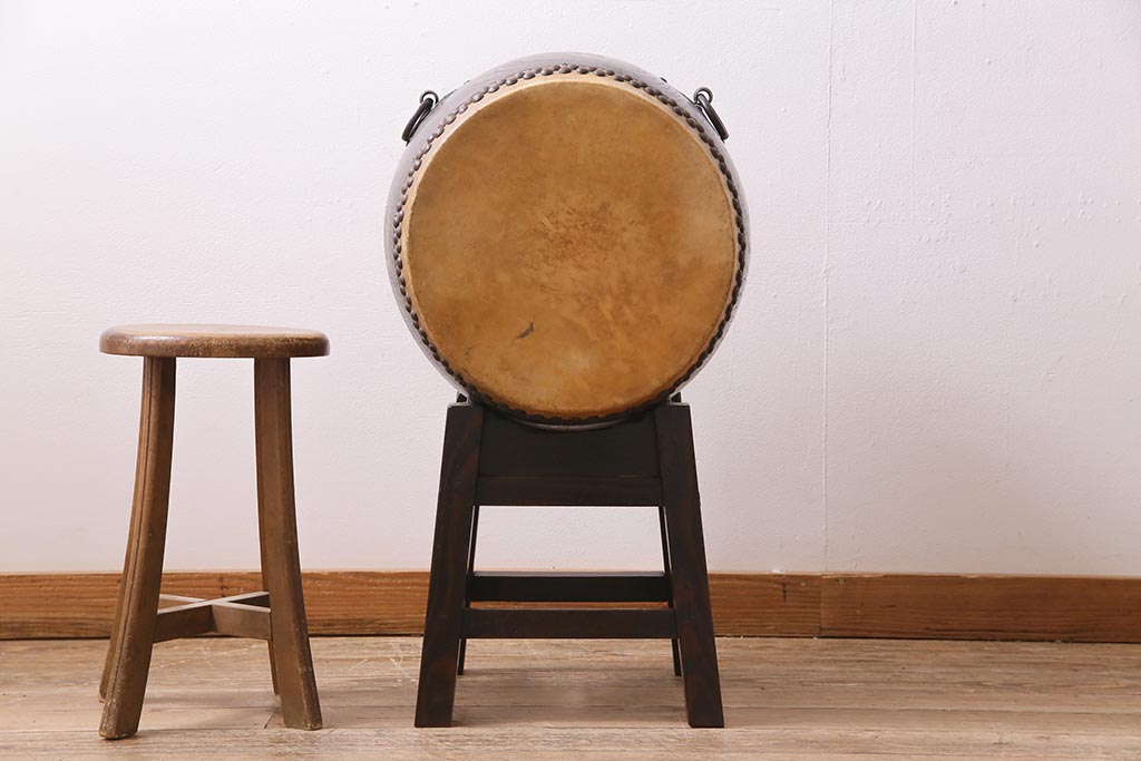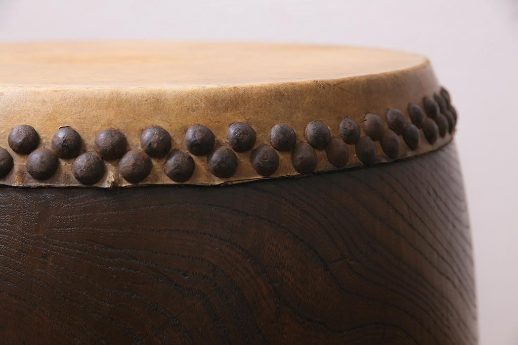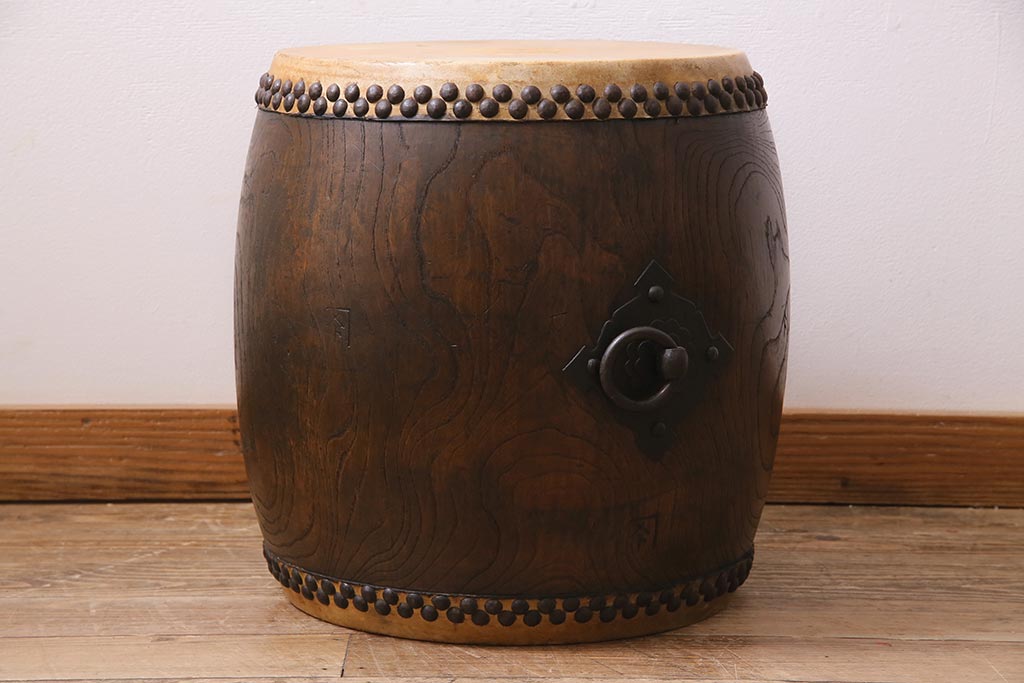 ラフジュ工房> 骨董・美術品 > 明治大正期 欅(ケヤキ)材 古い刳り貫き和太鼓 台付き(くり貫き長胴太鼓、和楽器)(R-044683)