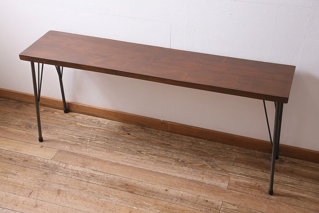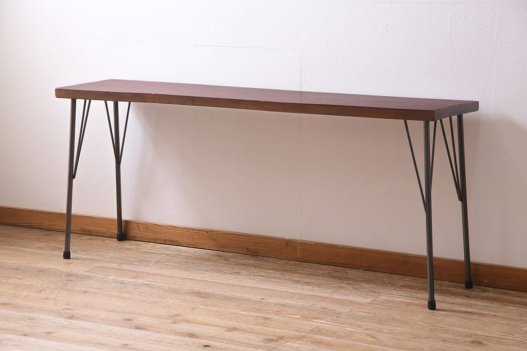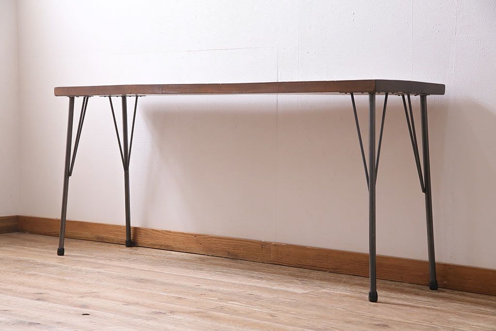 アンティーク家具 古材一枚板リメイク 朴の木材を活かしたシンプルな鉄脚テーブル(コンソールテーブル)(R-045023)です。