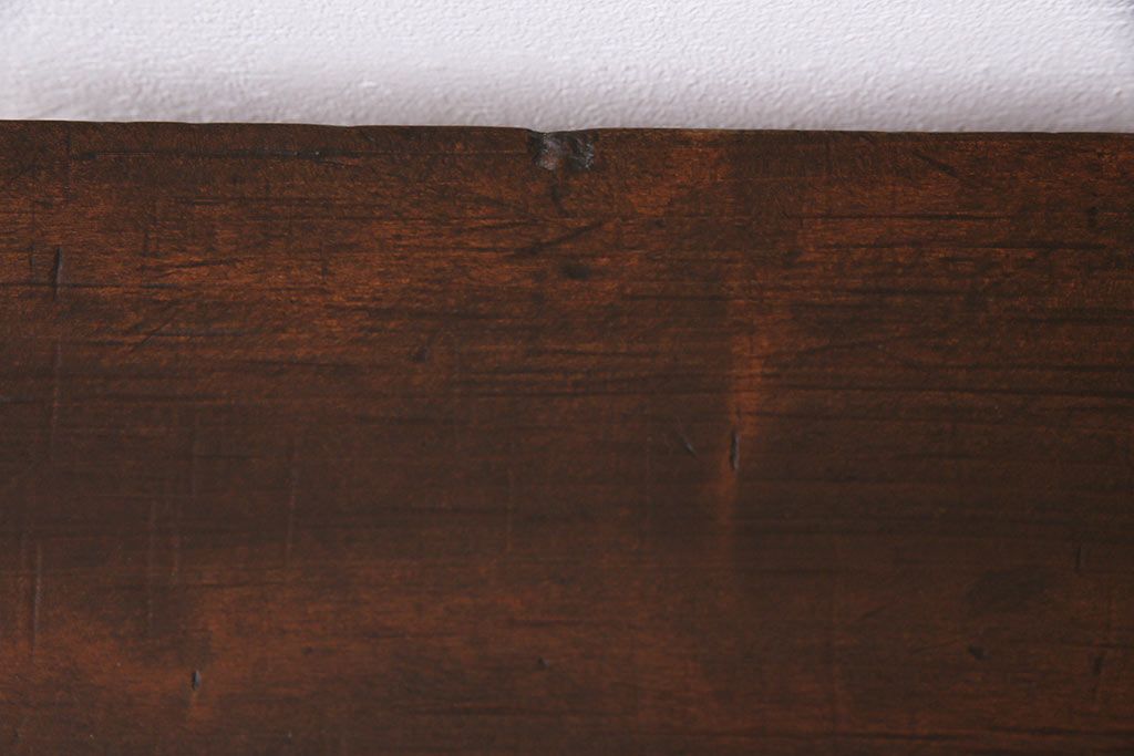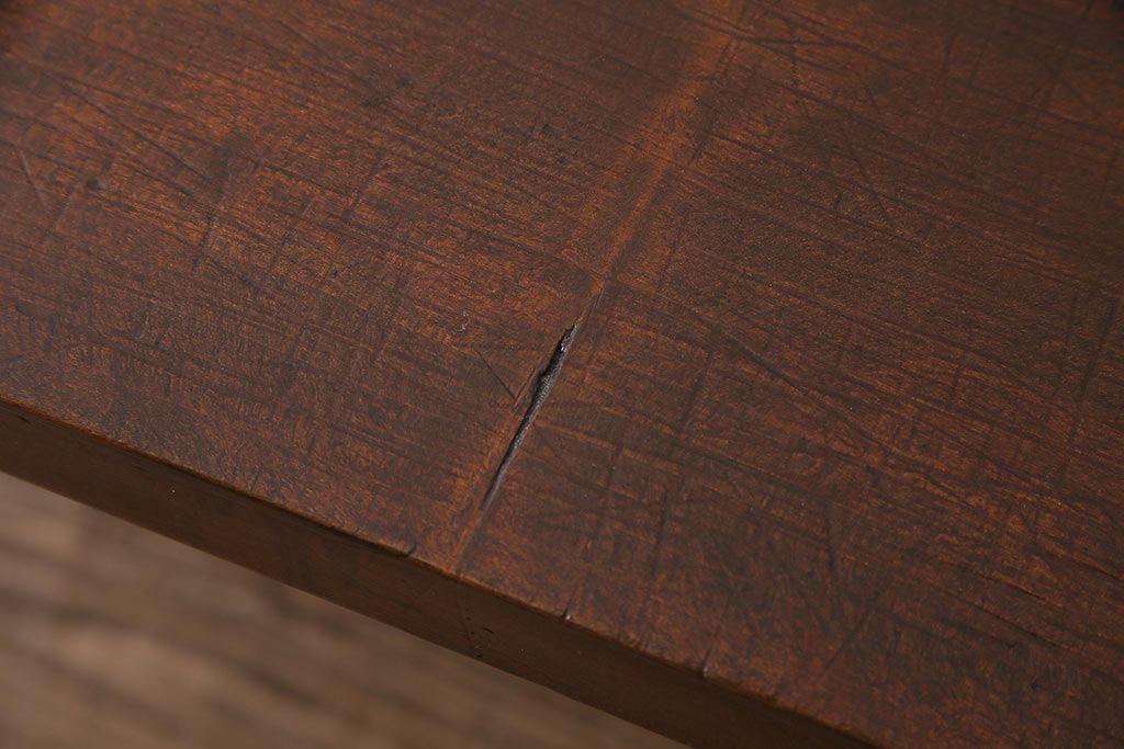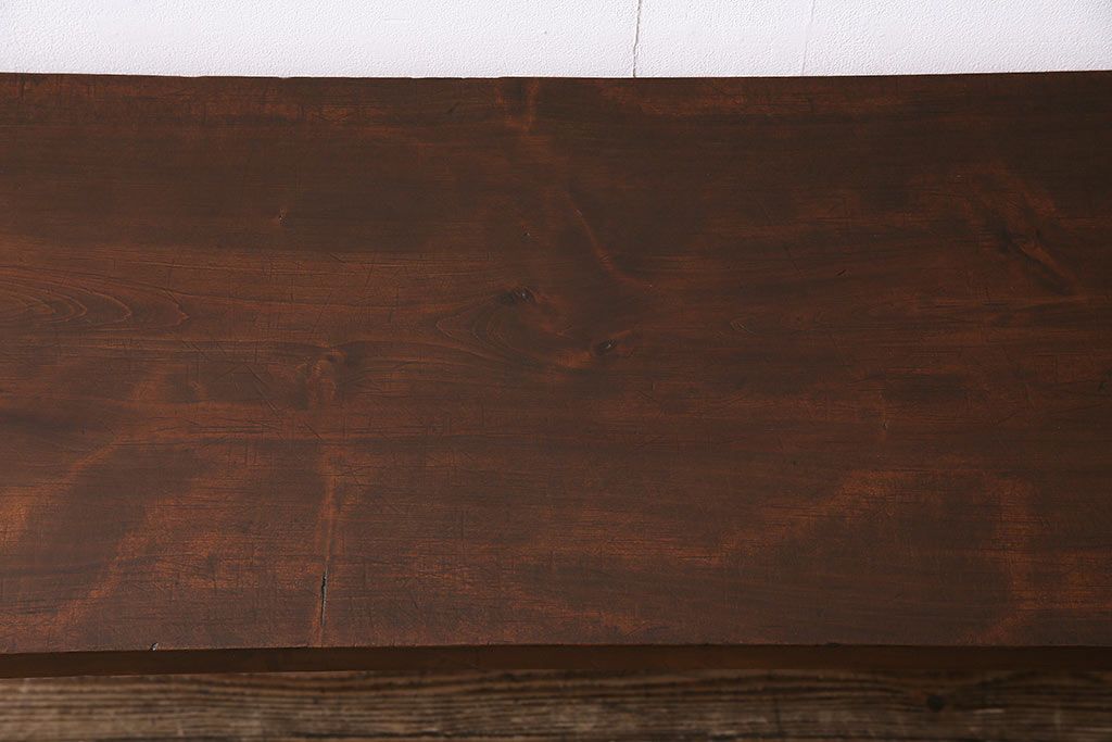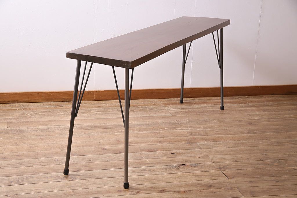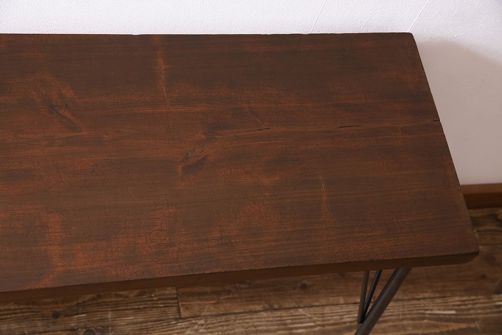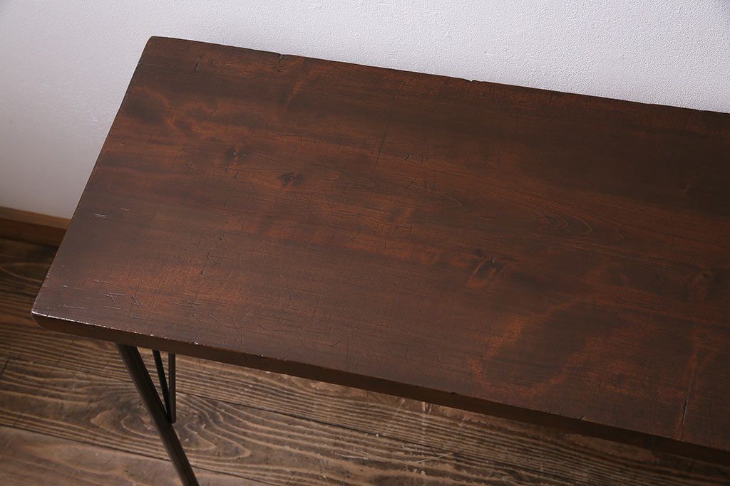 アンティーク家具 古材一枚板リメイク 朴の木材を活かしたシンプルな鉄脚テーブル(コンソールテーブル)(R-045023)