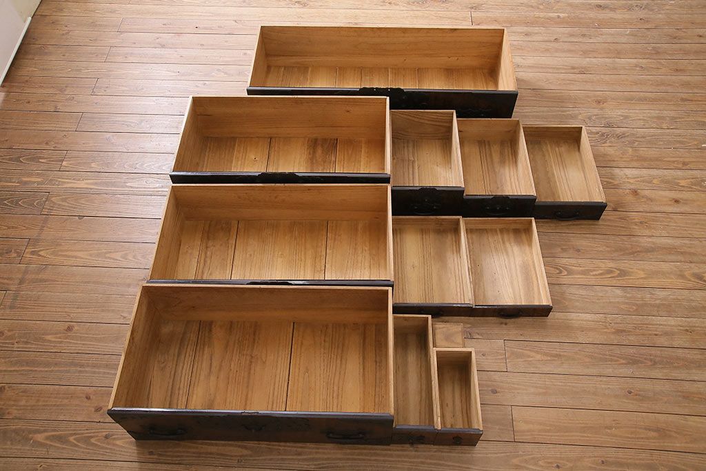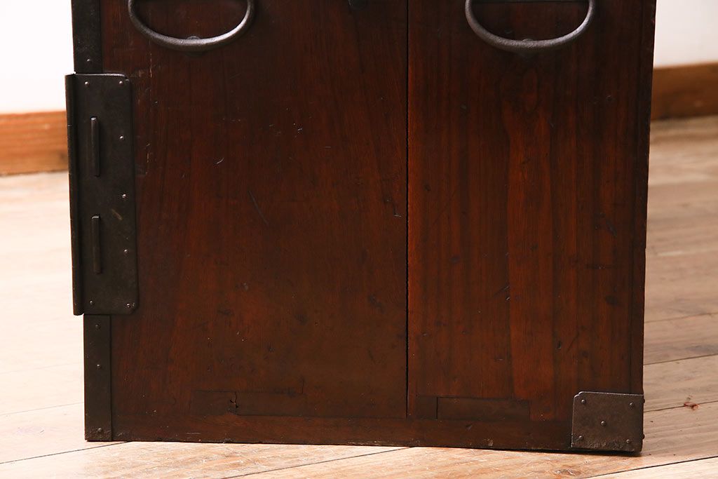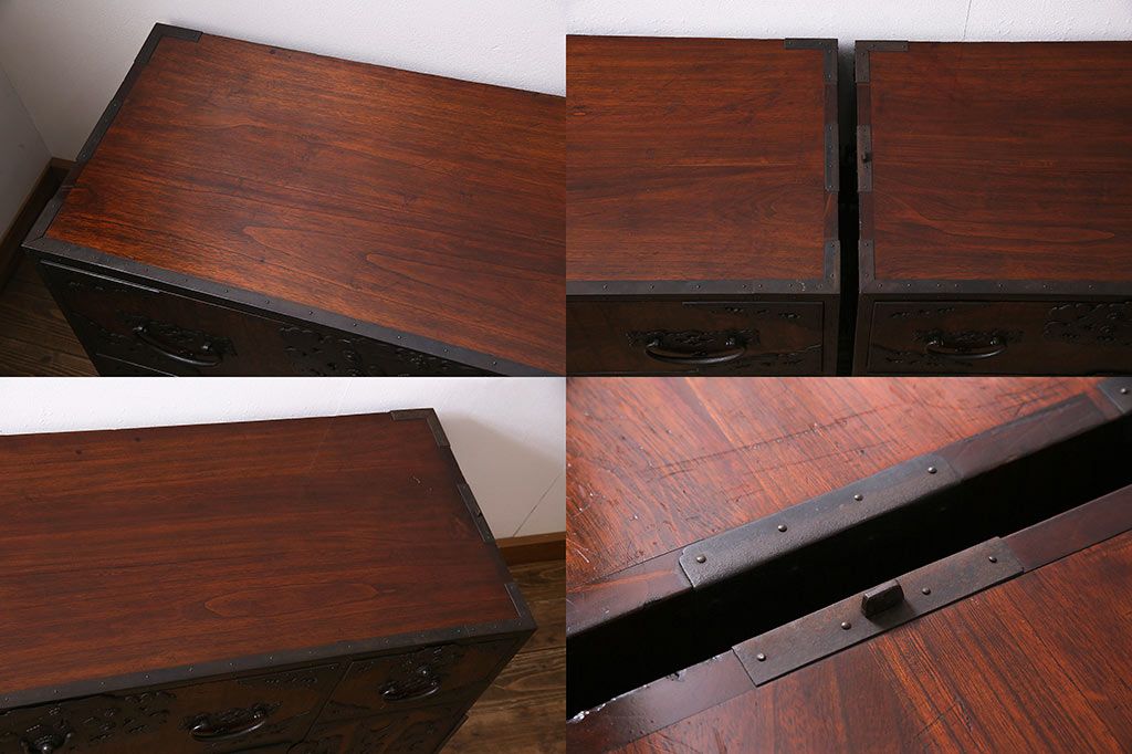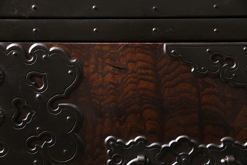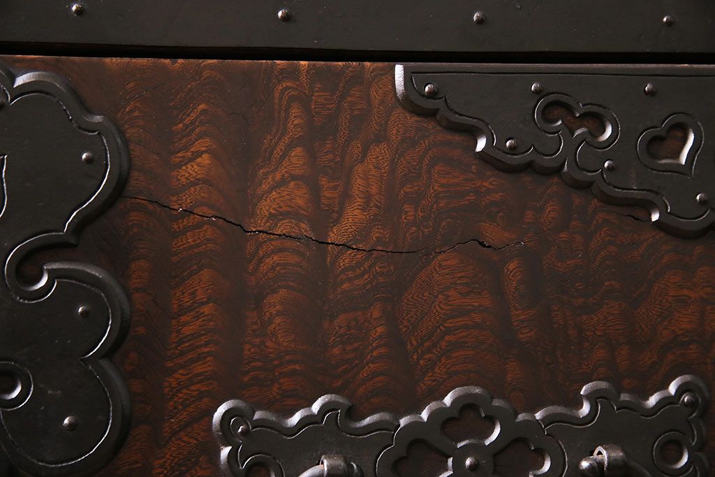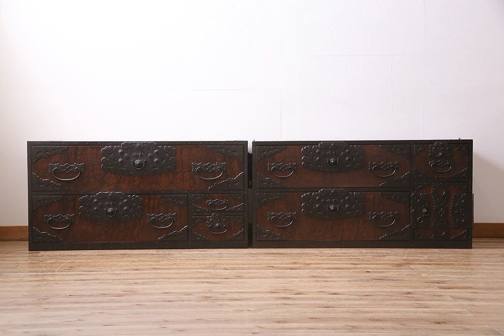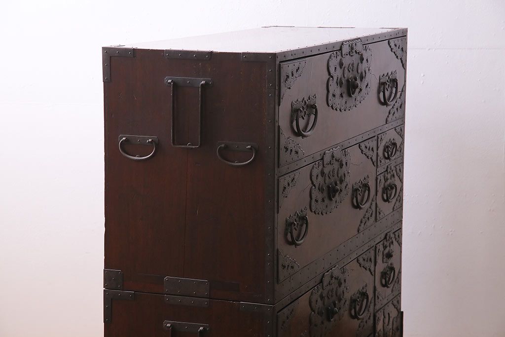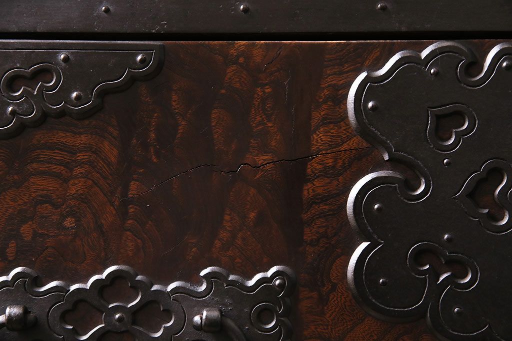 ラフジュ工房> チェスト・引き出し > アンティーク家具 前面ケヤキ材 玉杢 分厚い金具が目を引く上手物の佐渡小木箪笥(佐渡箪笥、衣装箪笥、重ね箪笥)(R-045038)
