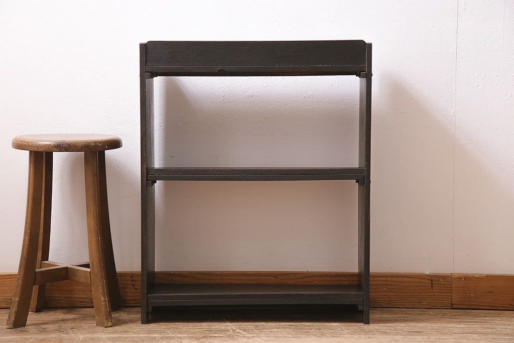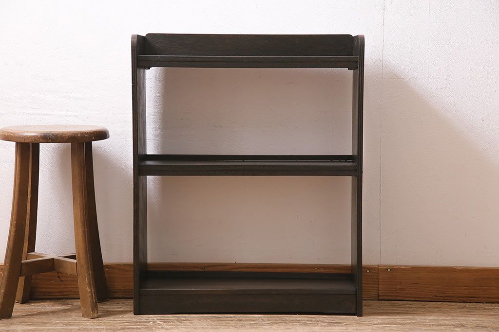 店舗什器 > 和製アンティーク 昭和中期 シックな色合いの小振りな本棚(マガジンラック、オープンラック、シェルフ、棚)(R-044851)