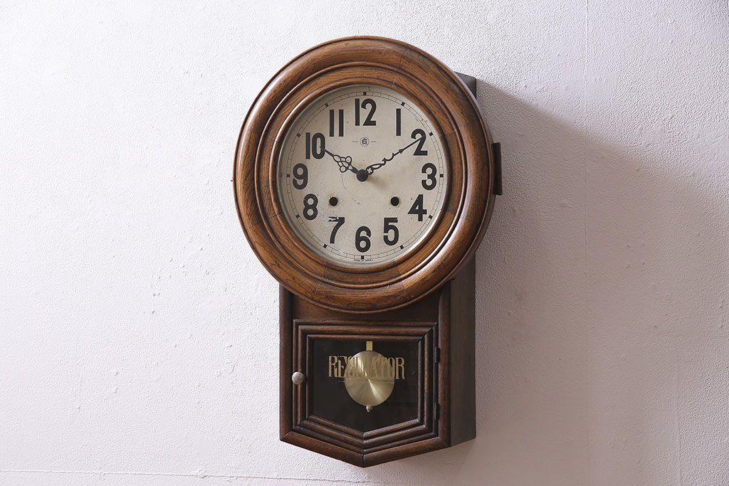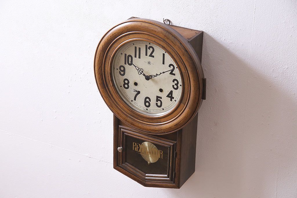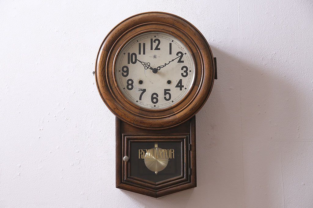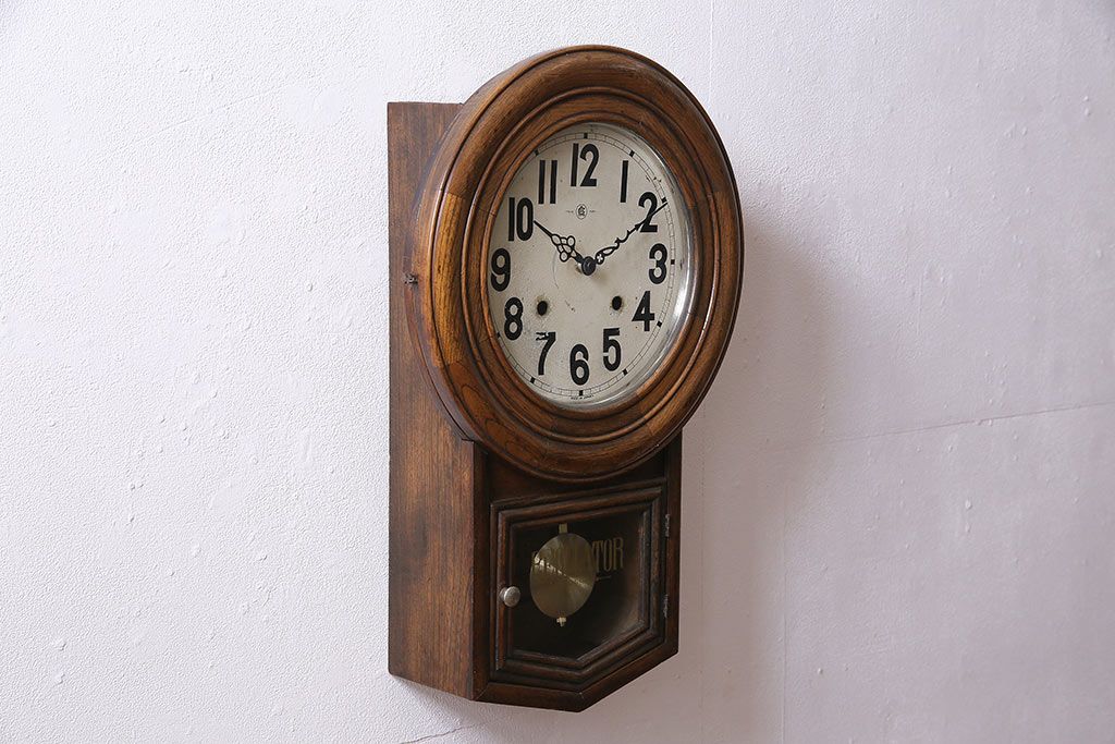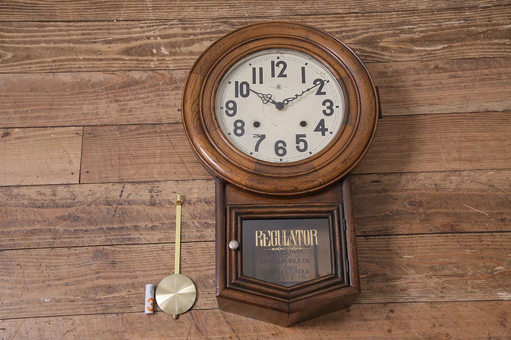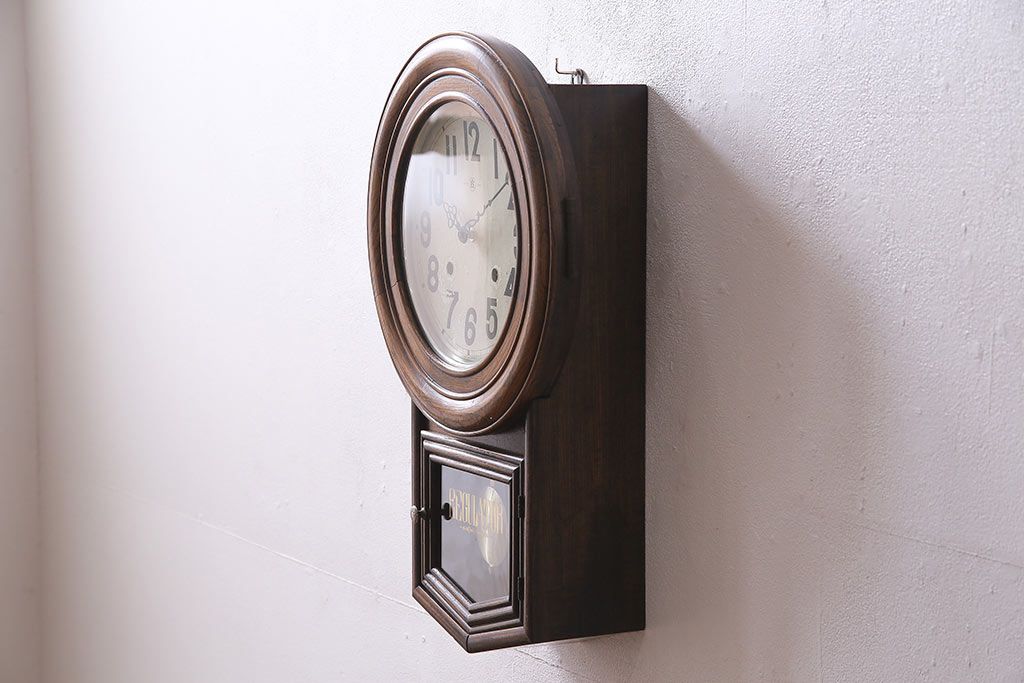 時計> 掛け時計 > アンティーク時計 大正期 愛知時計電機(アイチ、AICHI) 電池式 頭丸型 温かみのある雰囲気が魅力の柱時計(掛け時計、古時計)(R-045057)