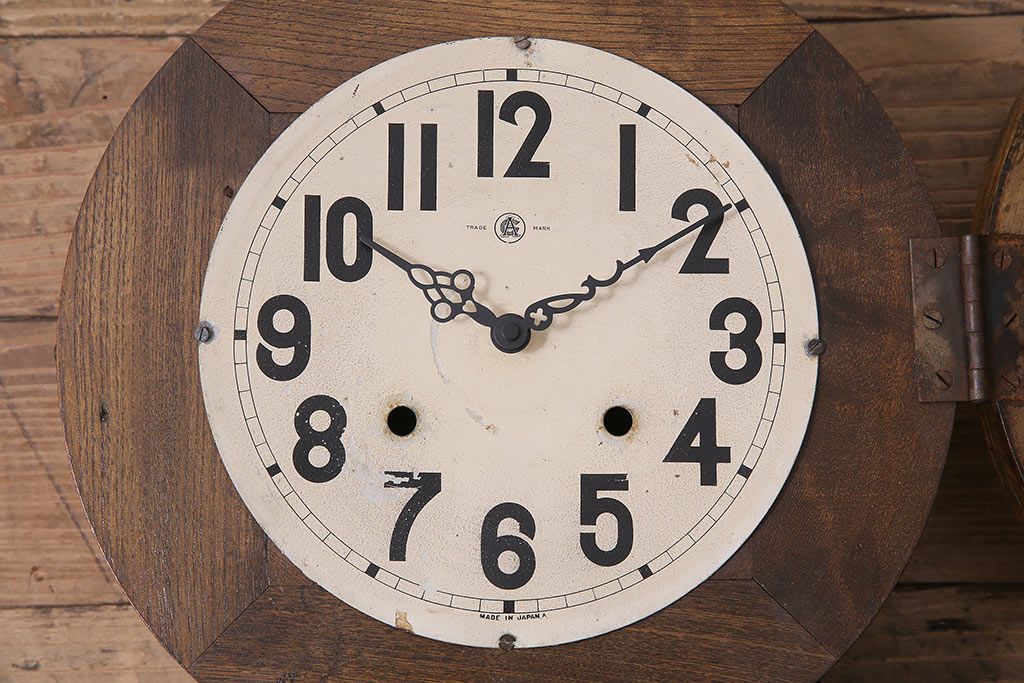 アンティーク時計 大正期 愛知時計電機(アイチ、AICHI) 電池式 頭丸型 温かみのある雰囲気が魅力の柱時計(掛け時計、古時計)(R-045057)