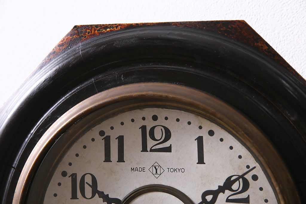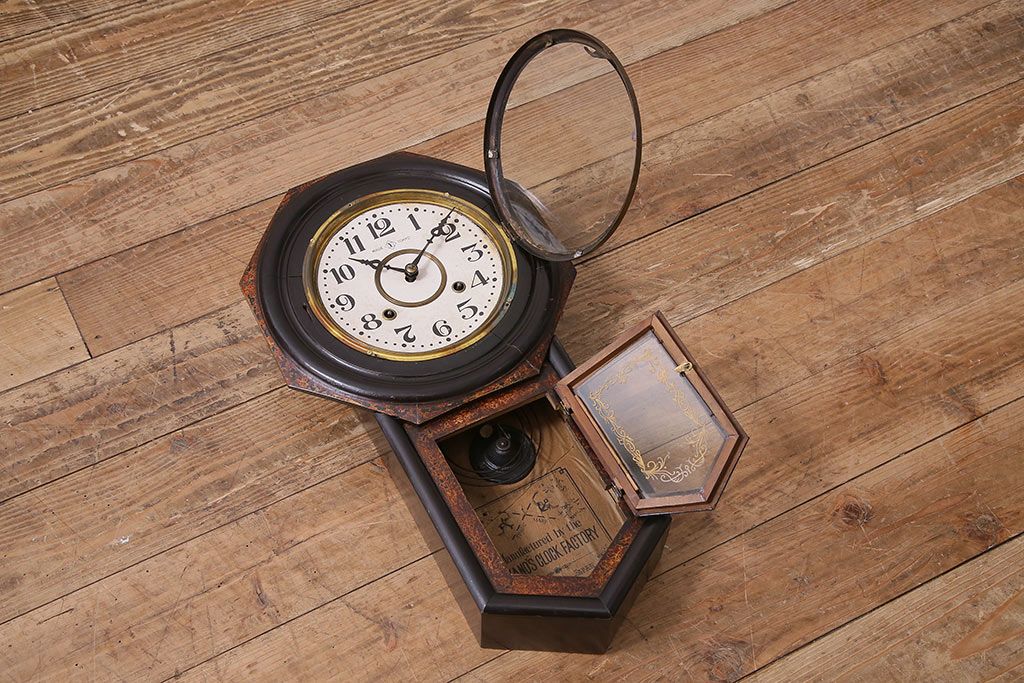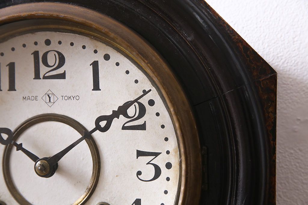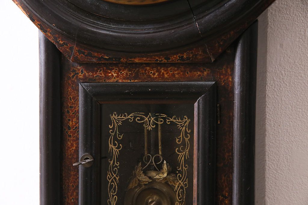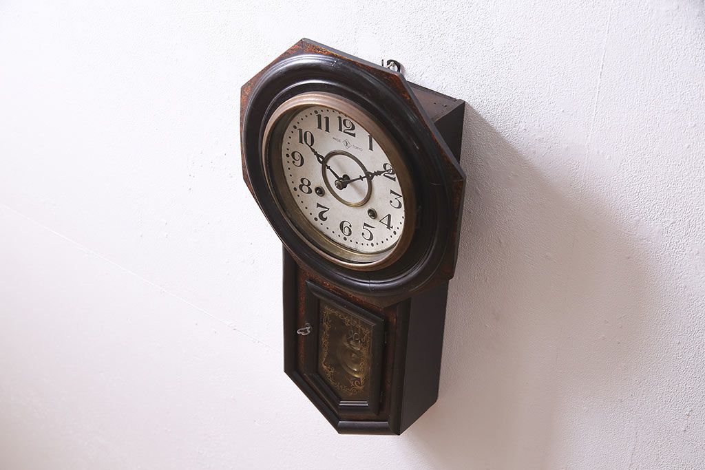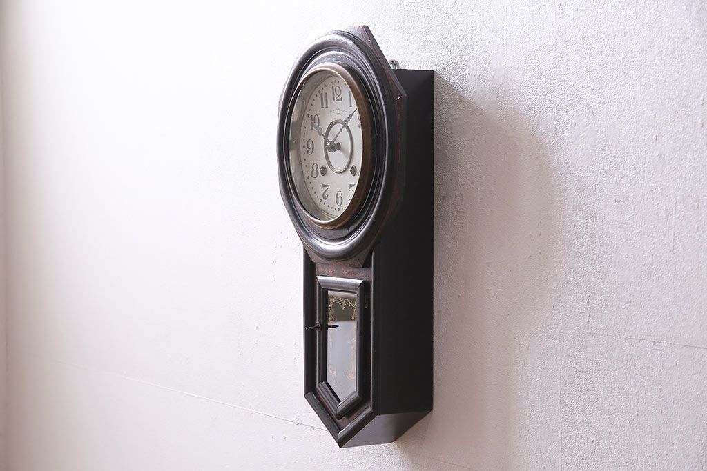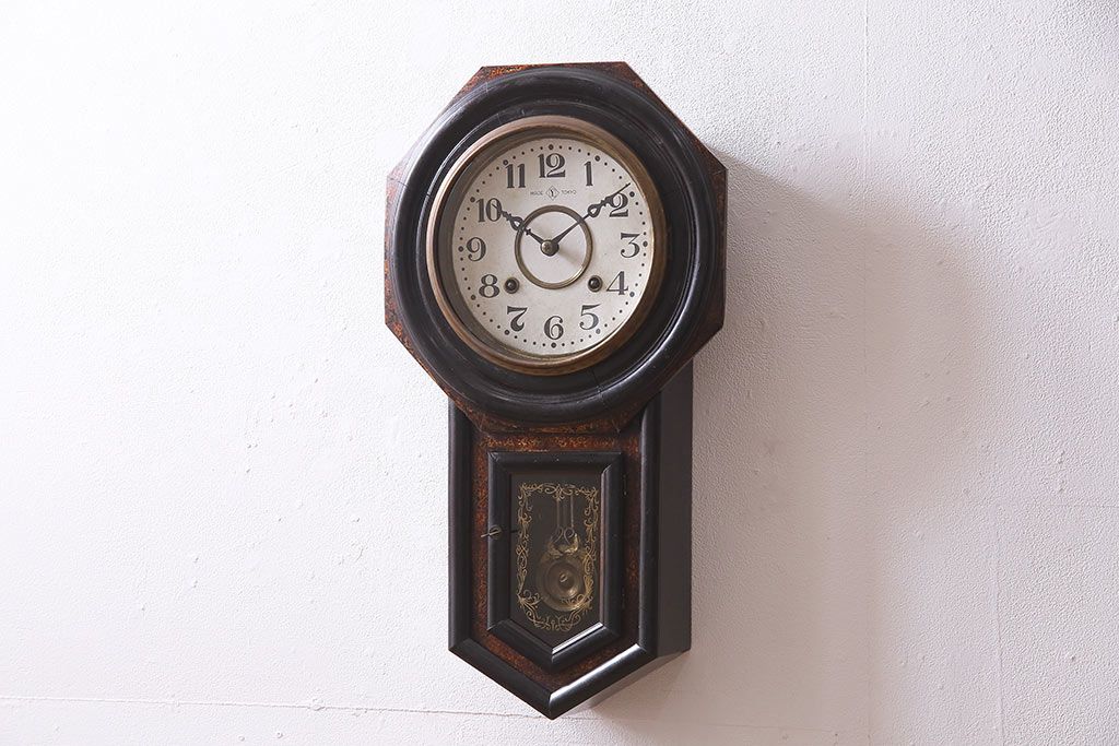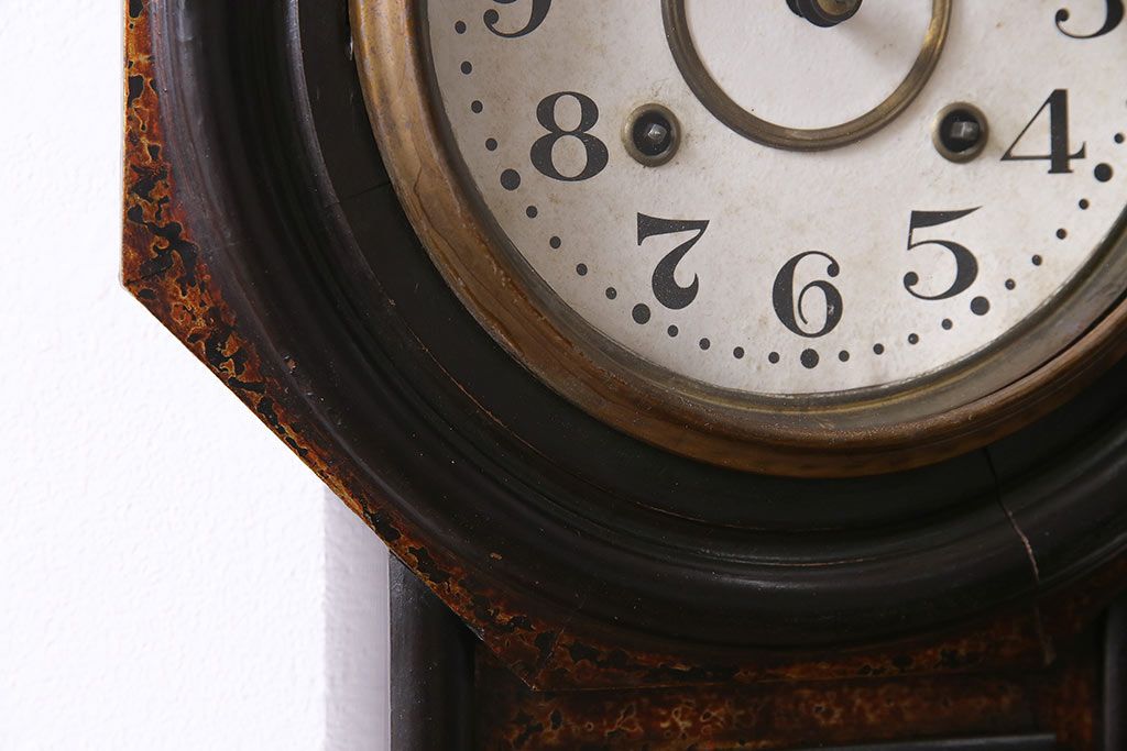 アンティーク時計 大正期 タカノ(高野精密工業) 手巻き式 落ち着いた雰囲気のシックな振り子時計(柱時計、壁掛け時計)(R-045056)