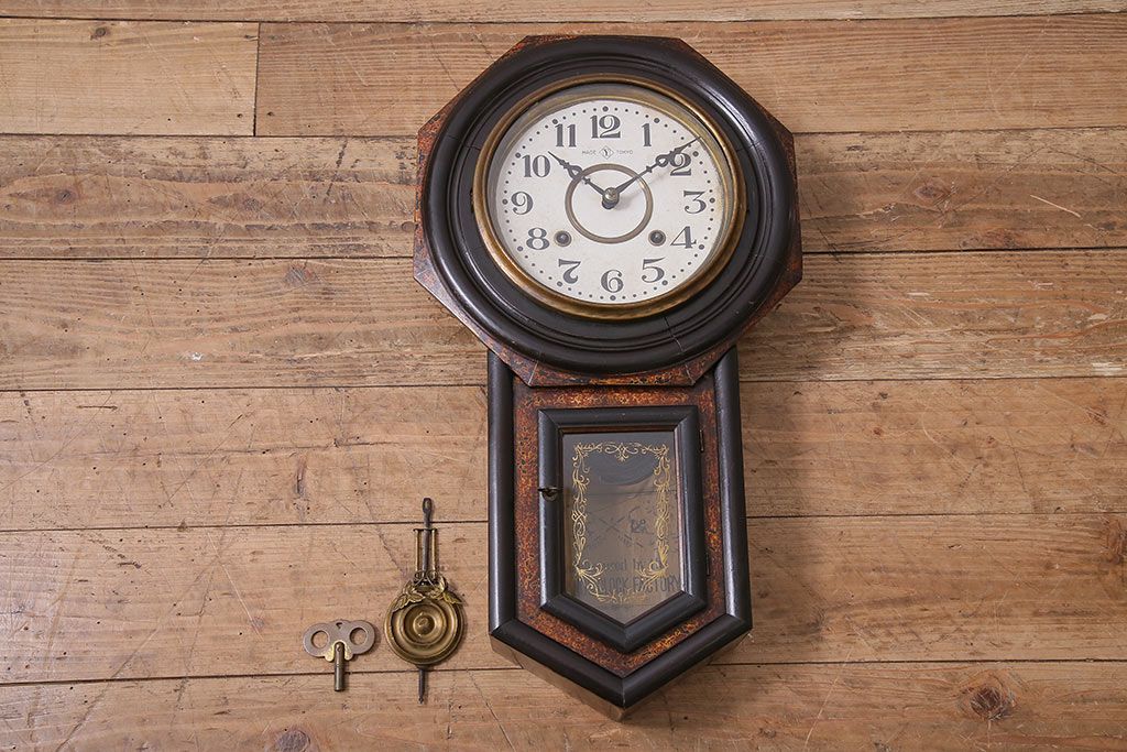 時計> 掛け時計 > アンティーク時計 大正期 タカノ(高野精密工業) 手巻き式 落ち着いた雰囲気のシックな振り子時計(柱時計、壁掛け時計)(R-045056)