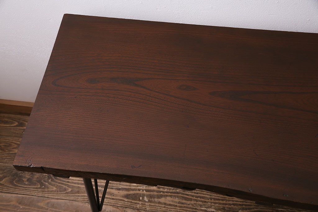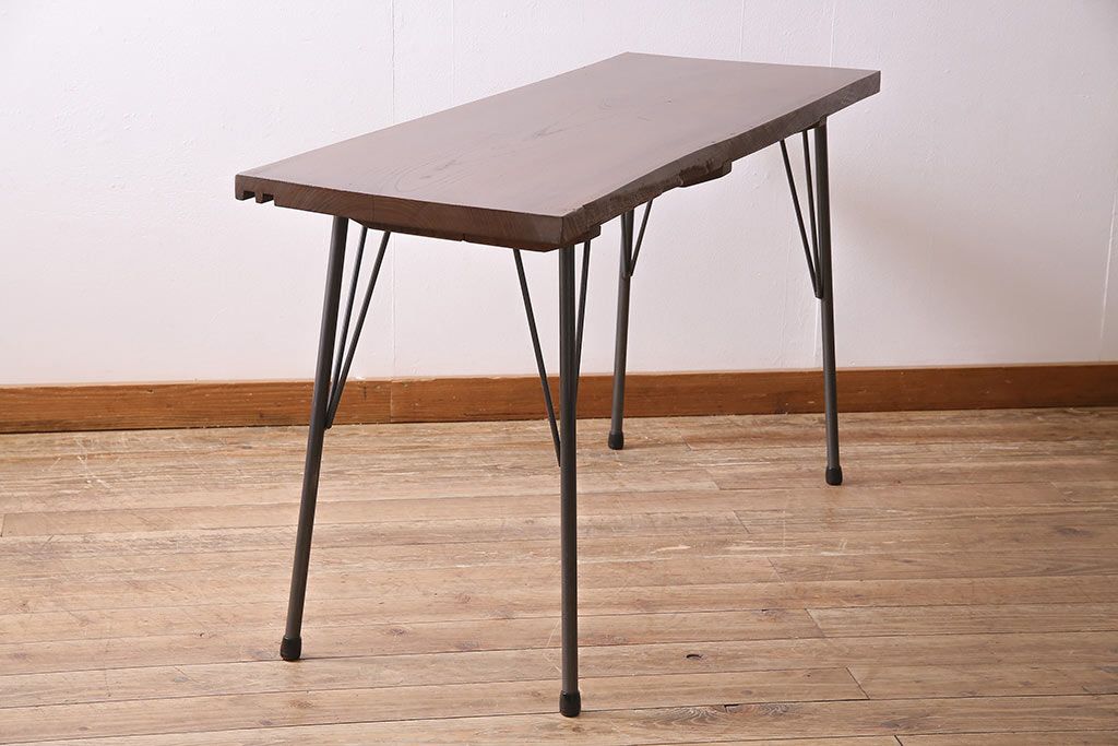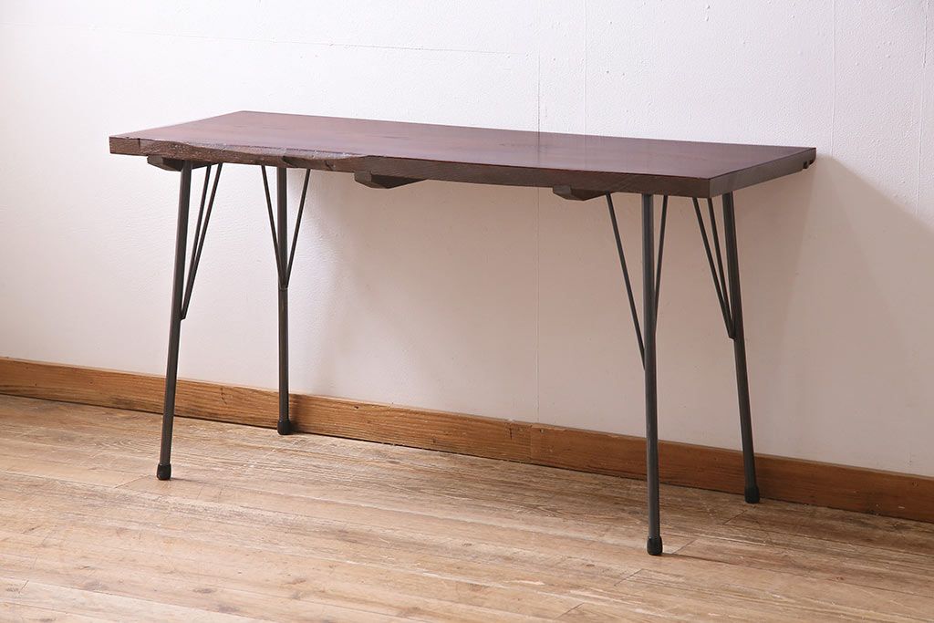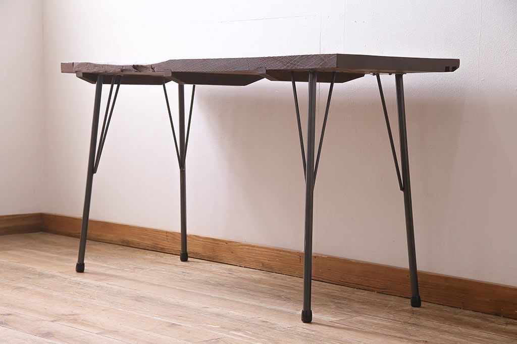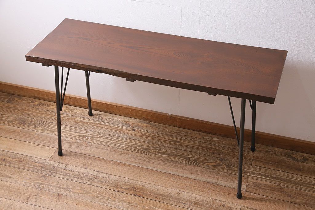 テーブル> コンソールテーブル > アンティーク家具 古材リメイク ケヤキ材一枚板を使用した鉄脚テーブル(コンソールテーブル、作業台)(R-045047)