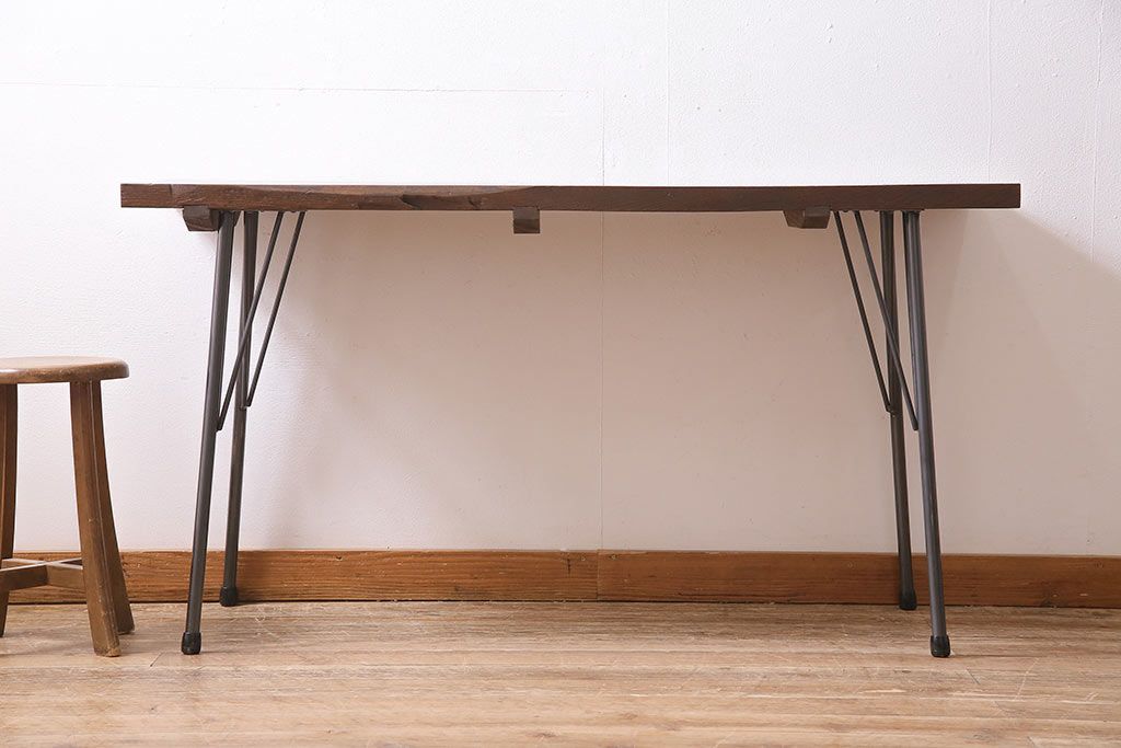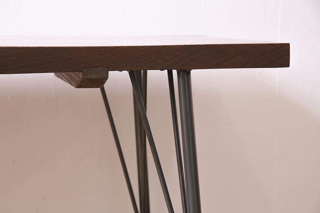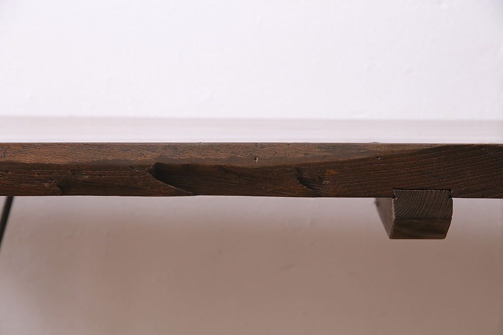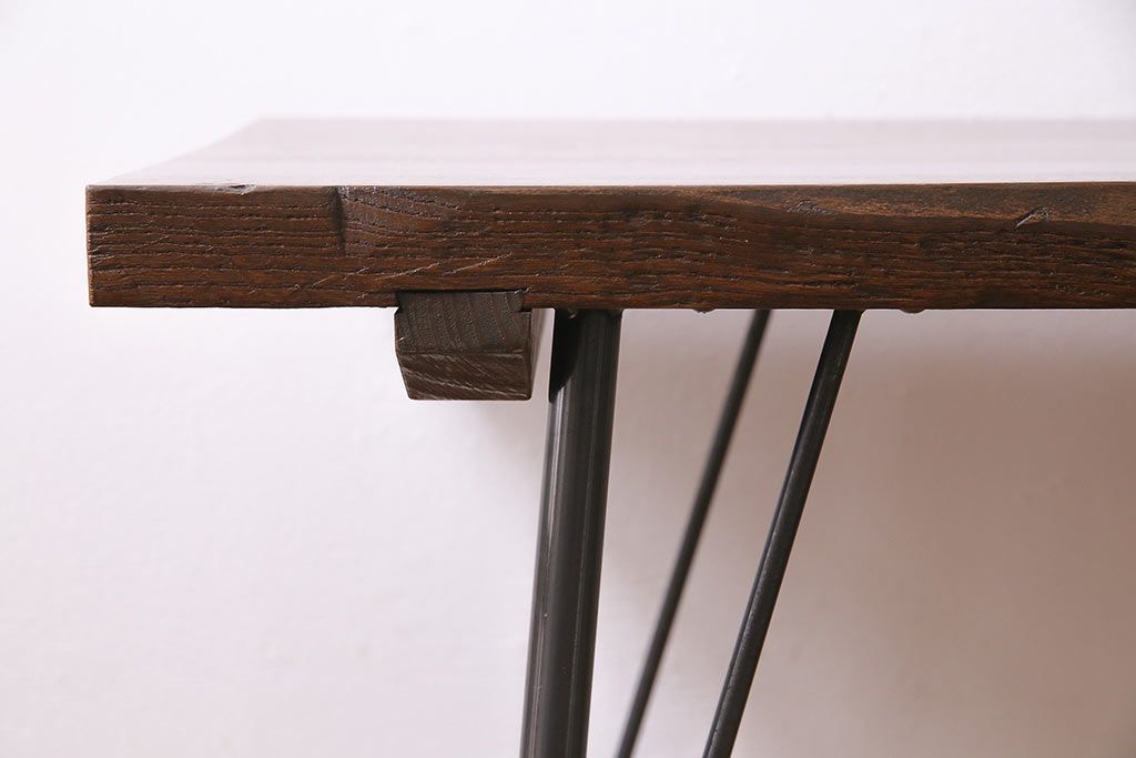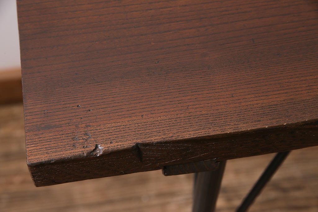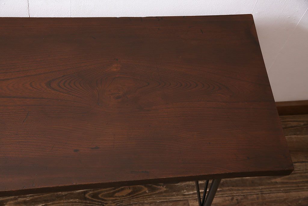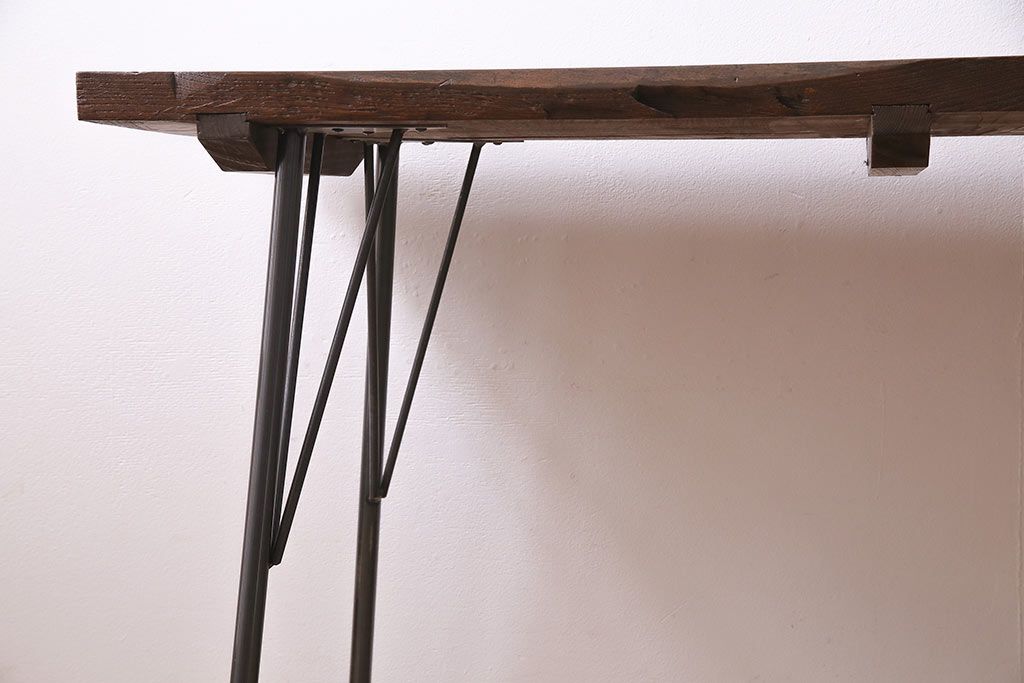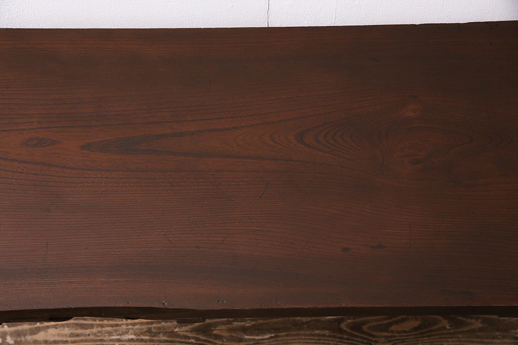 テーブル> 作業台 > アンティーク家具 古材リメイク ケヤキ材一枚板を使用した鉄脚テーブル(コンソールテーブル、作業台)(R-045047)