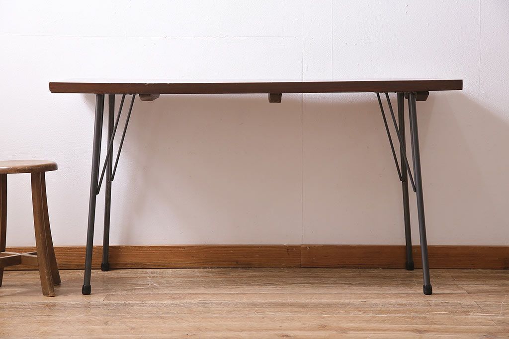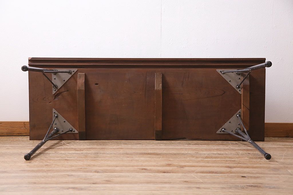 テーブル> 鉄脚テーブル > アンティーク家具 古材リメイク ケヤキ材一枚板を使用した鉄脚テーブル(コンソールテーブル、作業台)(R-045047)