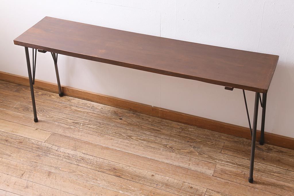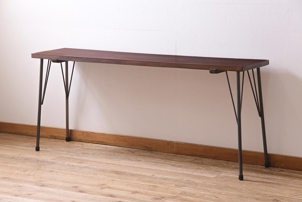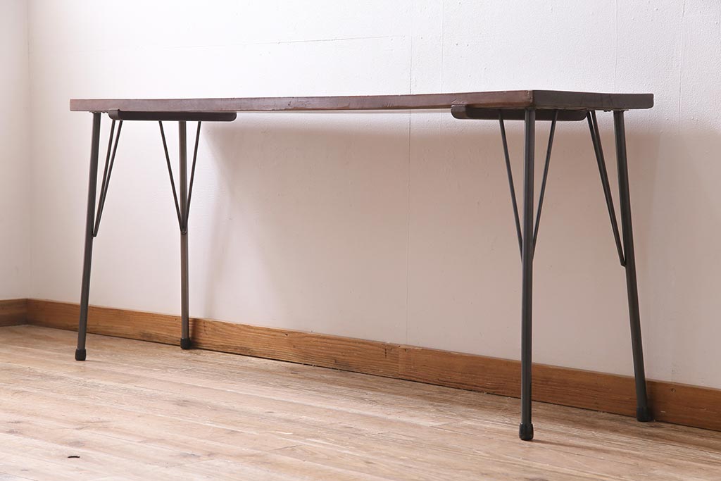 テーブル> コンソールテーブル > アンティーク家具 和製 大正昭和初期 桂一枚板 古材を活かしたシンプルな鉄脚テーブル(作業台、アイアンテーブル、コンソールテーブル)(R-044668)