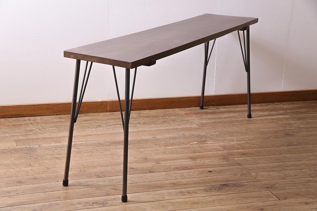 テーブル> カウンターテーブル > アンティーク家具 和製 大正昭和初期 桂一枚板 古材を活かしたシンプルな鉄脚テーブル(作業台、アイアンテーブル、コンソールテーブル)(R-044668)
